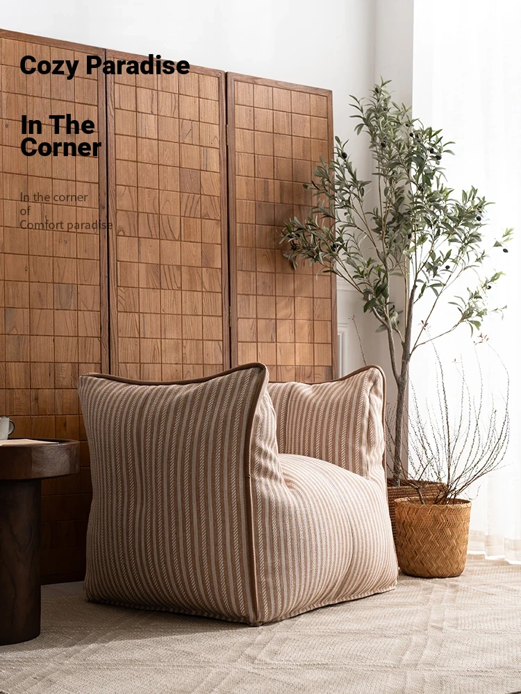Tatami Lazy Sofa - Versatile Single Sofa for Bedroom and Living Room, Comfortable Fabric Lounge Chair, Perfect for Relaxing, Napping or Lounging with Bean Bag Design.