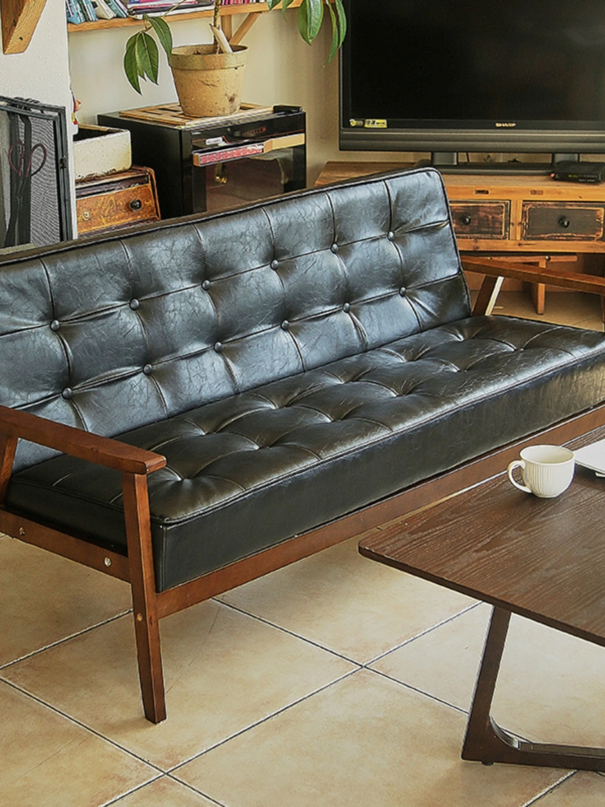 Nordic Retro Trendy Sofa - Minimalist Solid Wood Design for One, Two, or Three People - Perfect for Small Living Rooms - Stylish Leather Upholstered Sofa