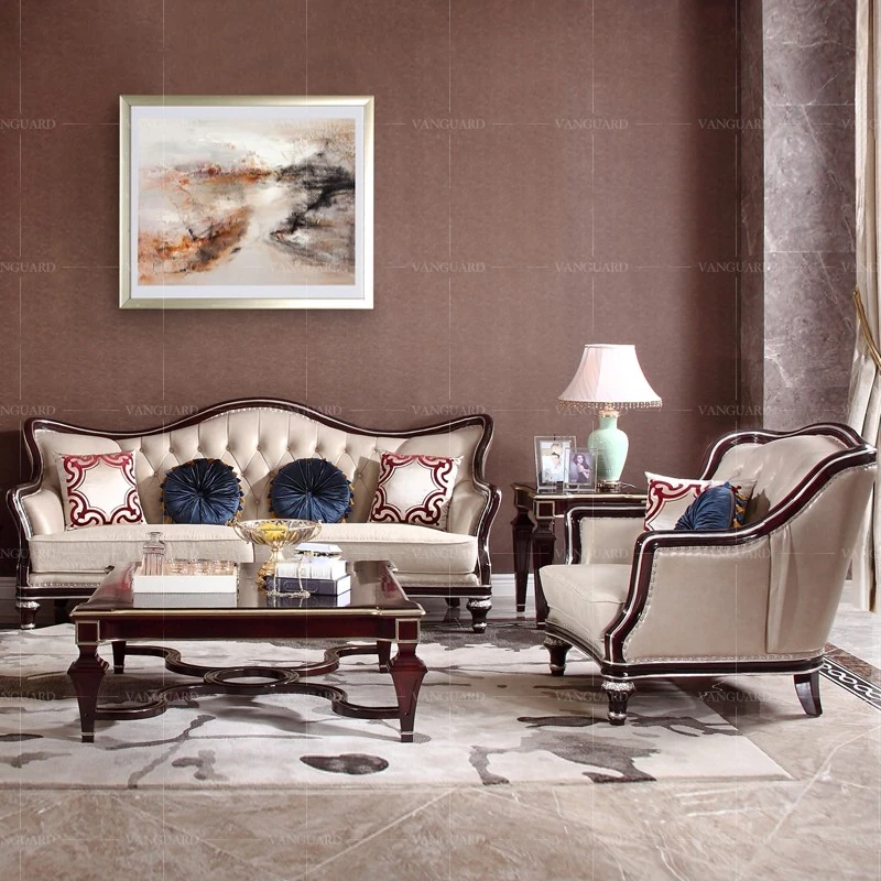 高級感溢れるヨーロピアンデザインのファブリックソファ123組み合わせ!U型の洗練されたシンプルフレンチスタイルで、全てが本物の無垢材!別荘のような贅沢なリビング空間を演出します。
