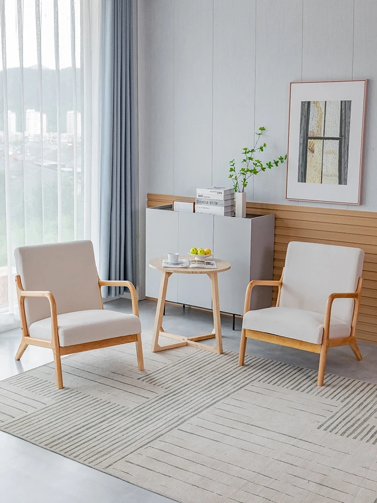 Minimalist Solid Wood Lounge Chair - Single Sofa for Living Room and Balcony, Japanese Rustic Style, 2025 New Model, Perfect for Reading and Relaxation