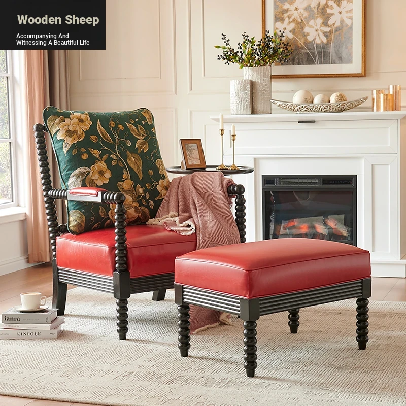 American Retro Leisure Chair - Elegant French-Inspired Single Sofa for Living Room, Solid Wood Construction, Perfect for Balcony - Stylish Pearl Chair with Comfortable Backrest