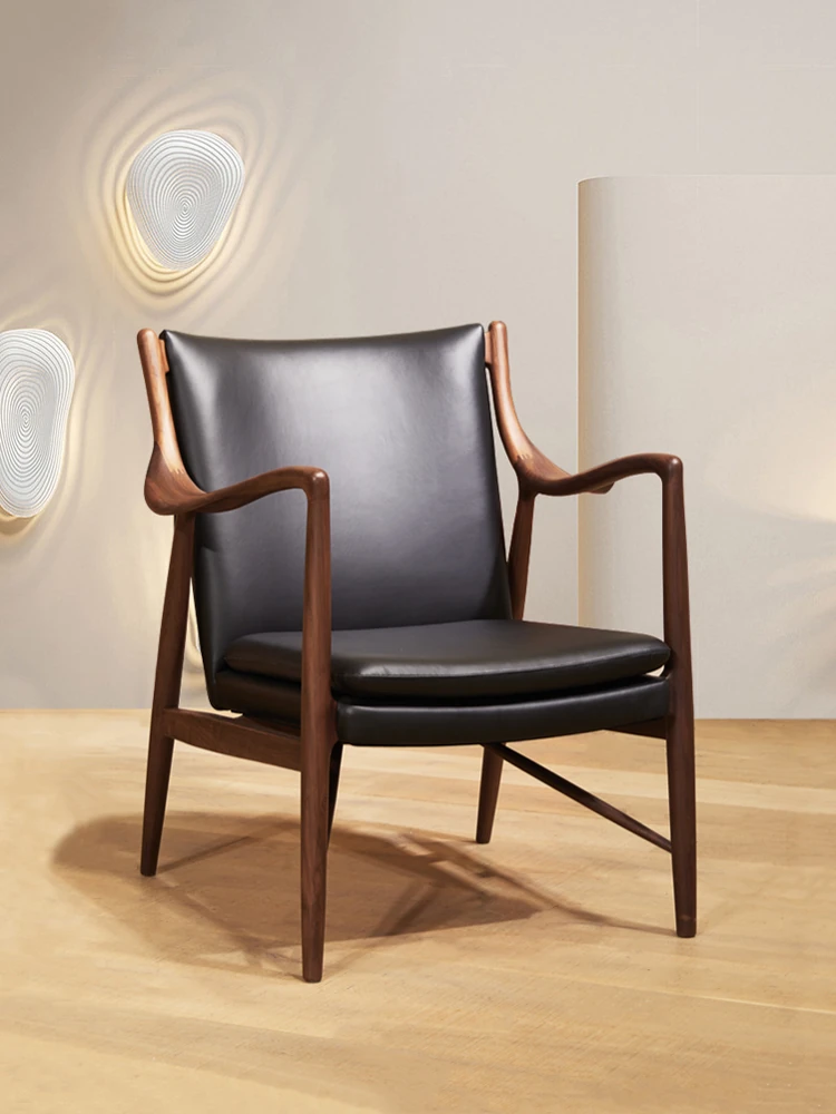 Italian Minimalist Sofa Chair - North American Black Walnut Wood Lounge Chair - Single Seat Armchair with Solid Wood and Genuine Leather Armrests for a Stylish Living Room