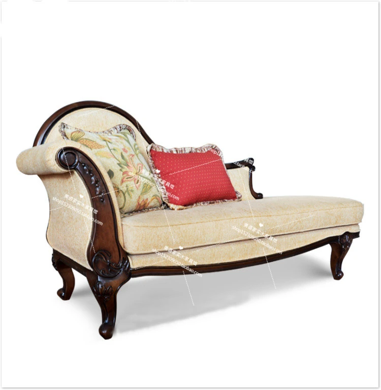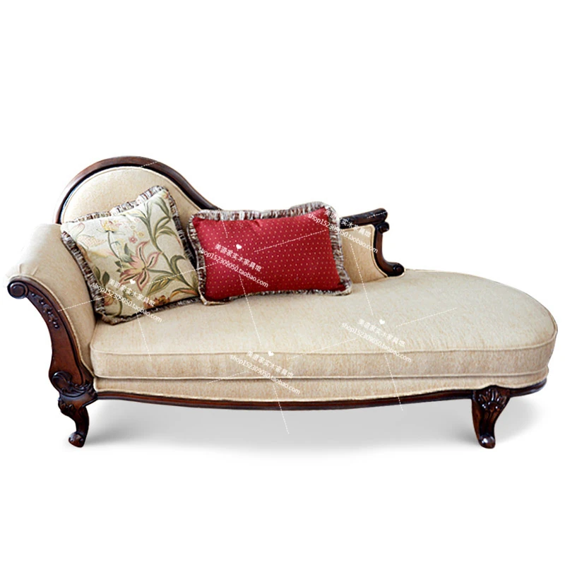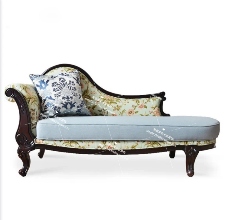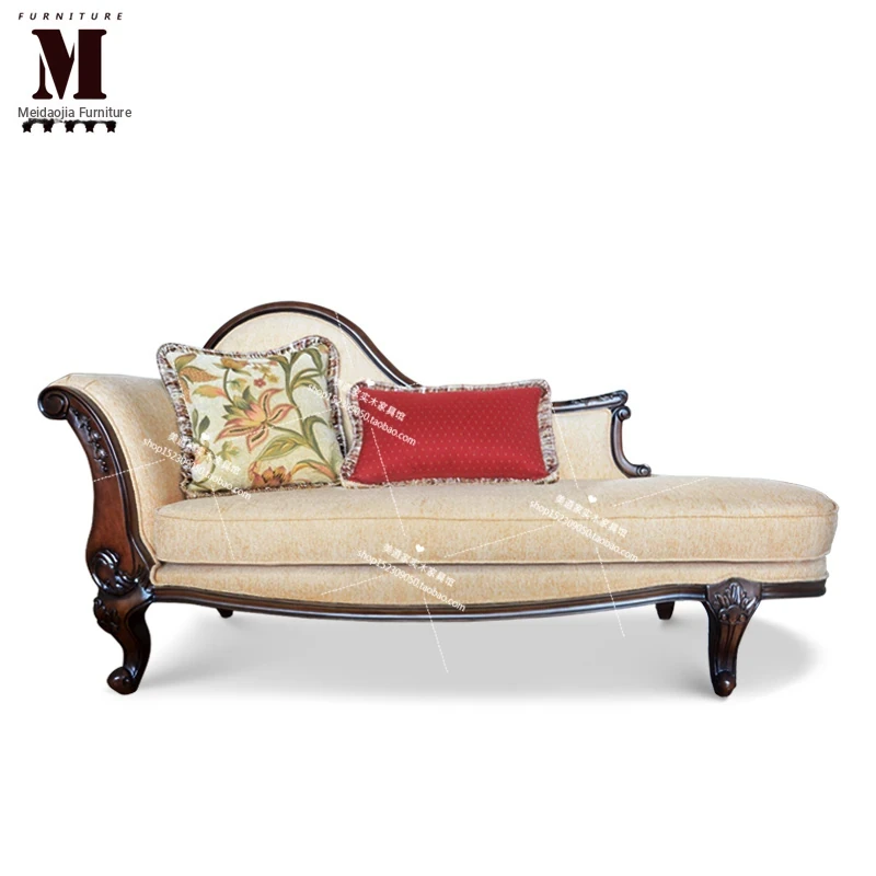 American Country Style Chaise Lounge - Elegant Bedroom Beauty Bed, European Living Room Sofa & Recliner Set, New Classical Solid Wood & Fabric Design, Perfect for Cozy Interiors