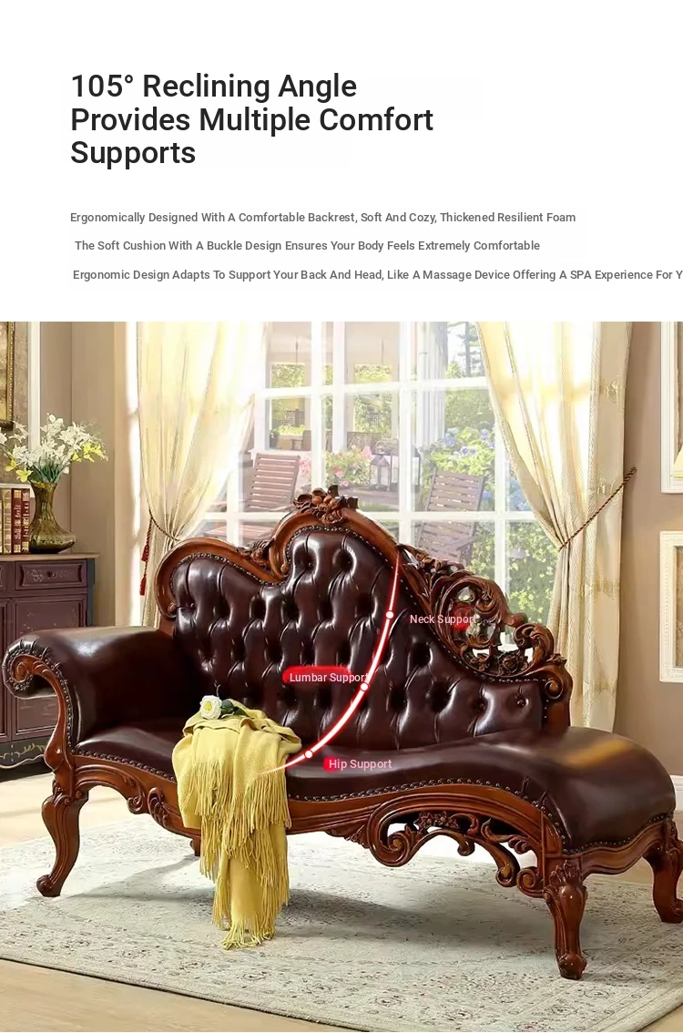 American Genuine Leather Chaise Lounge - Elegant Daybed for Living Room, Relaxing Recliner Chair, Made of Top-Grain Cowhide, Perfect for Single Seating and Leisure Moments.