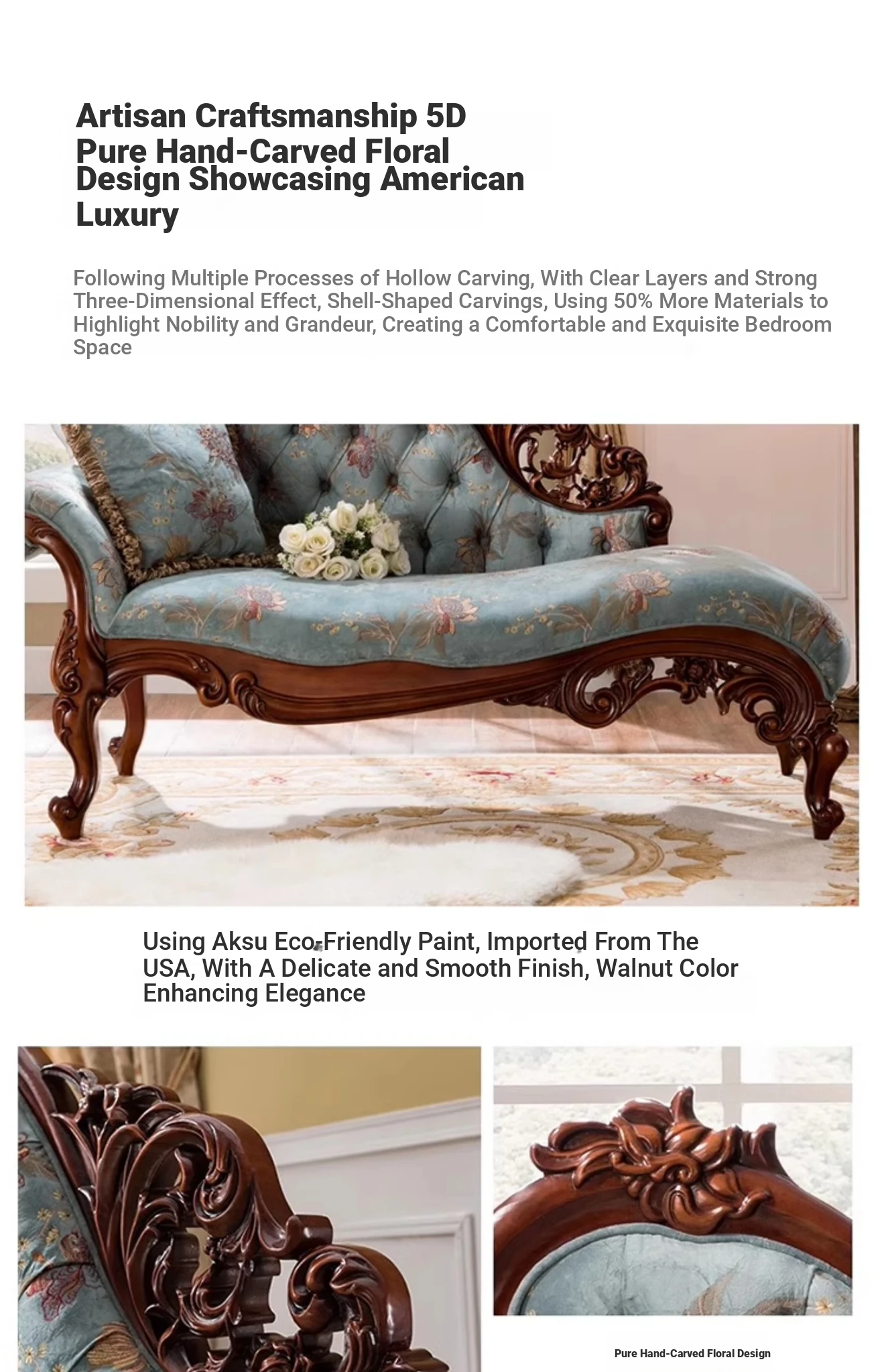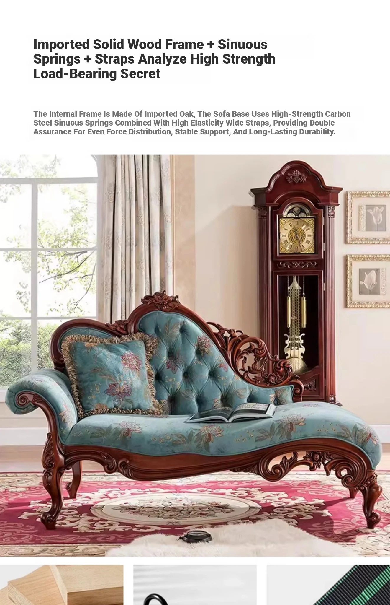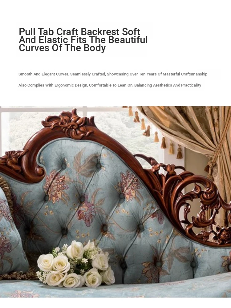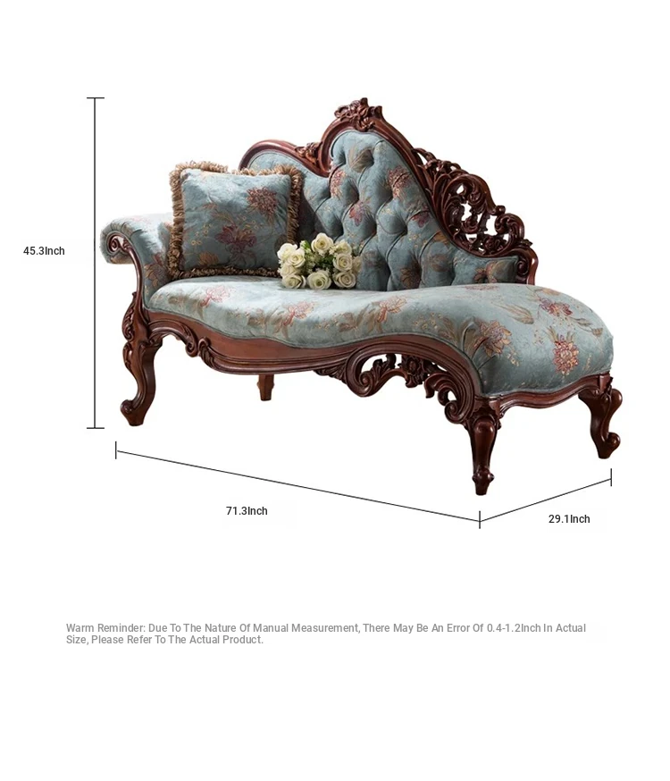 American Style Solid Wood Chaise Lounge - Elegant Fabric Upholstered Daybed for Bedroom, Cozy Sofa Chair for Living Room, Single Seat for Balcony, Perfect for Relaxing and Napping.