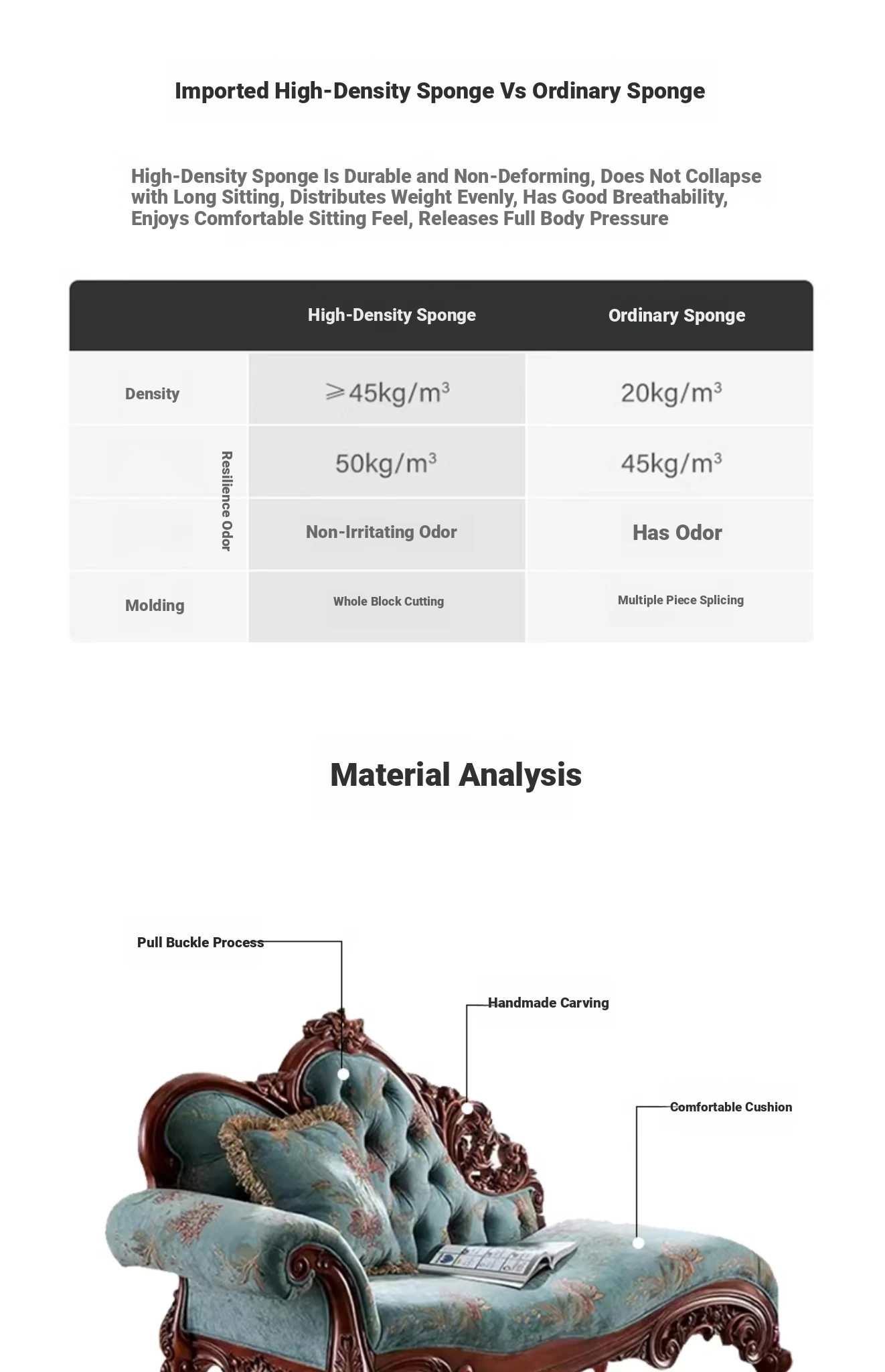 [Chenille fabric + 55D high density rebound sponge + solid wood frame] left armrest