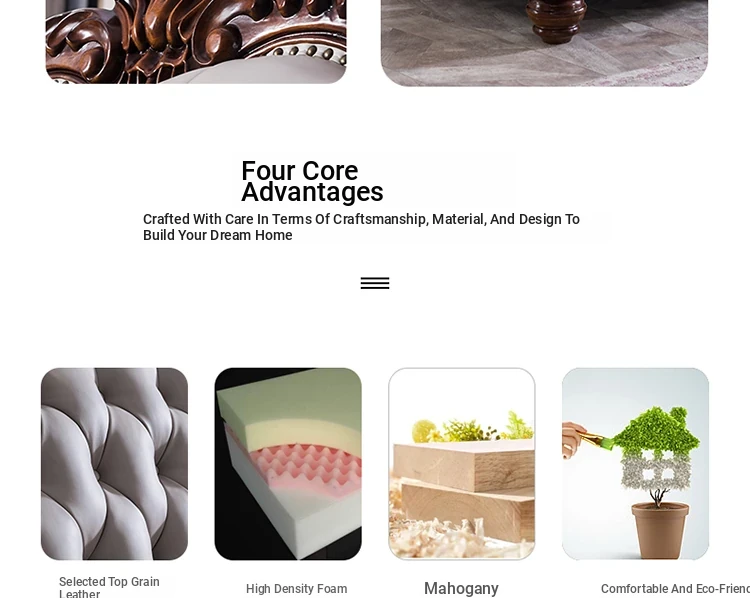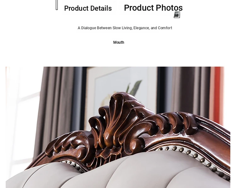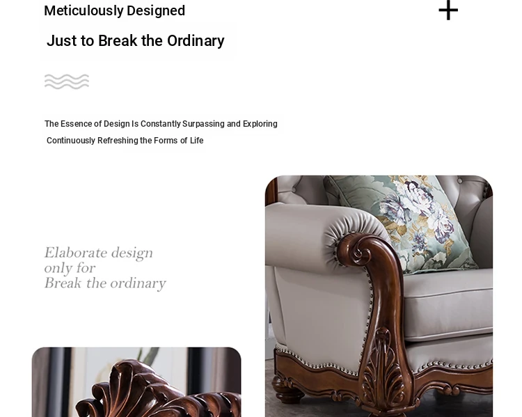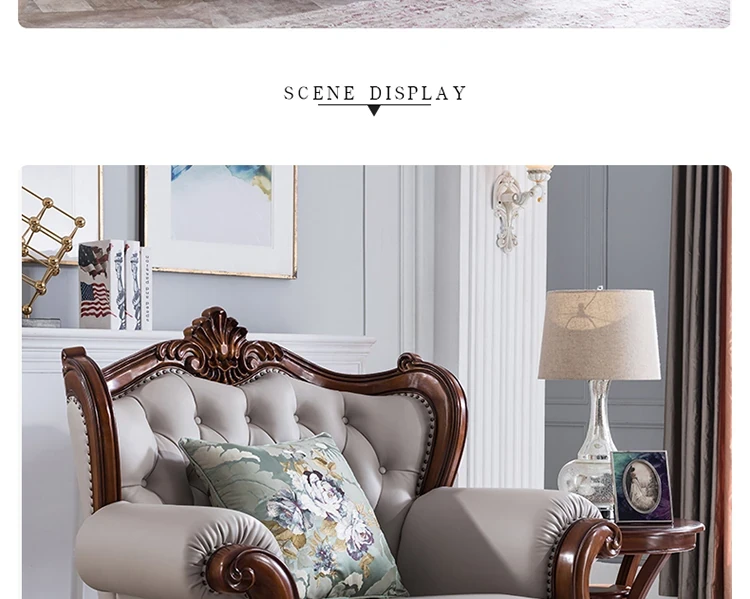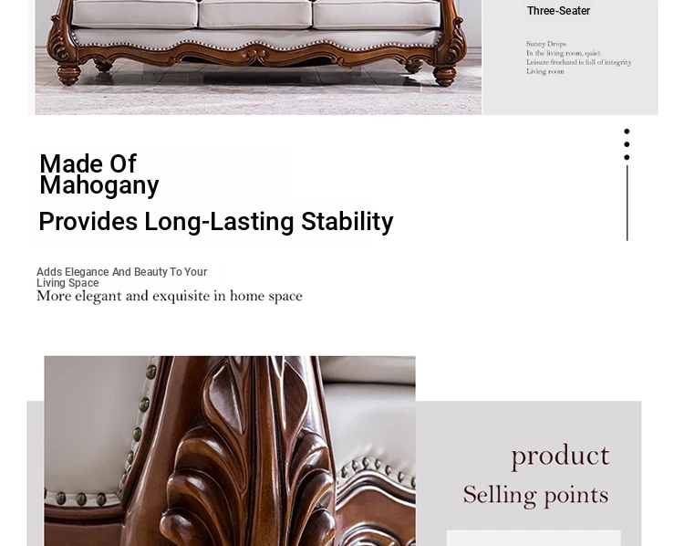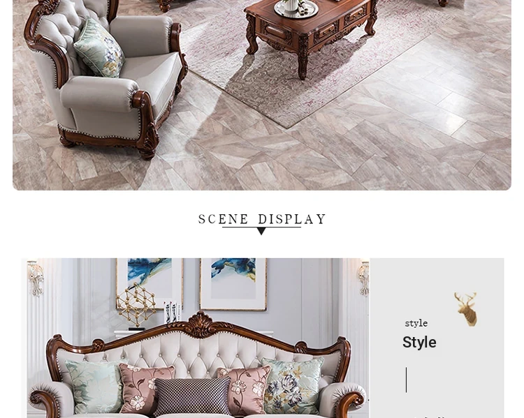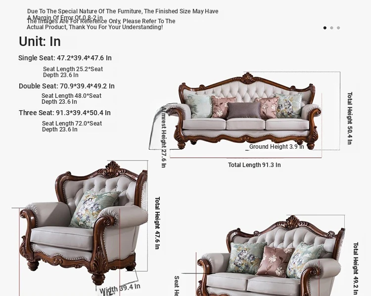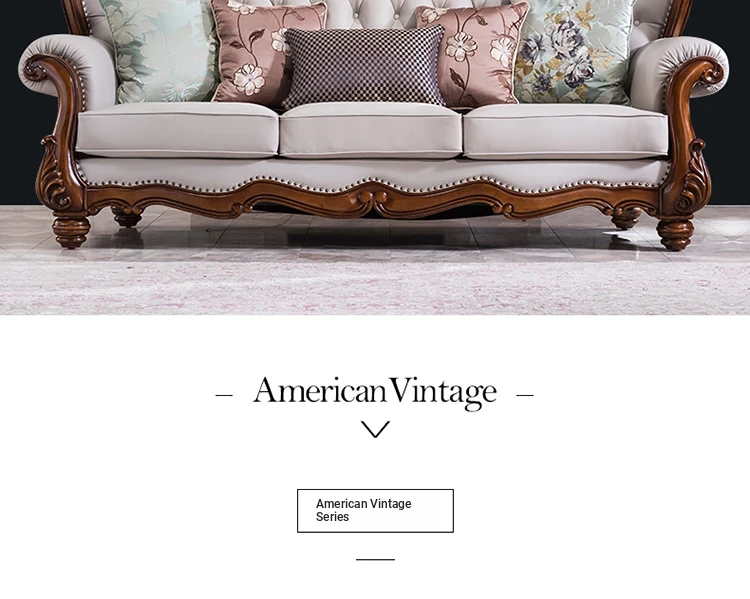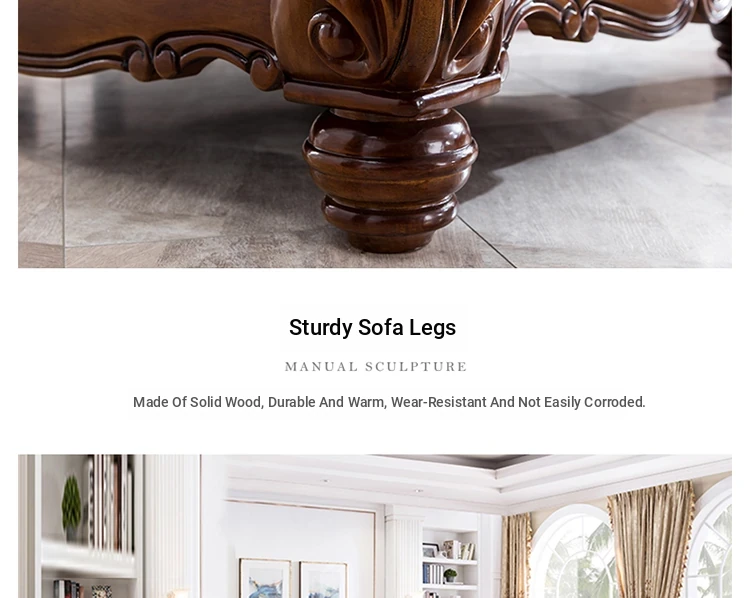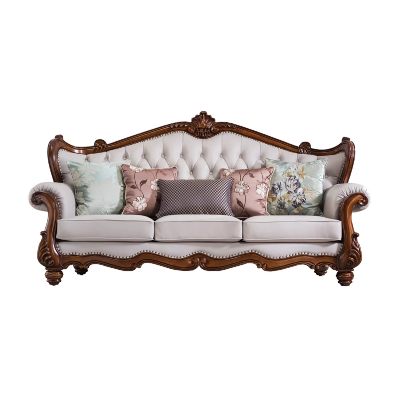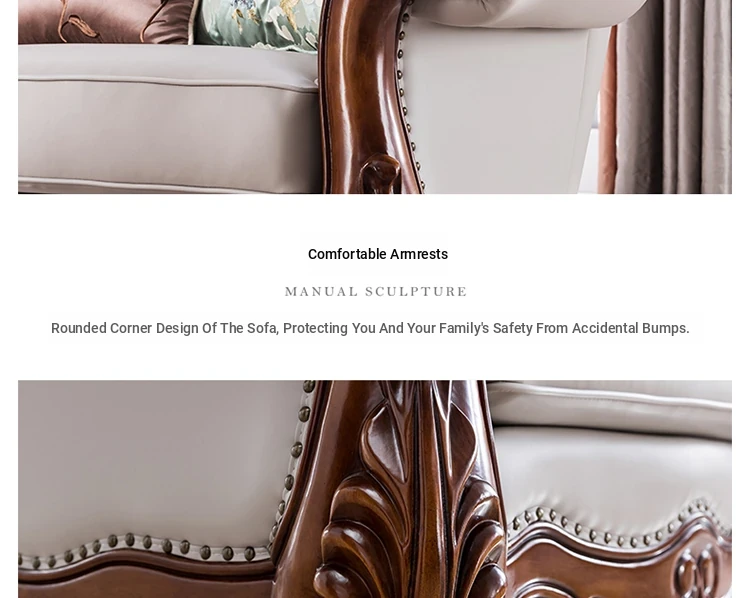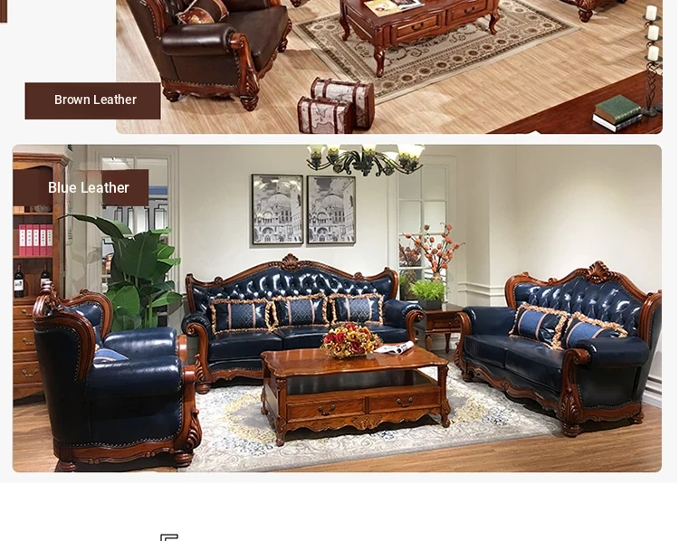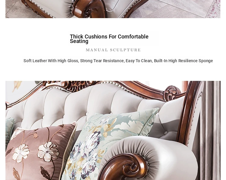 American Style Solid Wood Leather Sofa Set - 3-Seater for Small Spaces, Includes Elegant Coffee Table, Perfect for Villas and Modern Living Rooms with Exquisite Carvings