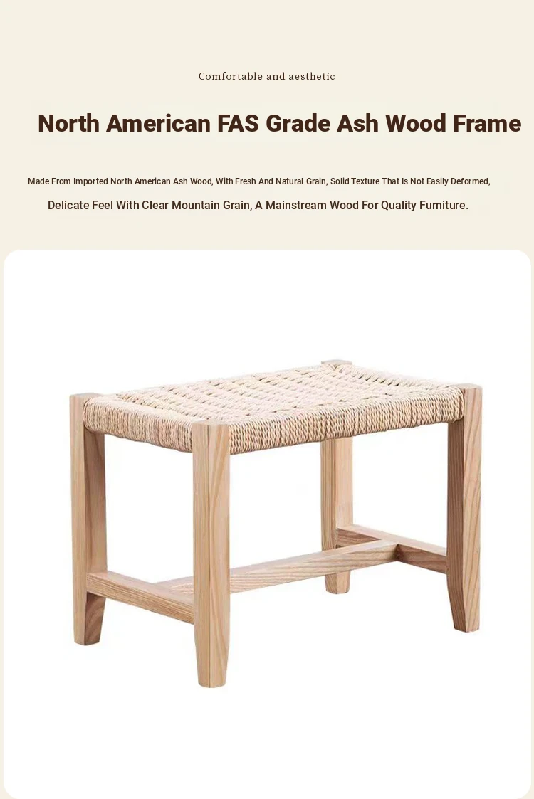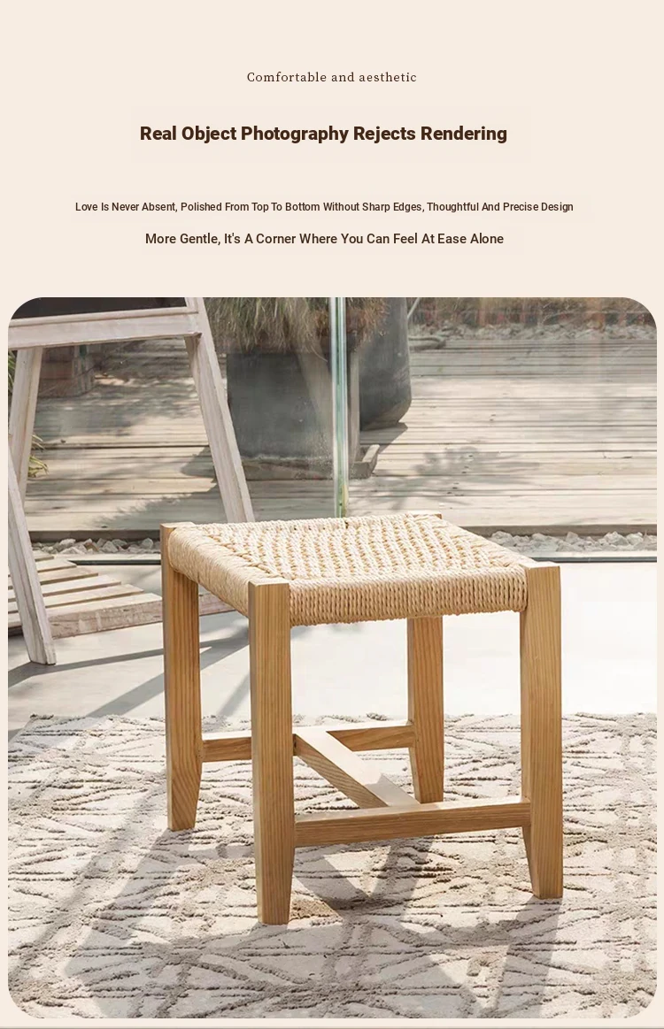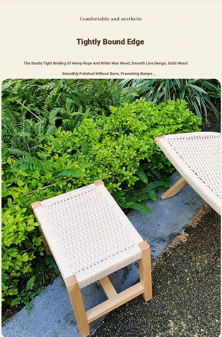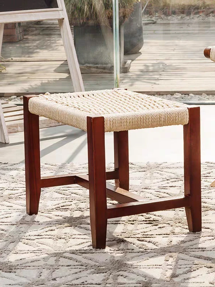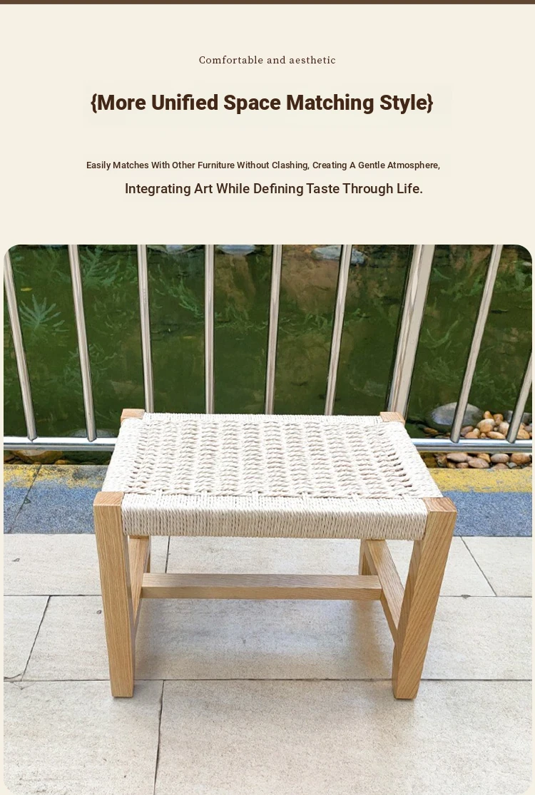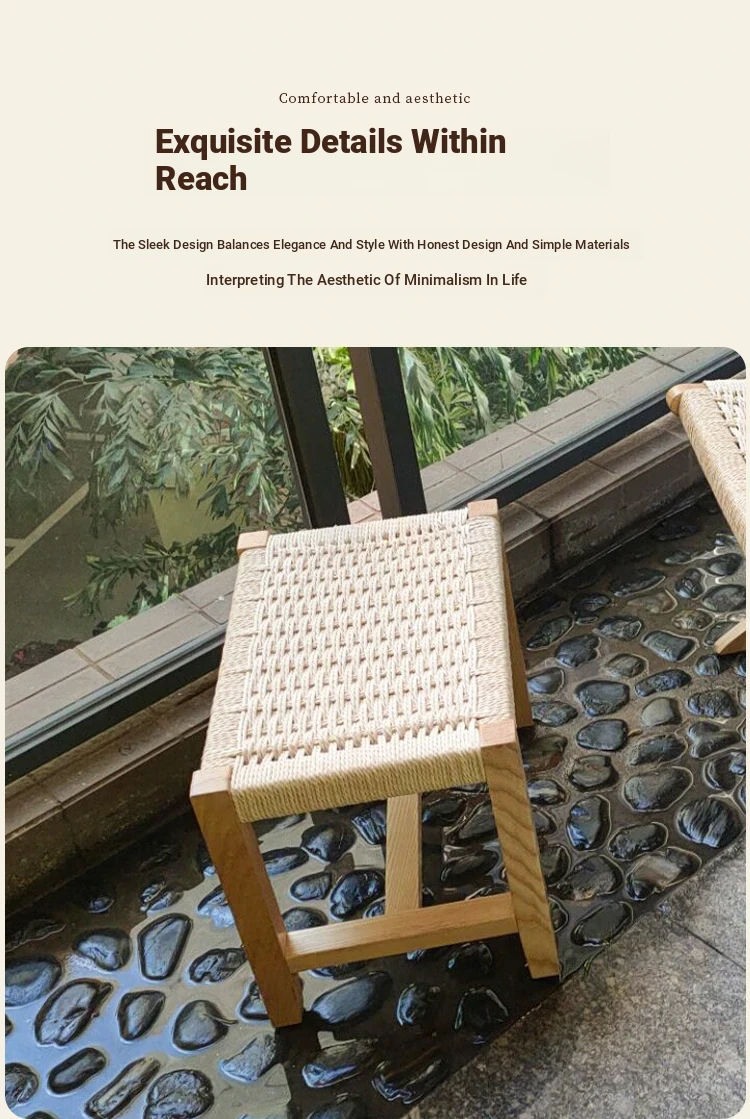 Braided Rattan Bench with Leather and Solid Wood – Stylish Shoe Stool for Adults, Perfect for Home Use, Minimalist Design for Apartments and Guesthouses, Ideal as a Sofa Footrest.