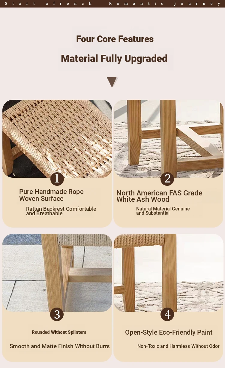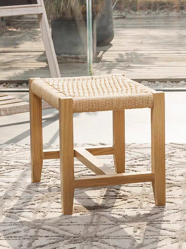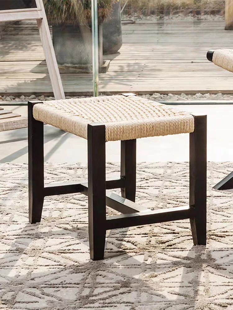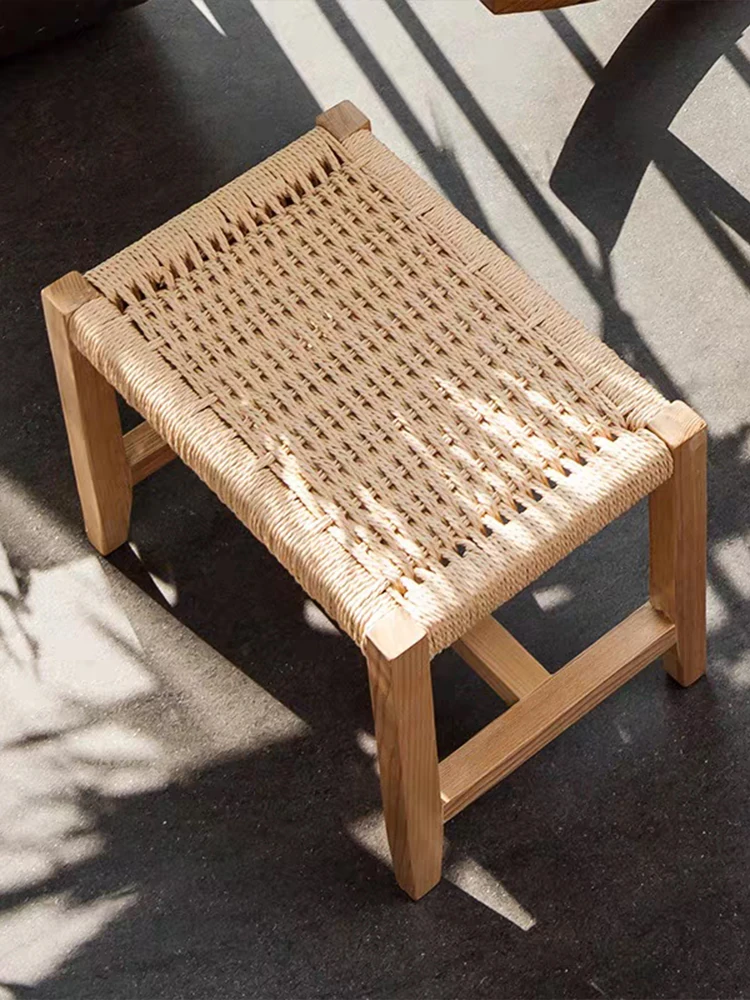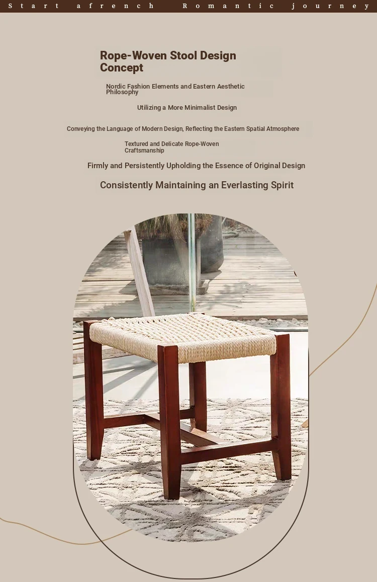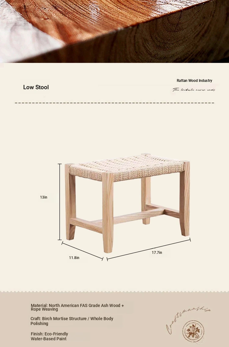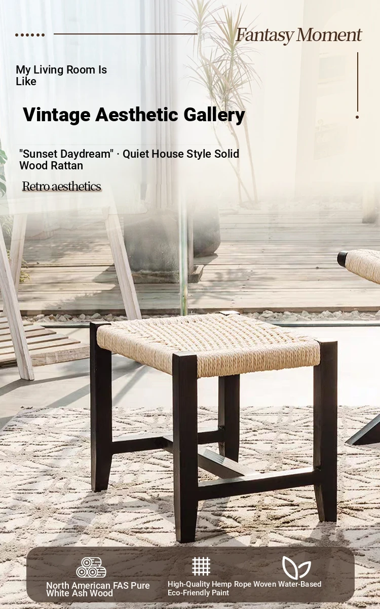 Braided Rattan Bench with Leather and Solid Wood – Stylish Shoe Stool for Adults, Perfect for Home Use, Minimalist Design for Apartments and Guesthouses, Ideal as a Sofa Footrest.