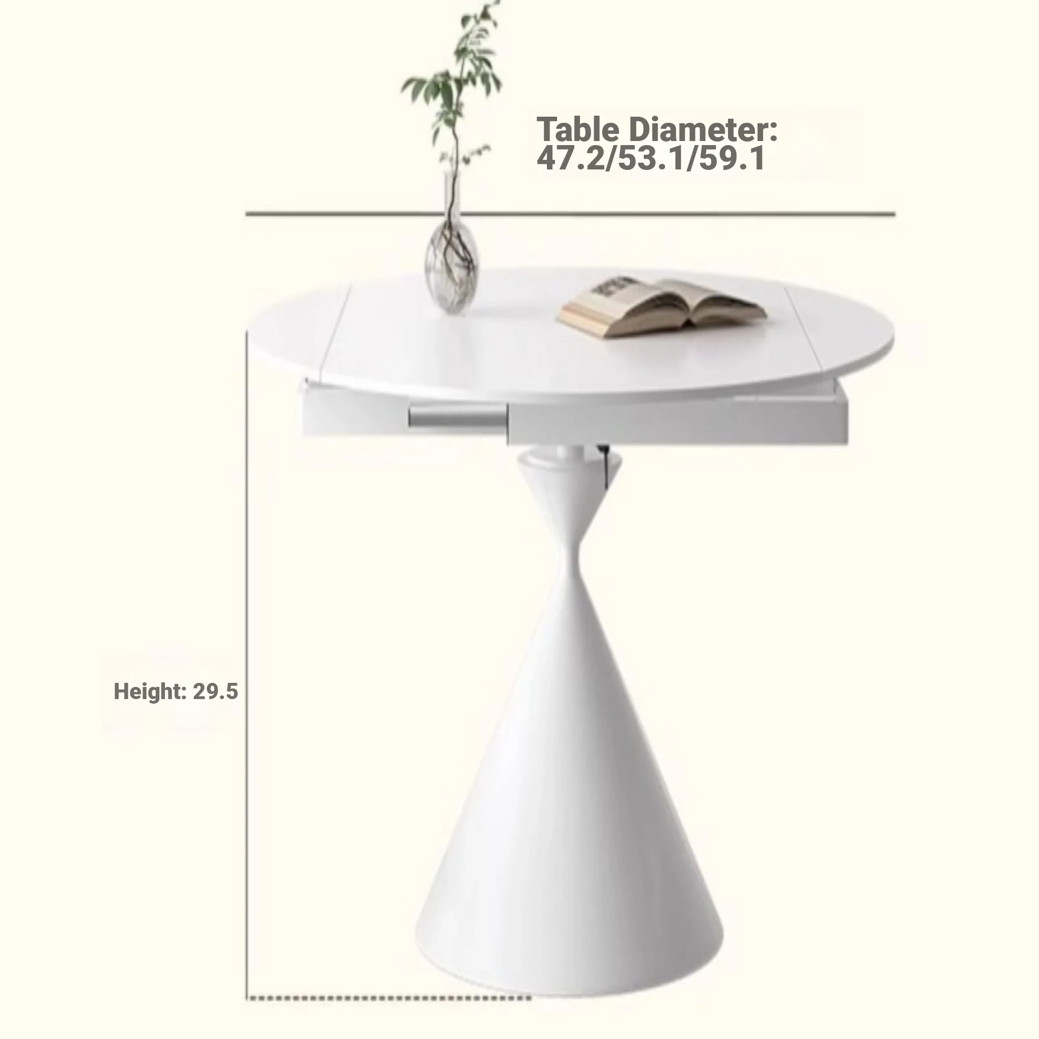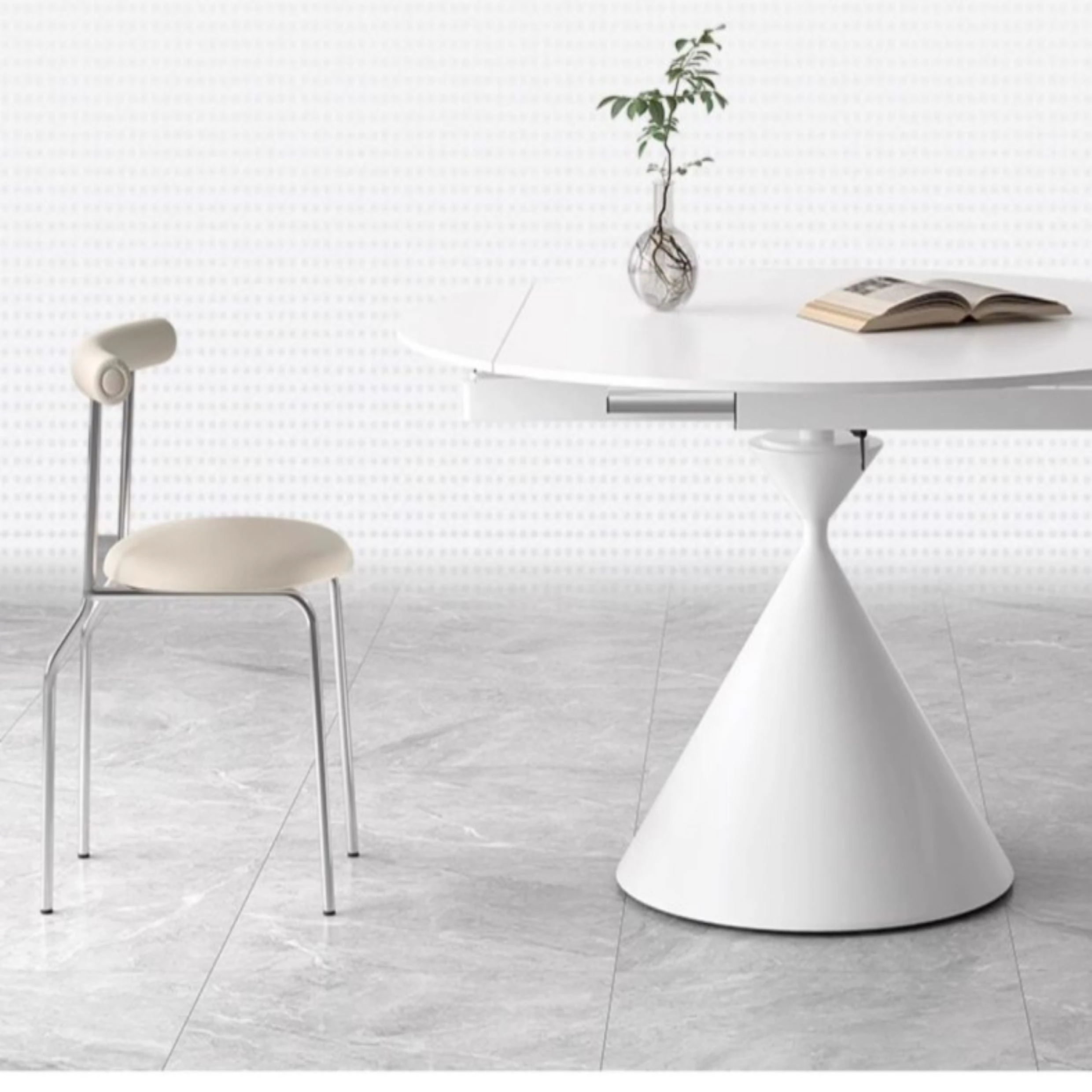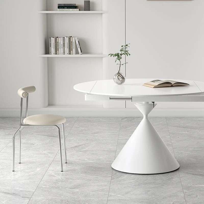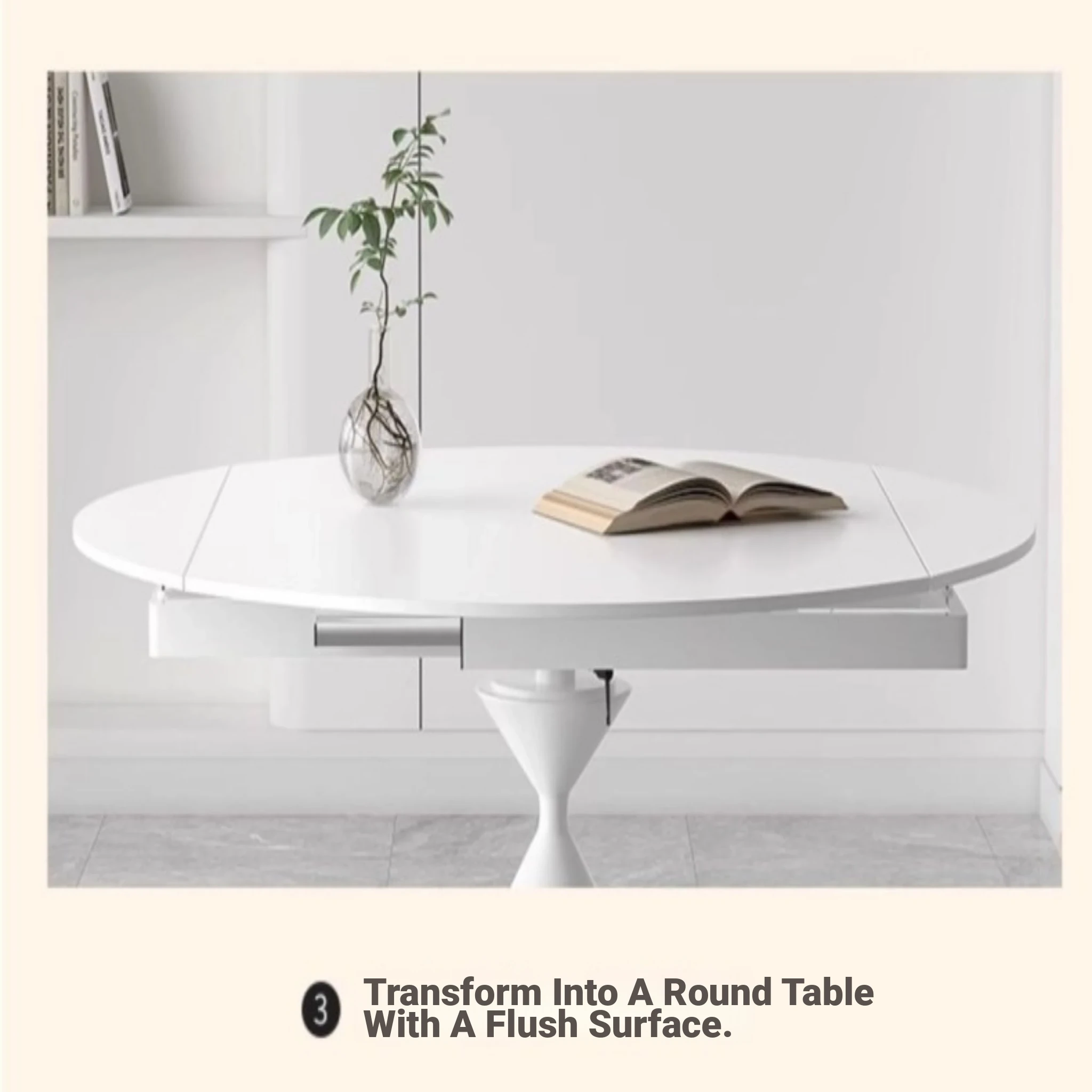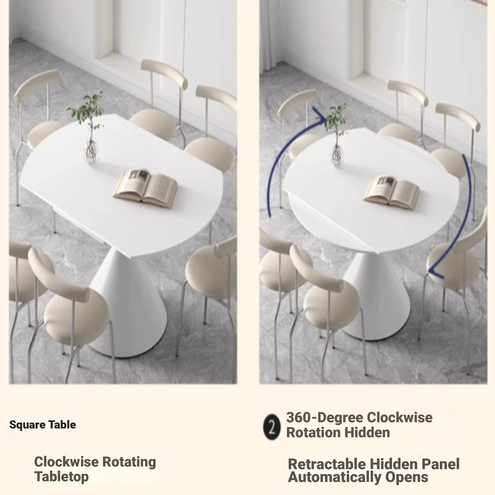 Creamy White Matte Rock Slab Dining Table - Rotating, Expandable, Versatile Square to Round Design for Modern Elegance