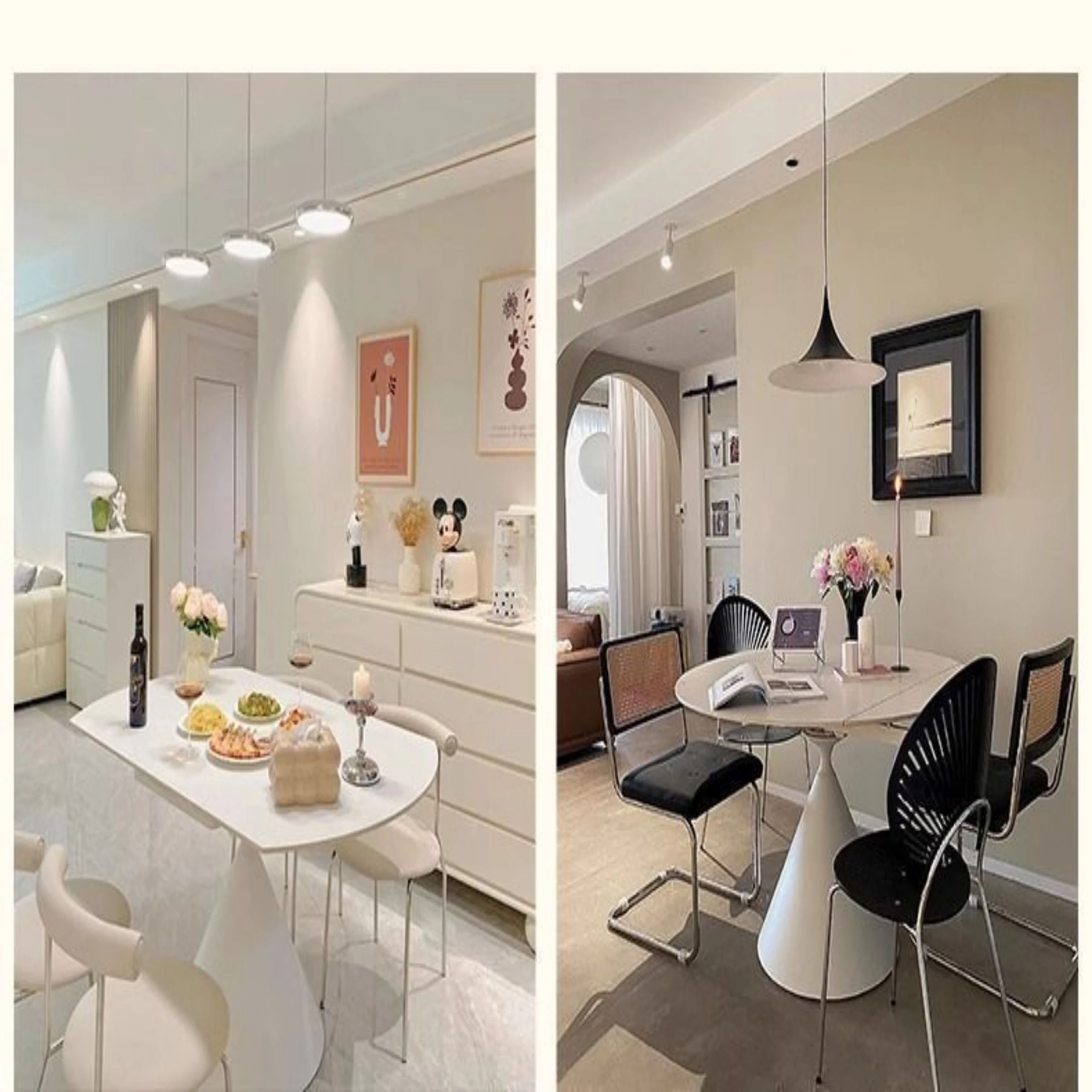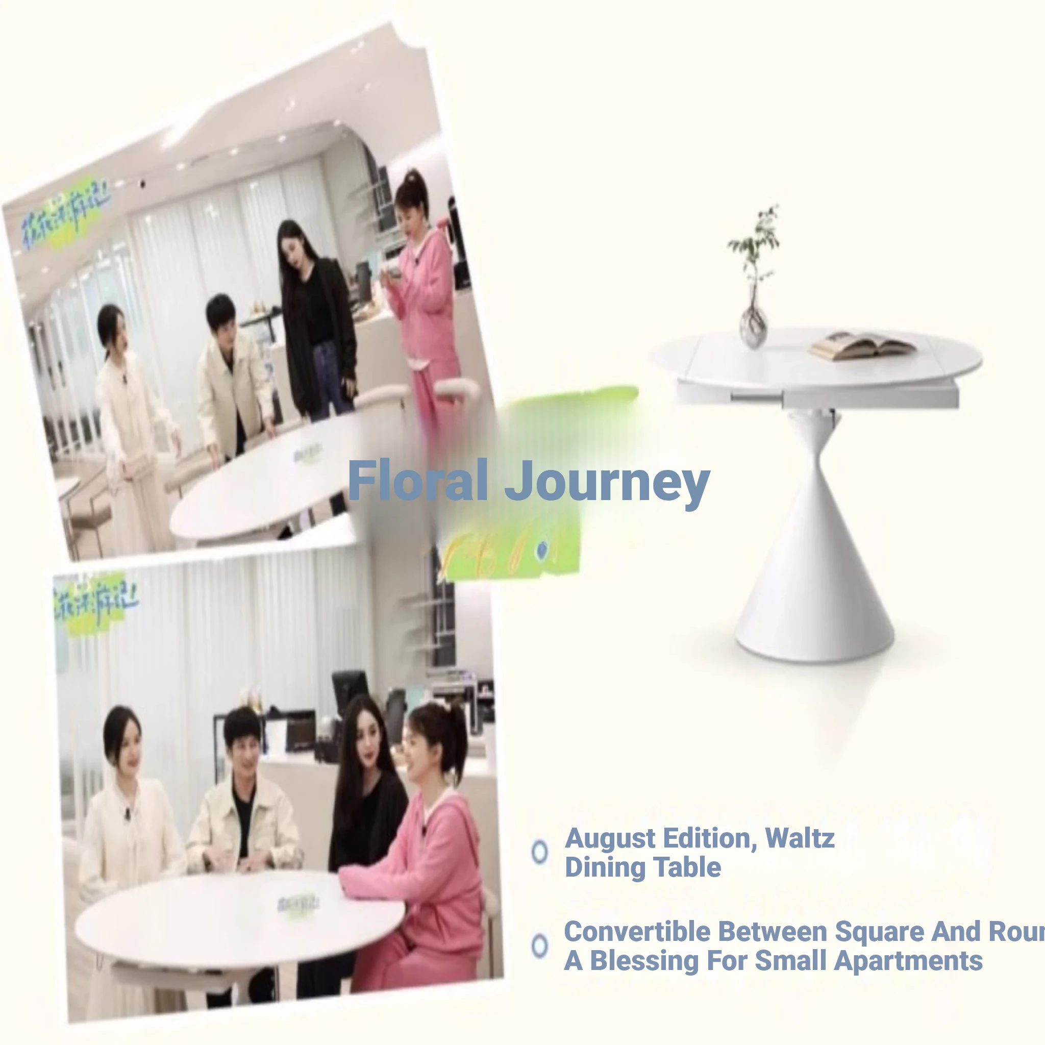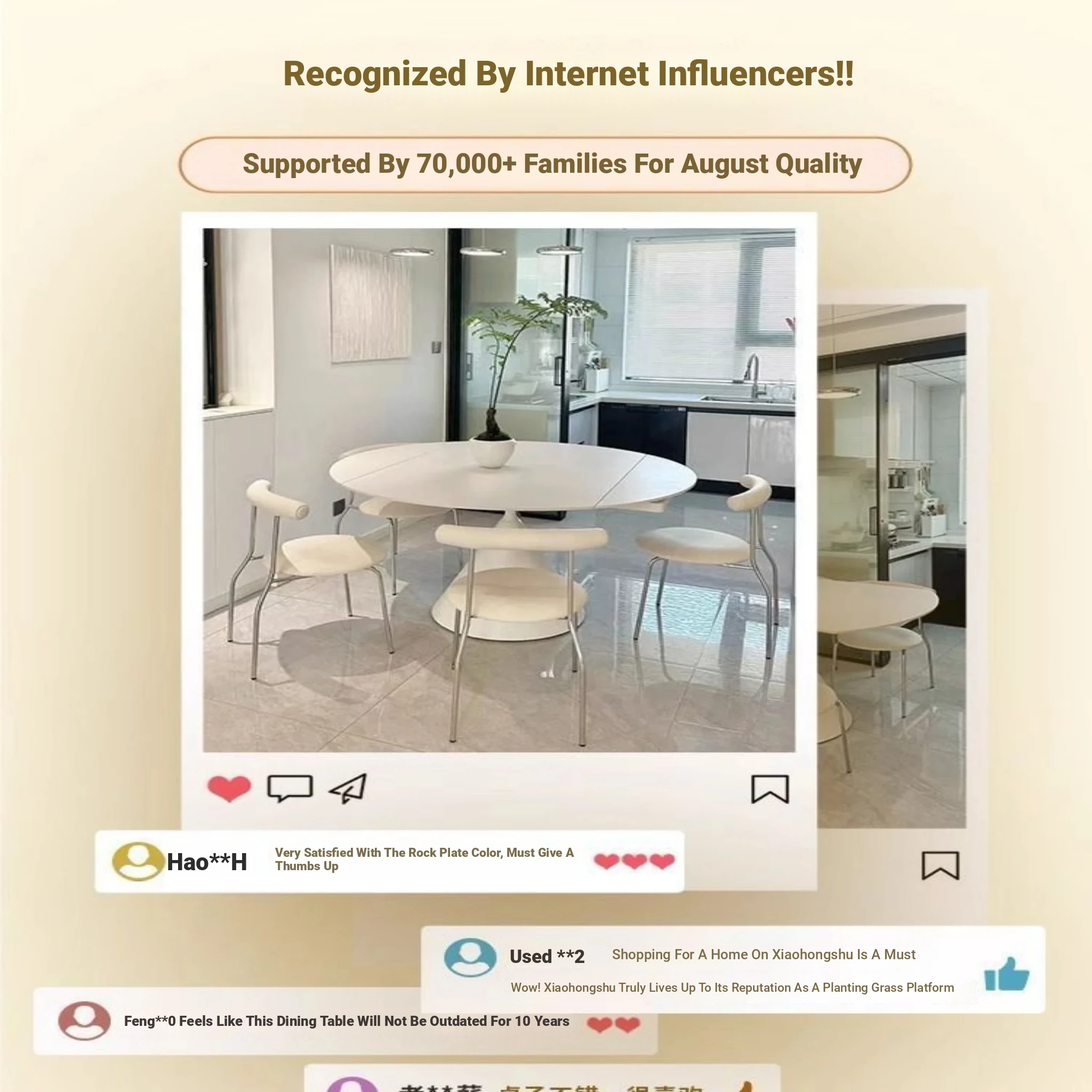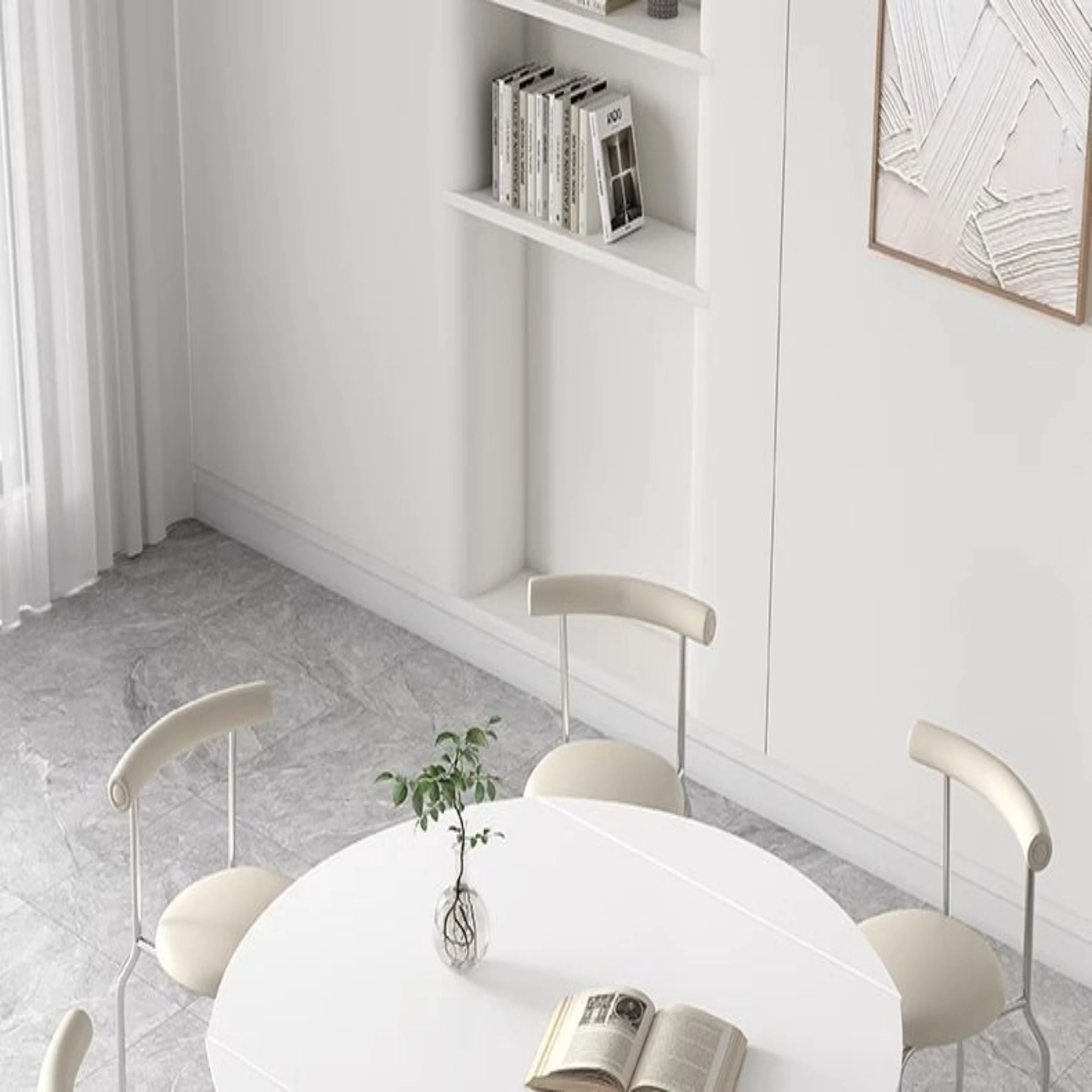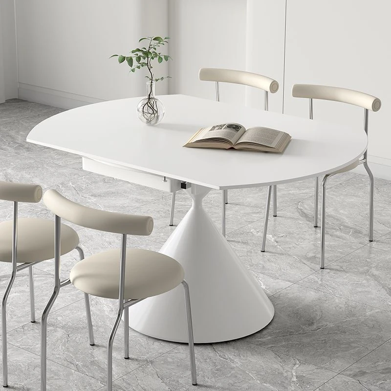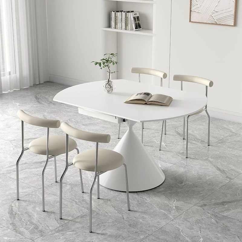 Creamy White Matte Rock Slab Dining Table - Rotating, Expandable, Versatile Square to Round Design for Modern Elegance