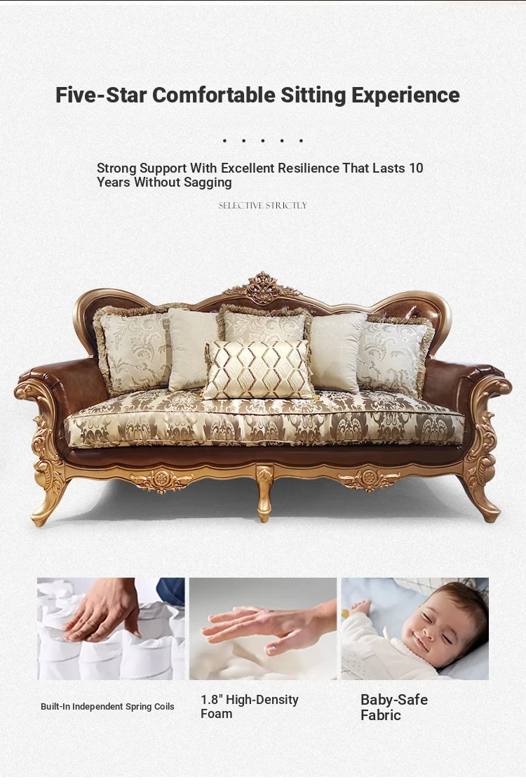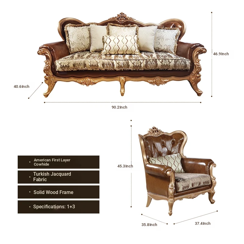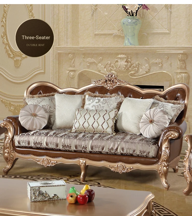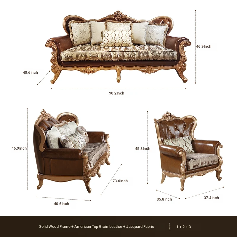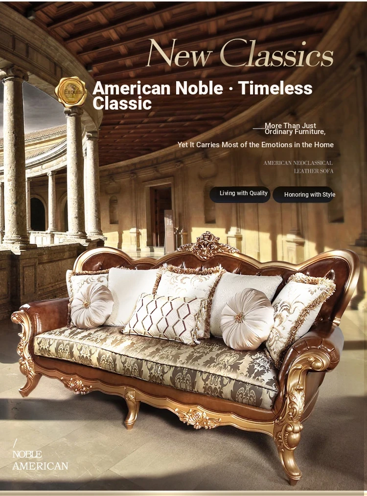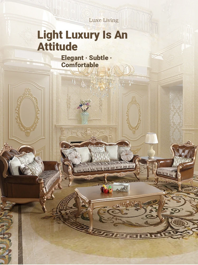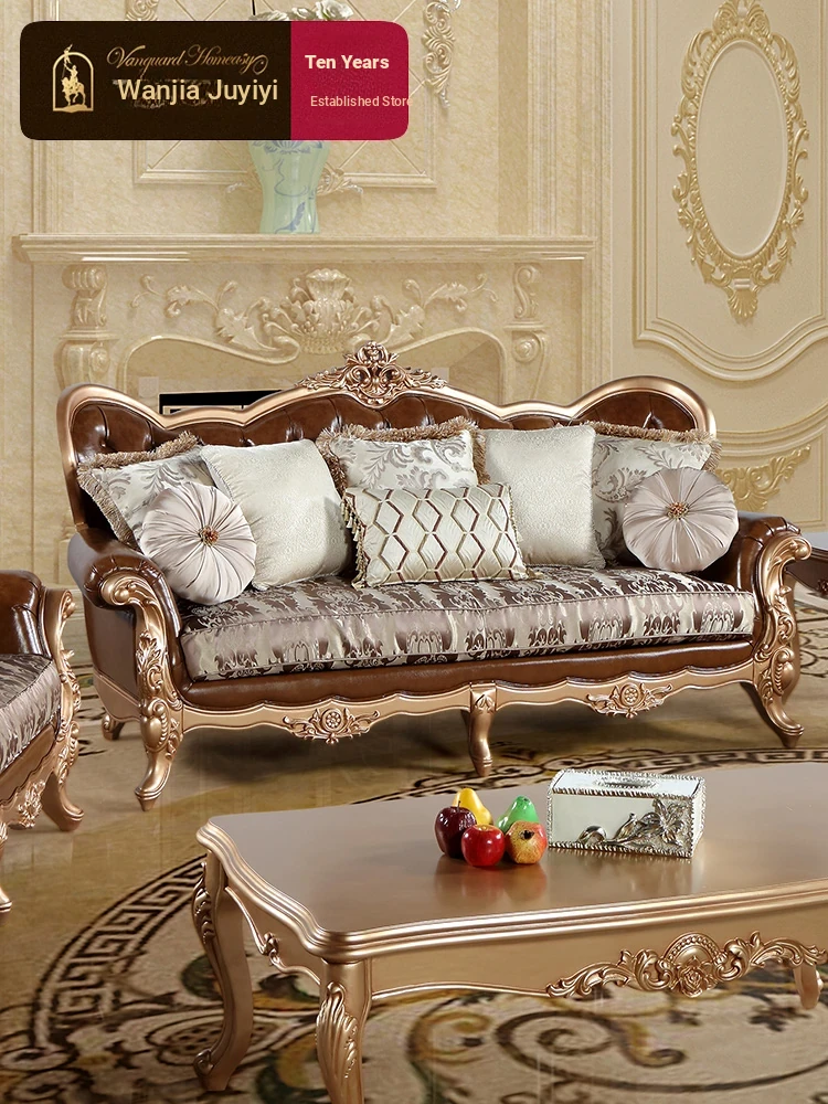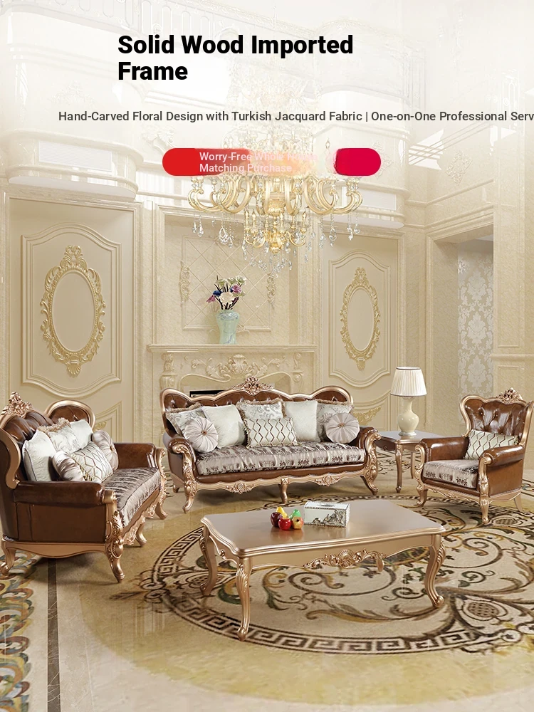 Elegant European Style 123 Sofa Set for Living Room - American Light Luxury U-Shaped Three-Seater, Premium Real Leather and Fabric, Simple European Solid Wood, Luxurious and High-End Design