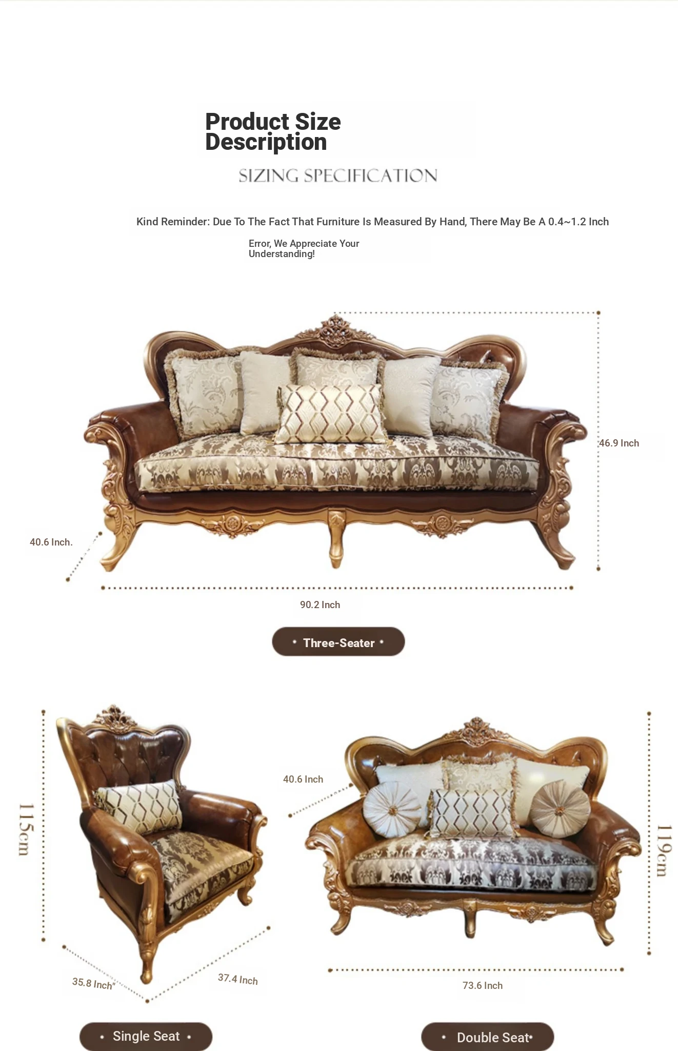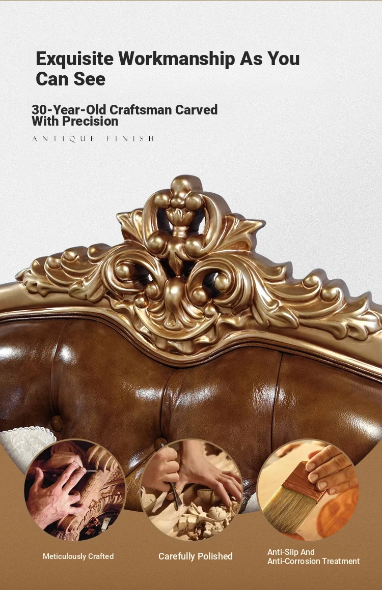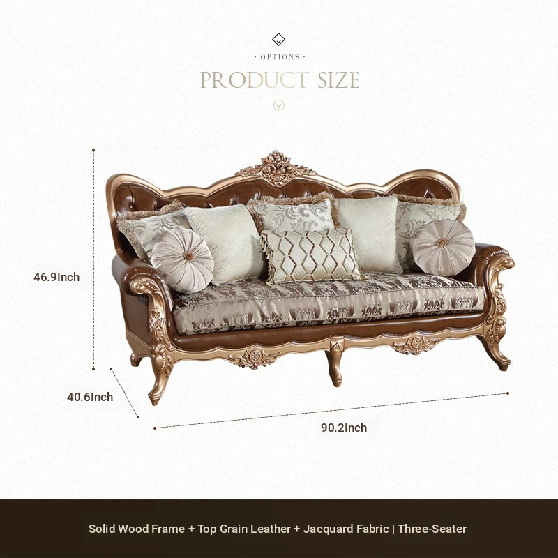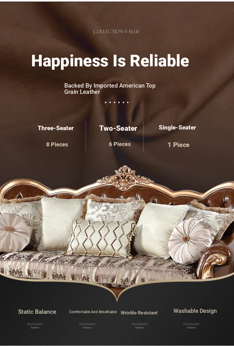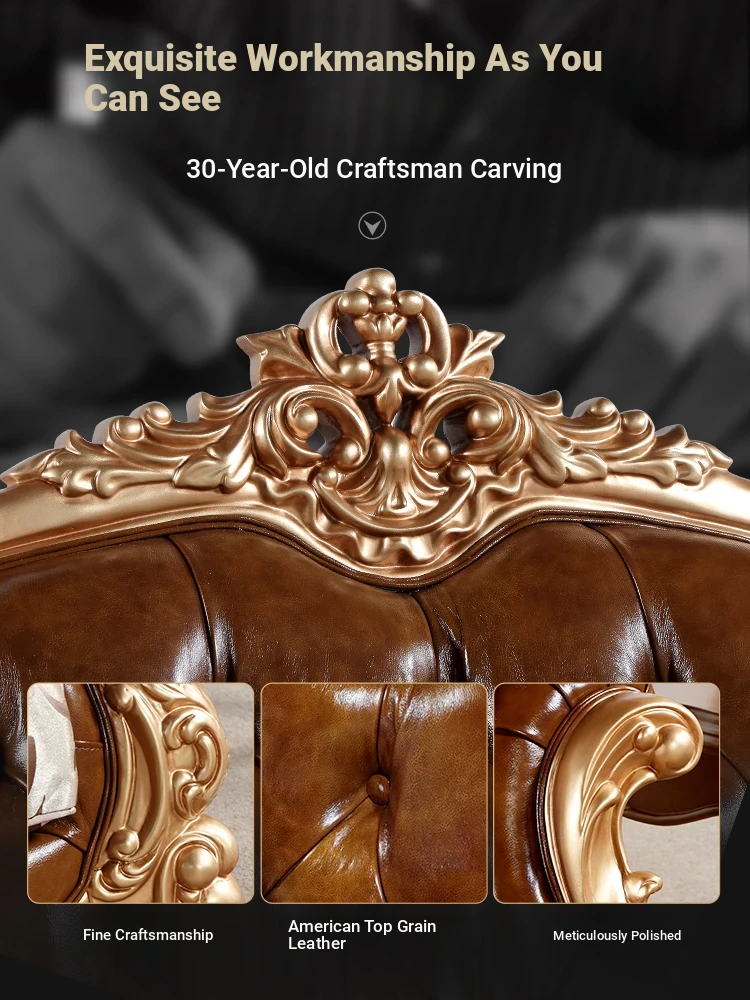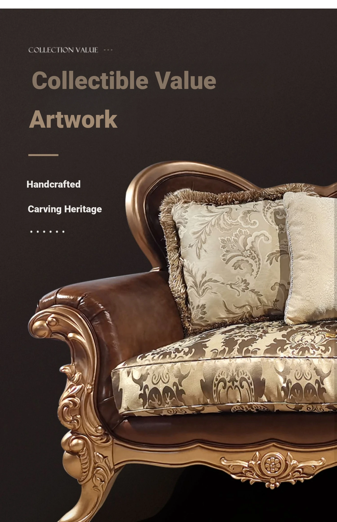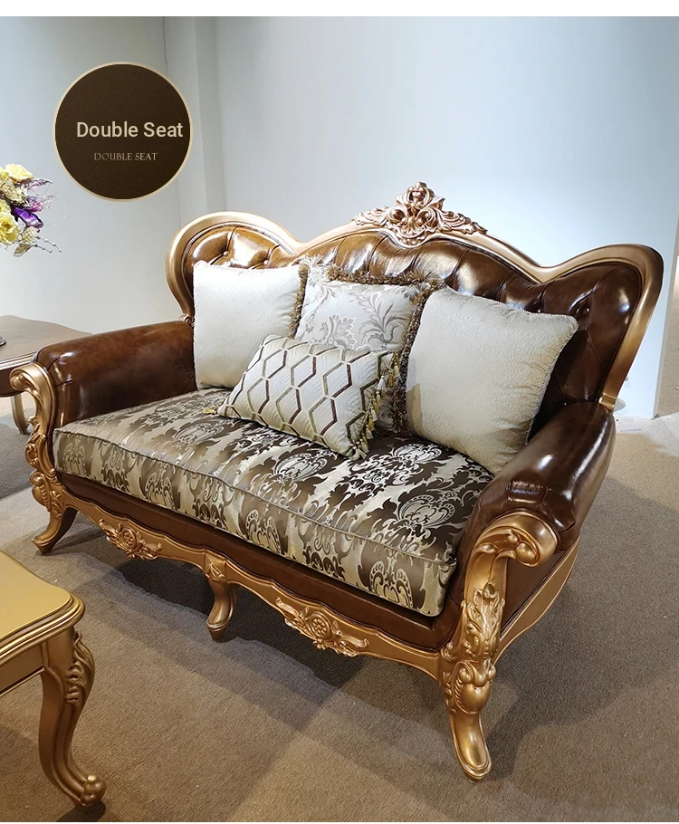 Elegant European Style 123 Sofa Set for Living Room - American Light Luxury U-Shaped Three-Seater, Premium Real Leather and Fabric, Simple European Solid Wood, Luxurious and High-End Design
