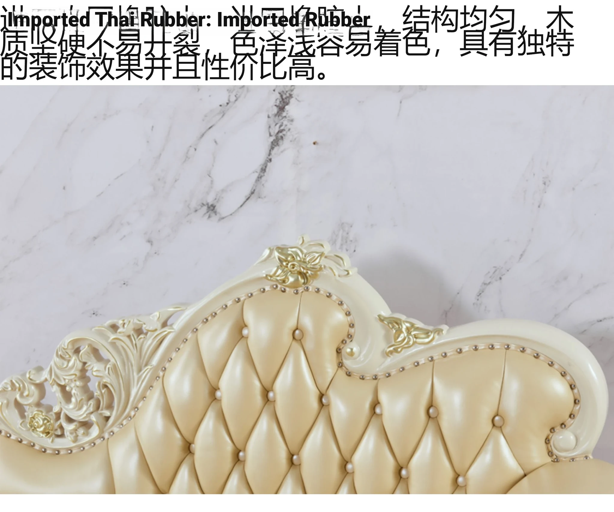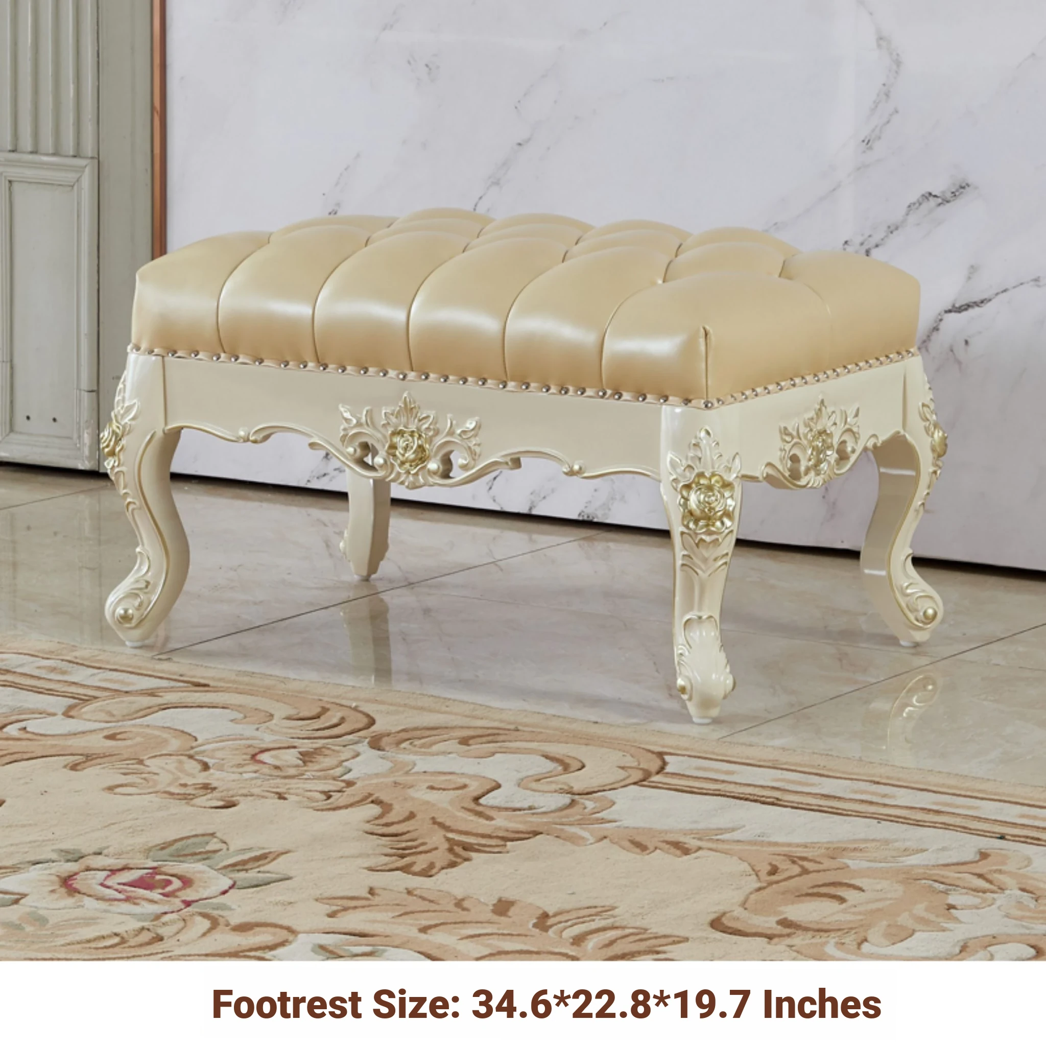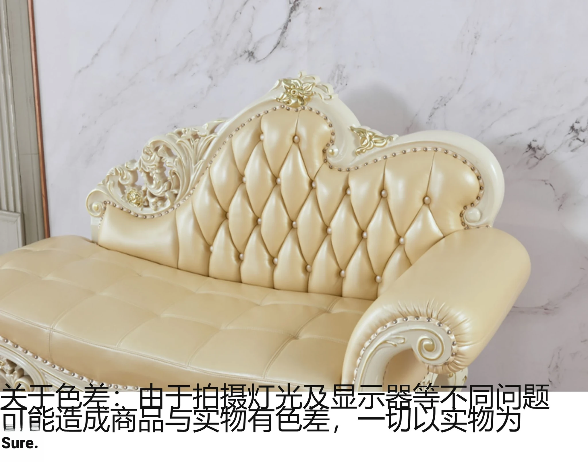 European Style Solid Wood Chaise Lounge - Ivory White Genuine Leather Sofa for Bedroom Relaxation