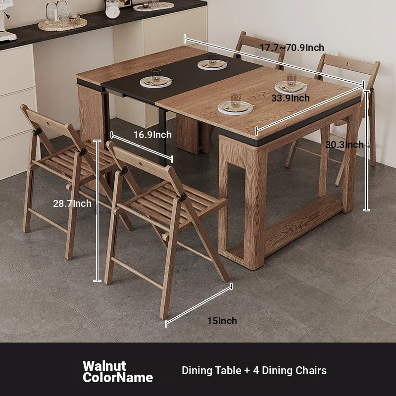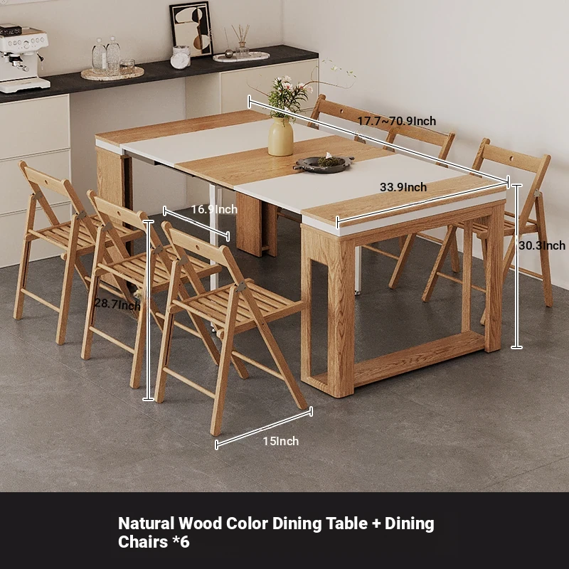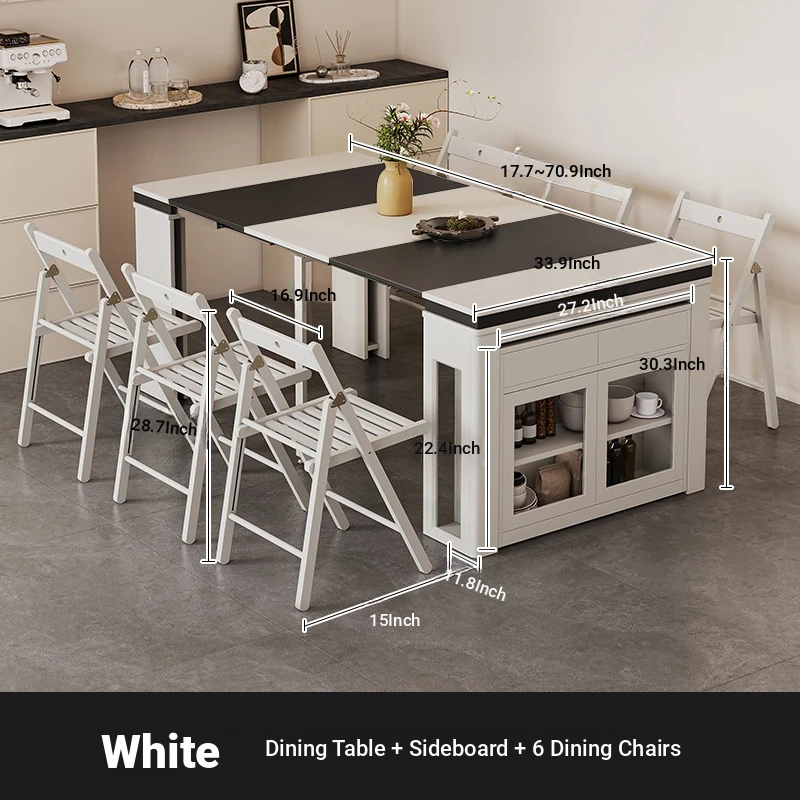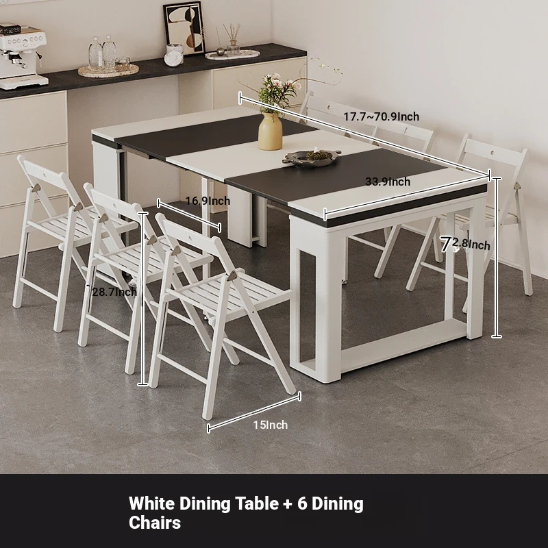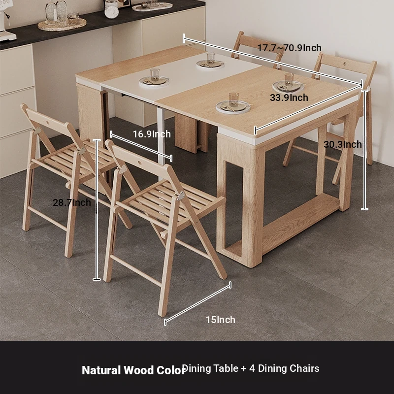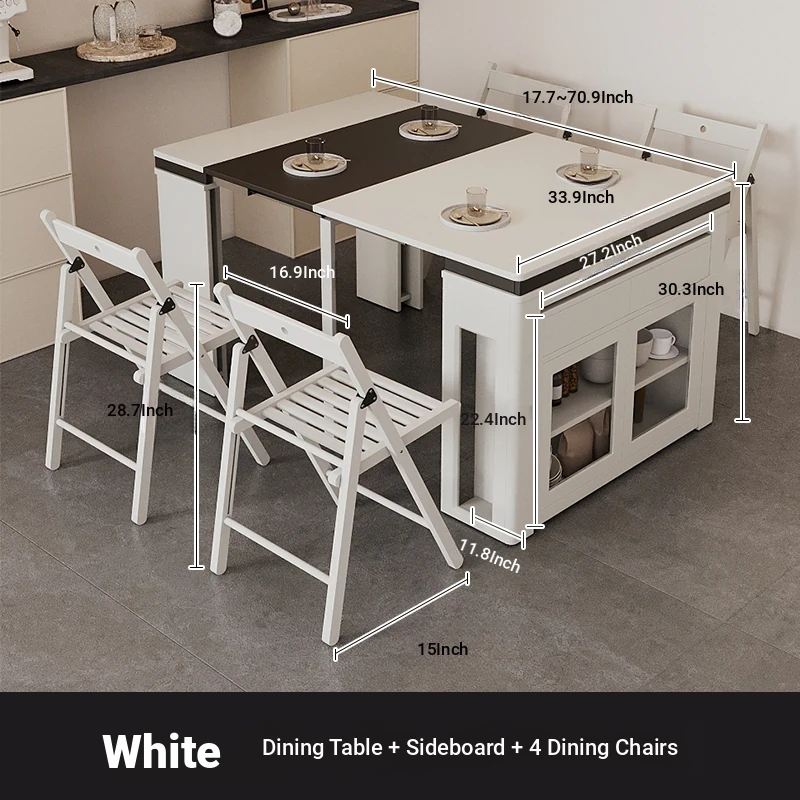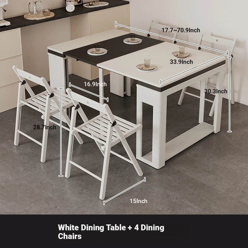 Foldable Dining Table and Chair Set with Storage - Nordic Style Multi-functional Rectangular Expandable Dining Table for Small Spaces