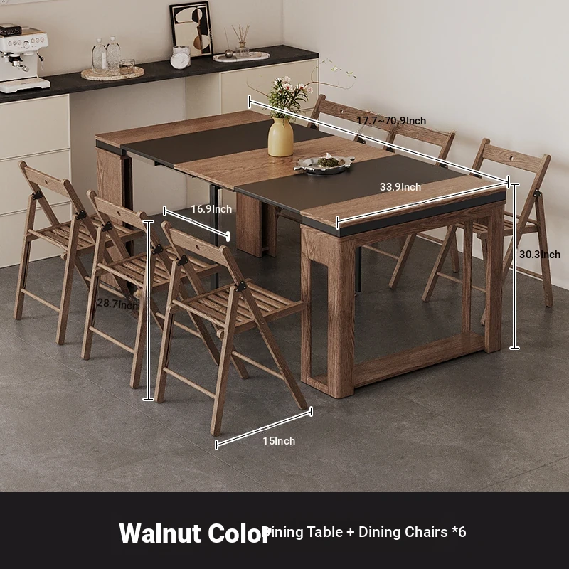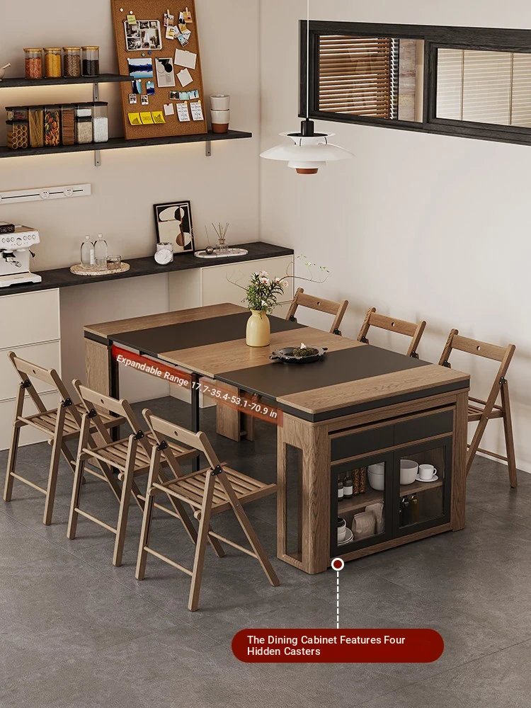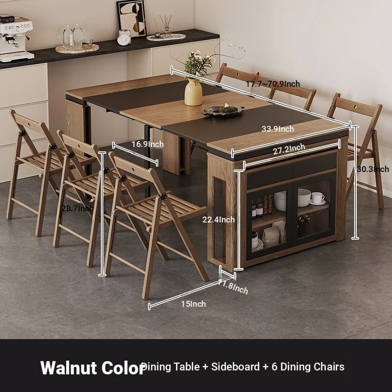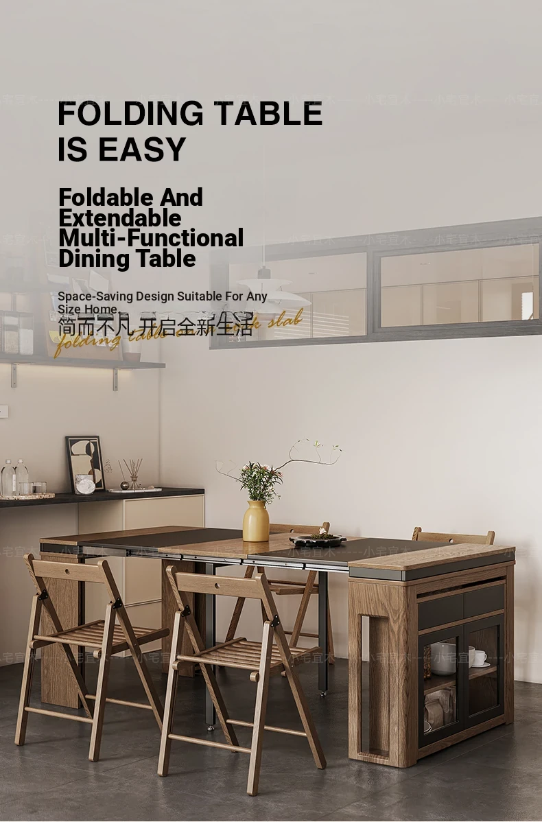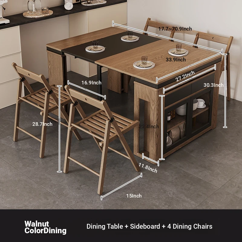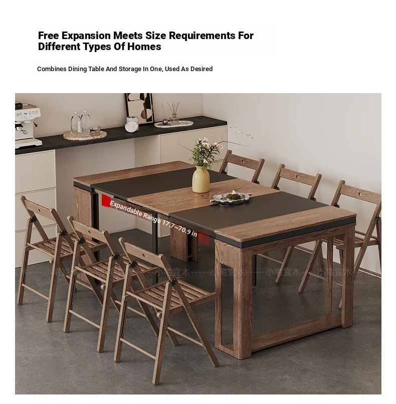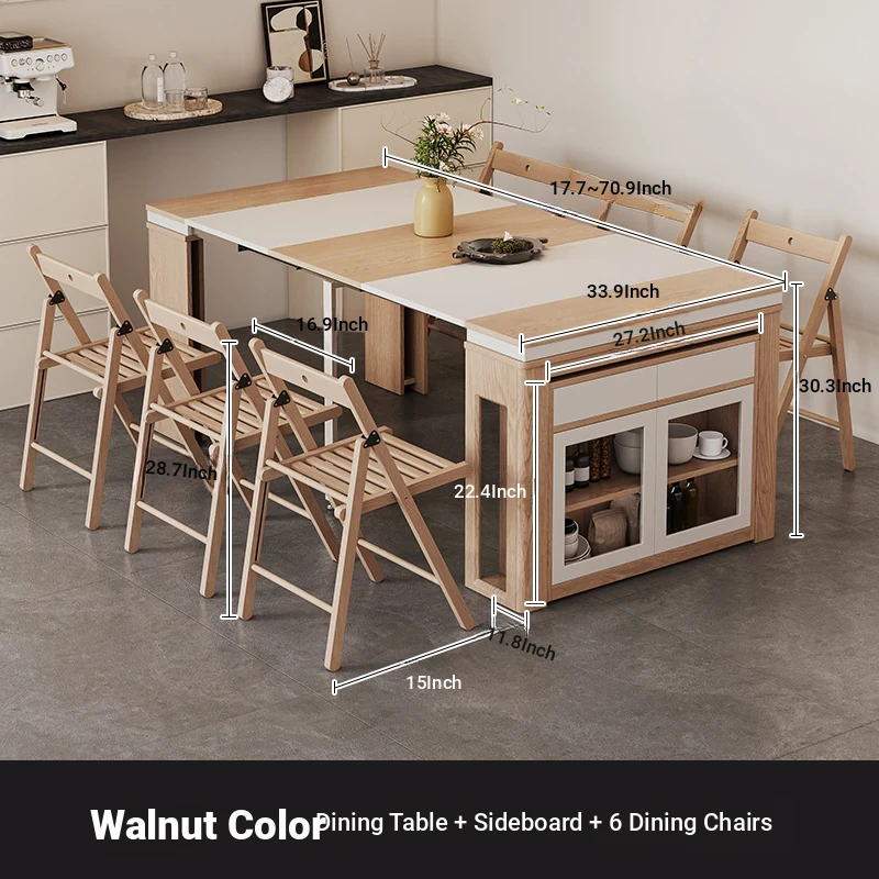 Foldable Dining Table and Chair Set with Storage - Nordic Style Multi-functional Rectangular Expandable Dining Table for Small Spaces