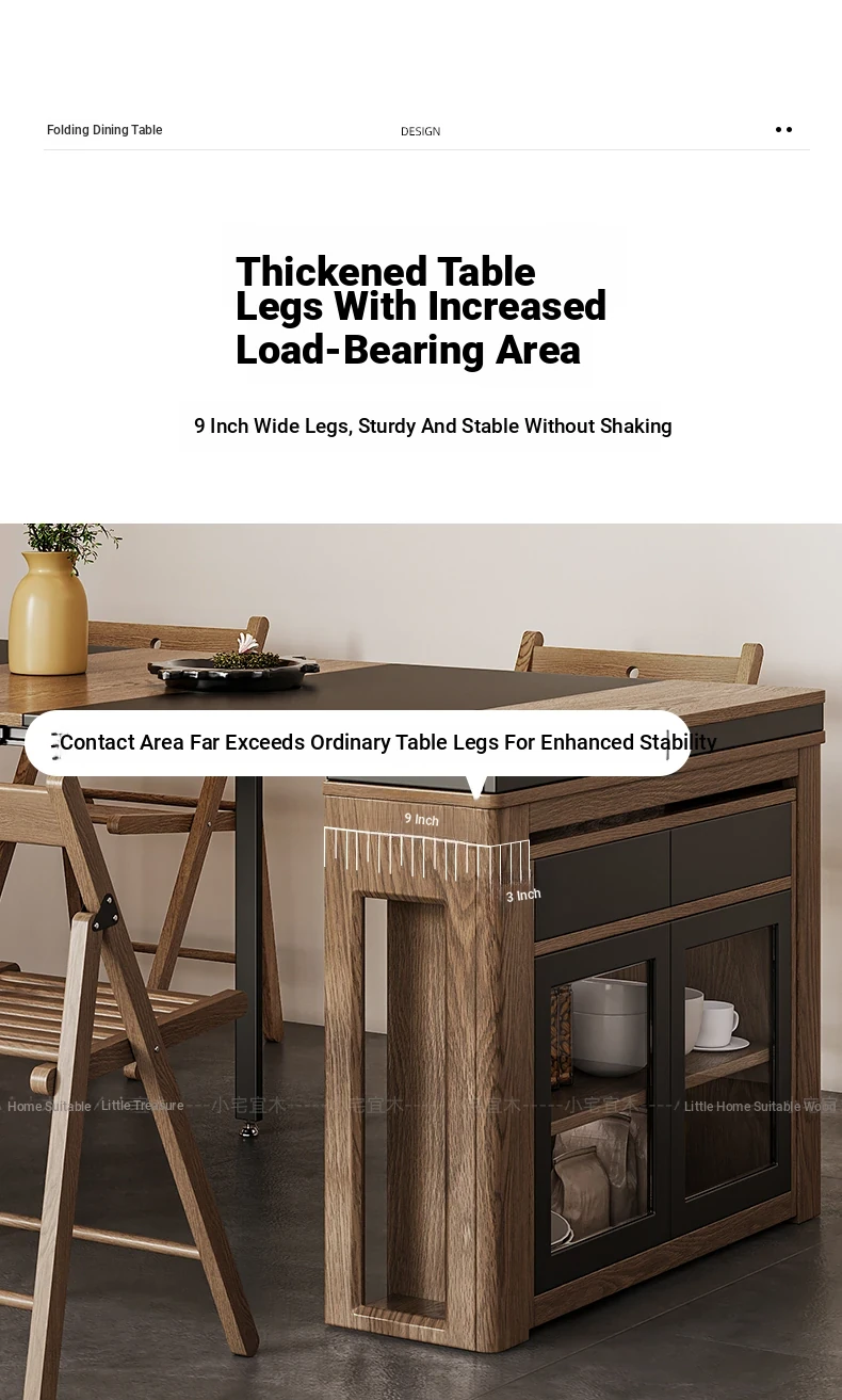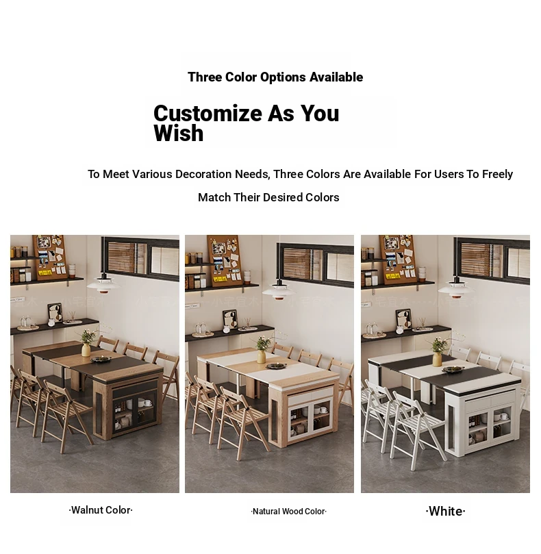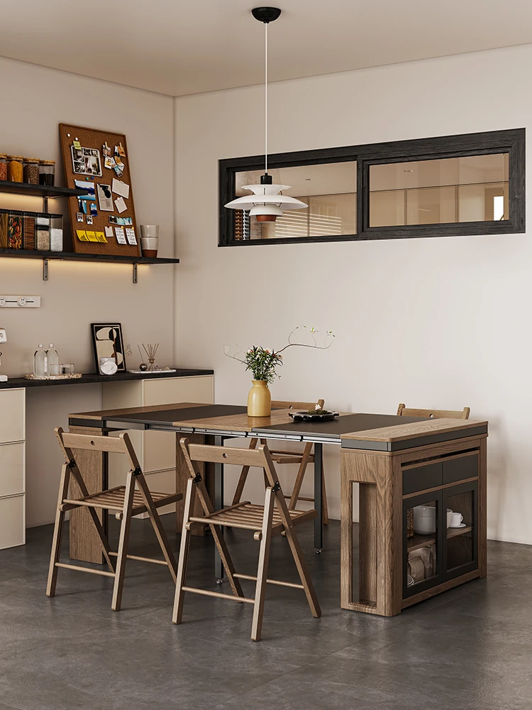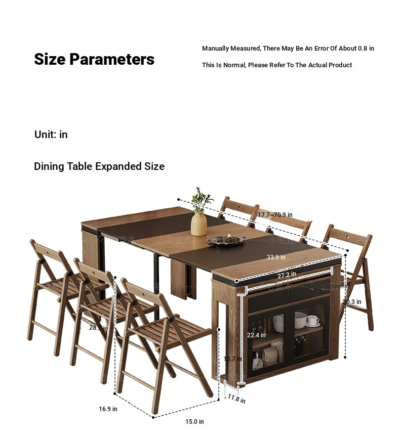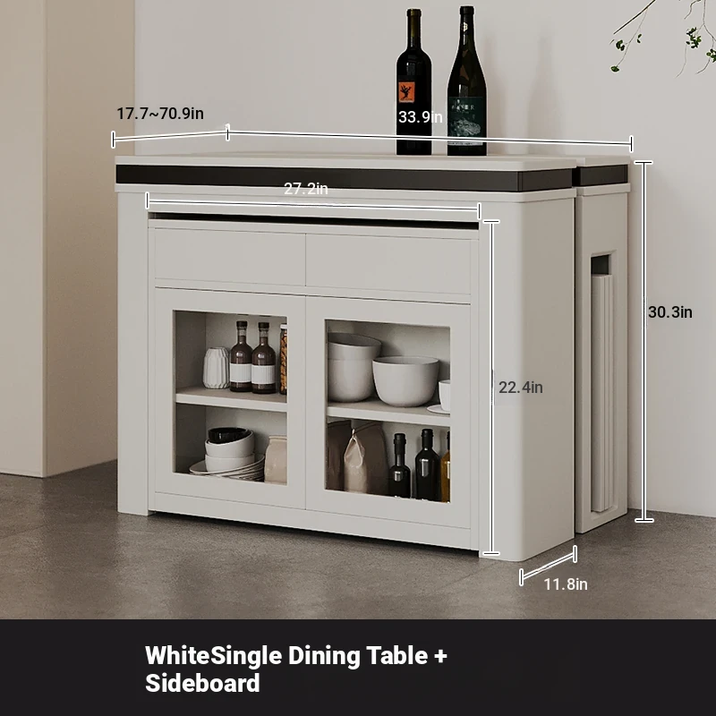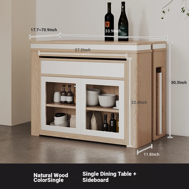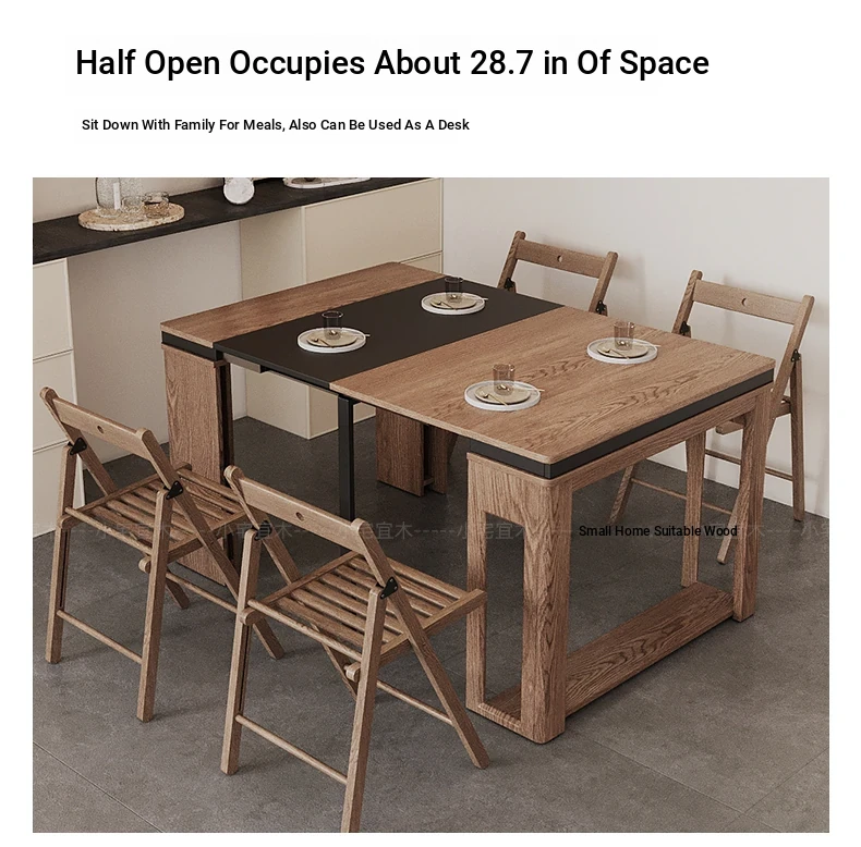 Foldable Dining Table and Chair Set with Storage - Nordic Style Multi-functional Rectangular Expandable Dining Table for Small Spaces