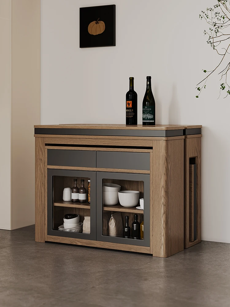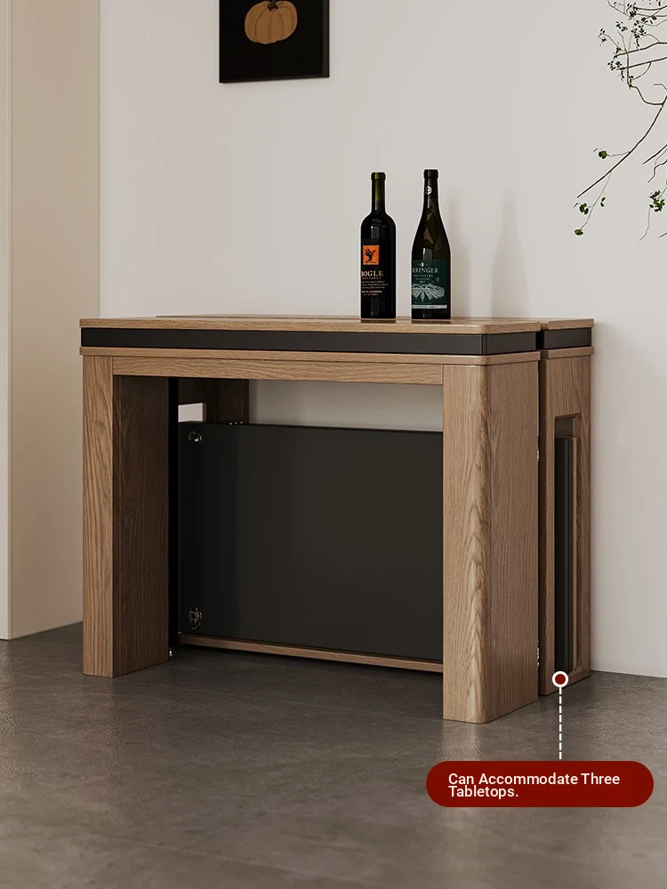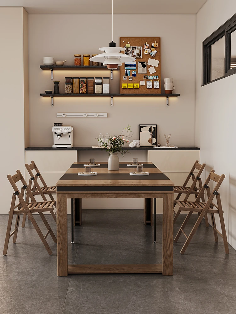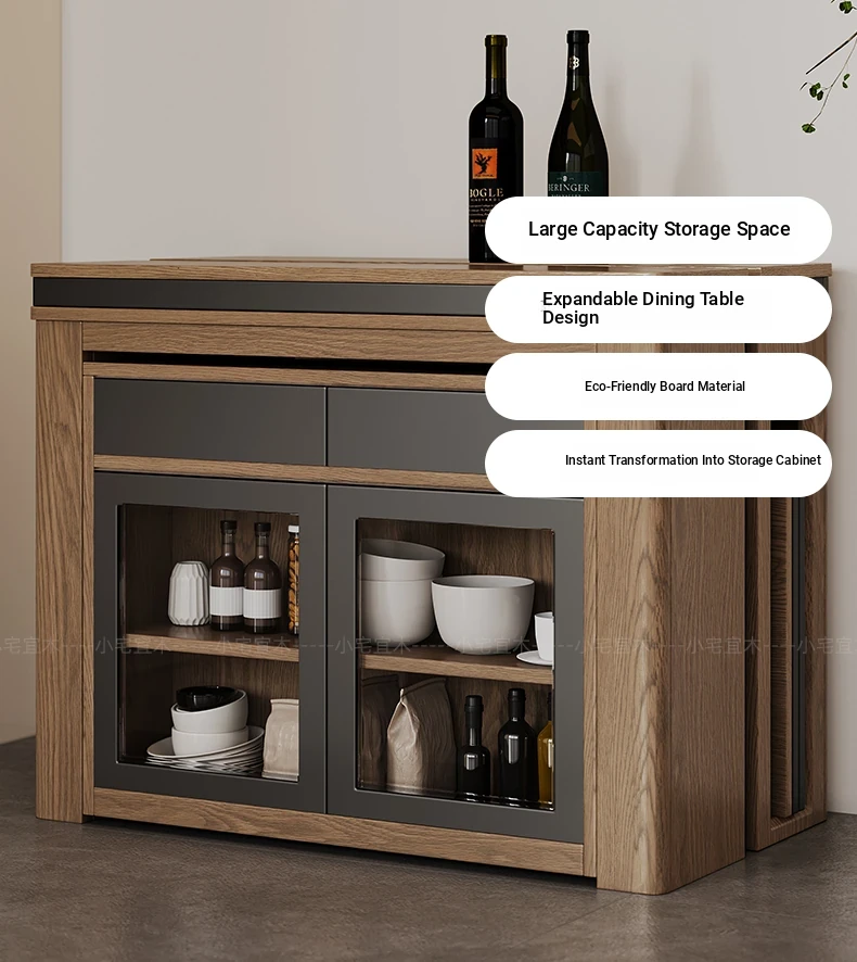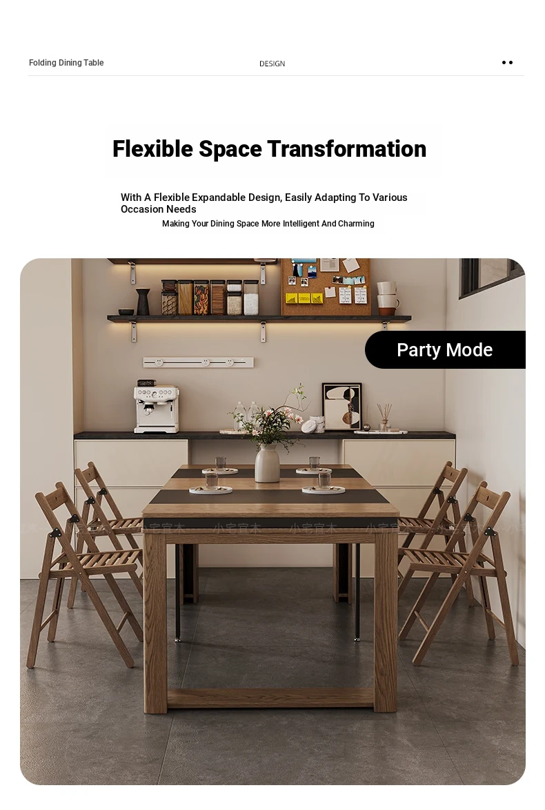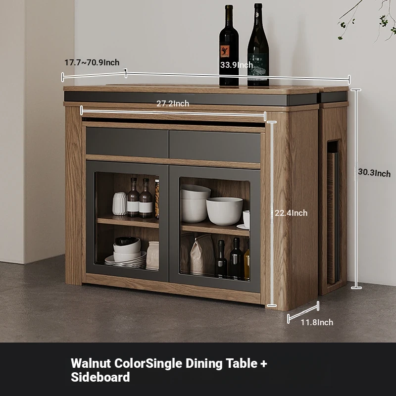 Foldable Dining Table and Chair Set with Storage - Nordic Style Multi-functional Rectangular Expandable Dining Table for Small Spaces