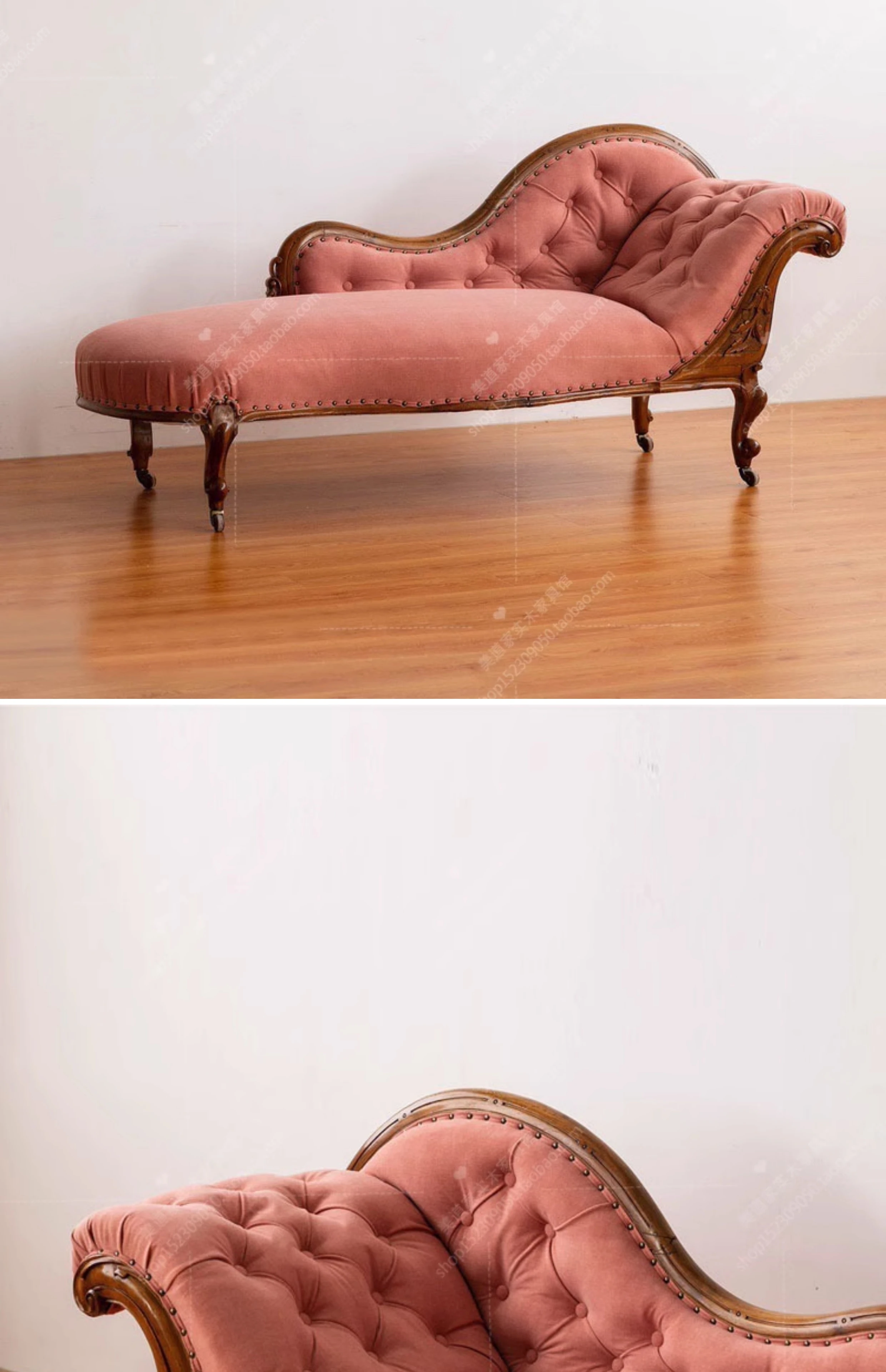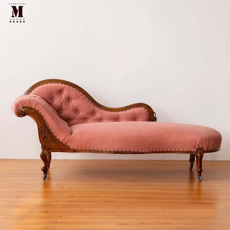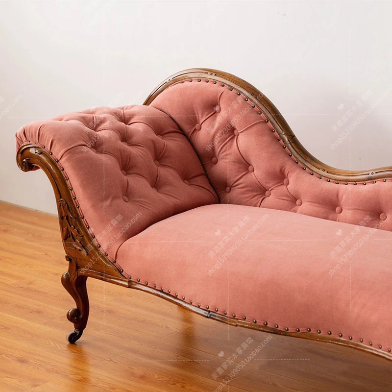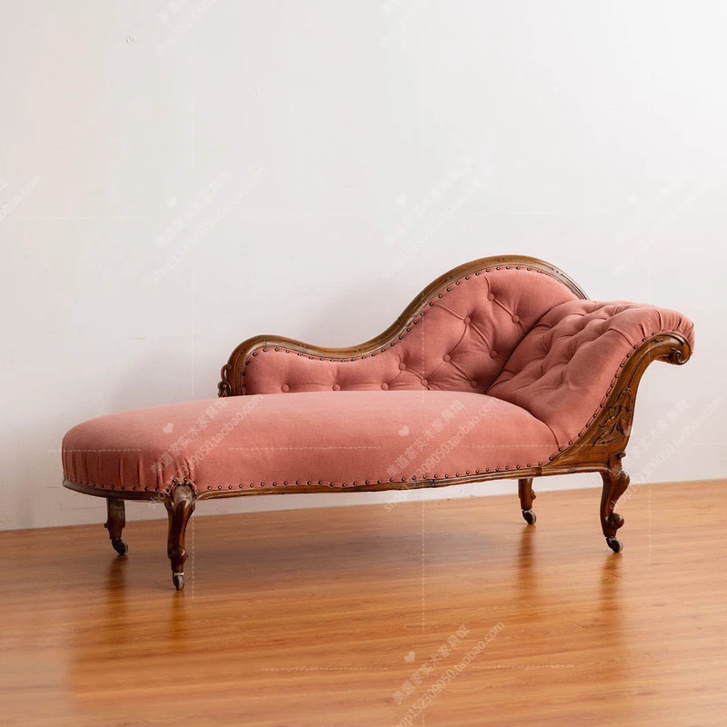 French Vintage Solid Wood Chaise Lounge - Elegant Daybed for Small Living Rooms and Bedrooms, Antique Style Beauty Couch
