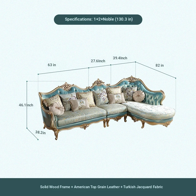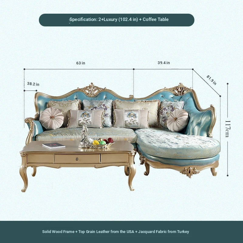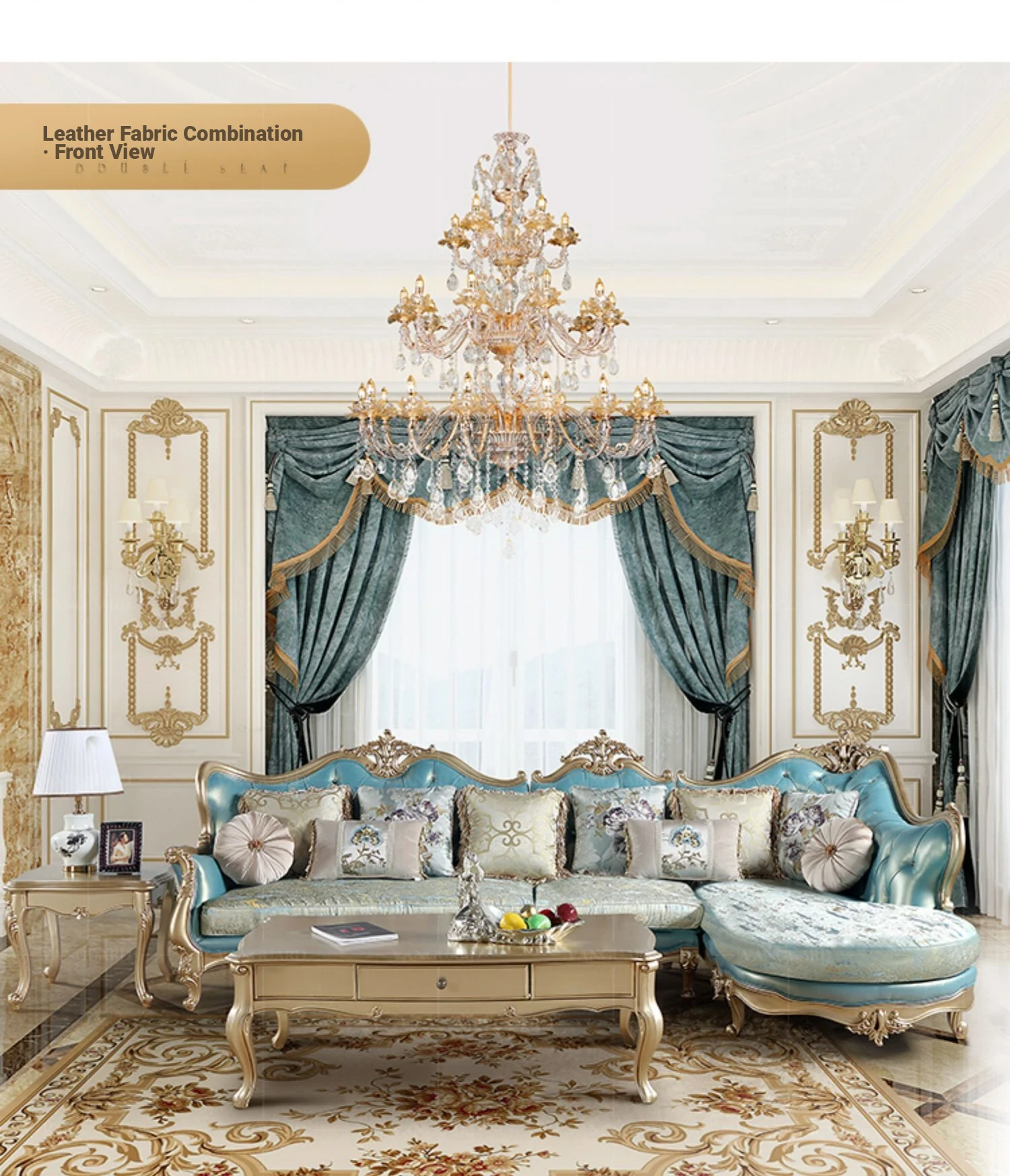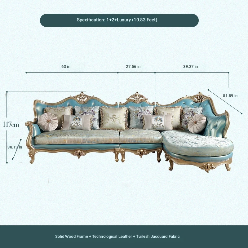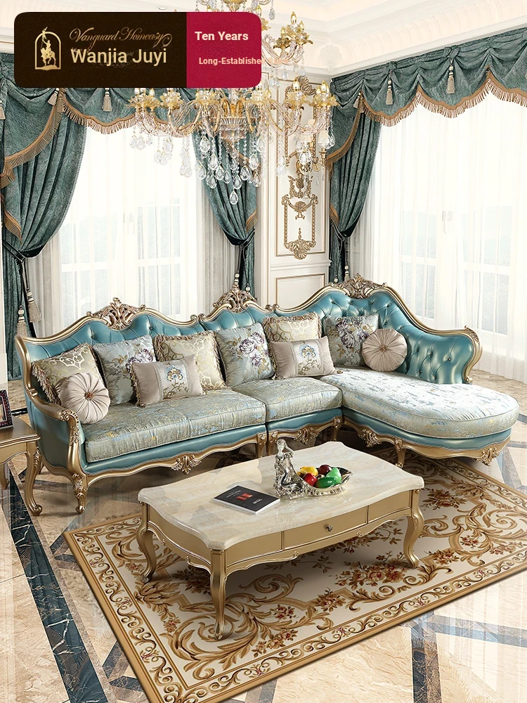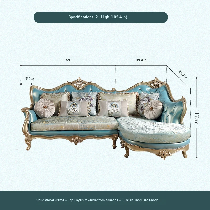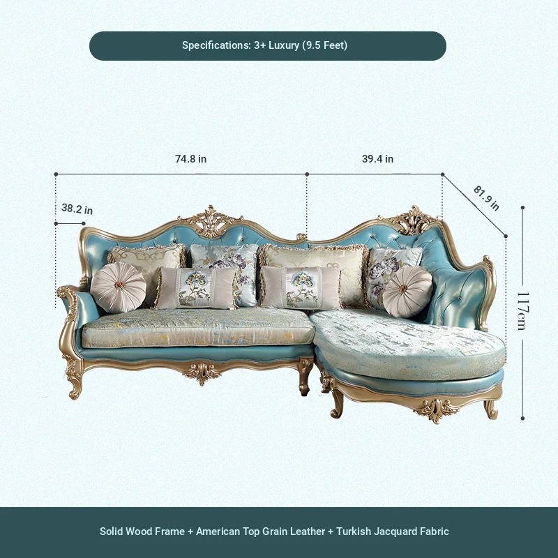 Luxurious Blue European Corner Leather Sofa - Stylish French Inspired Chaise Lounge with Solid Wood Frame for Your Elegant Living Room - Modern Minimalist Design