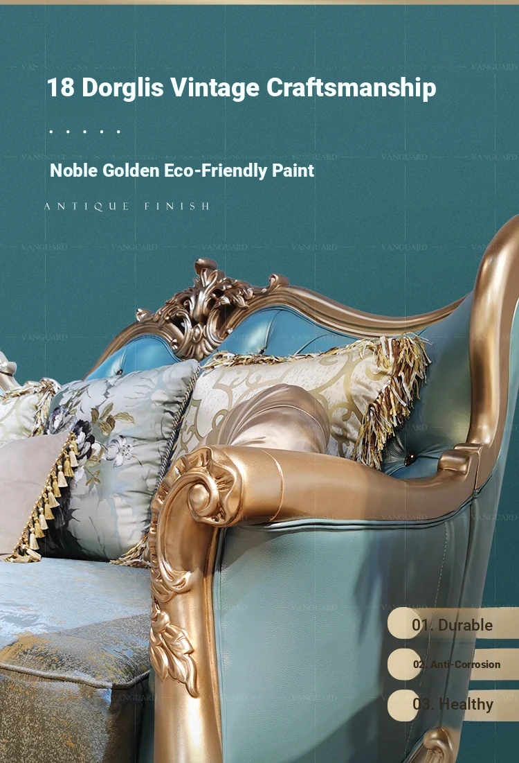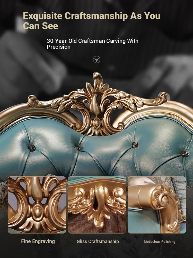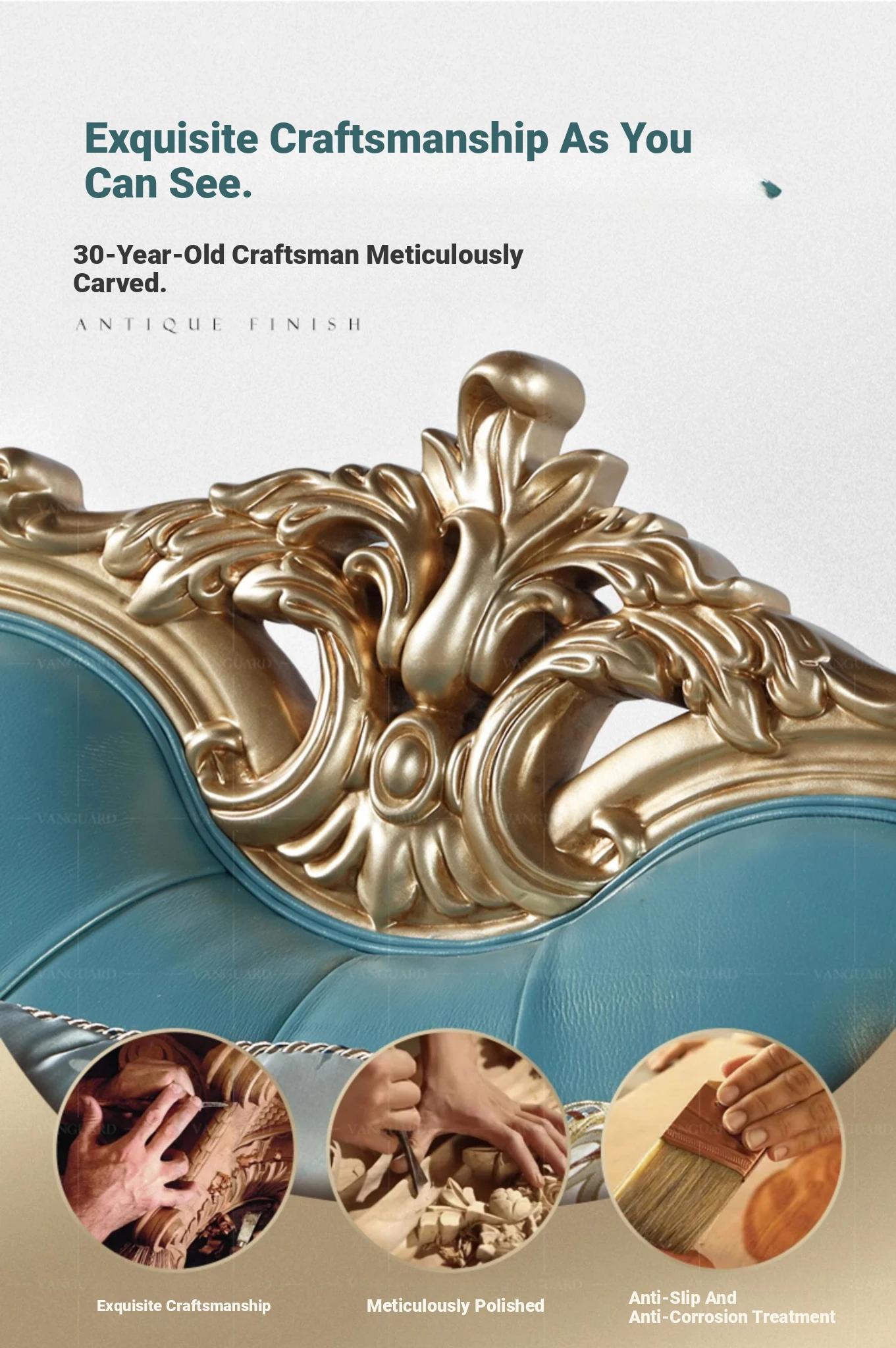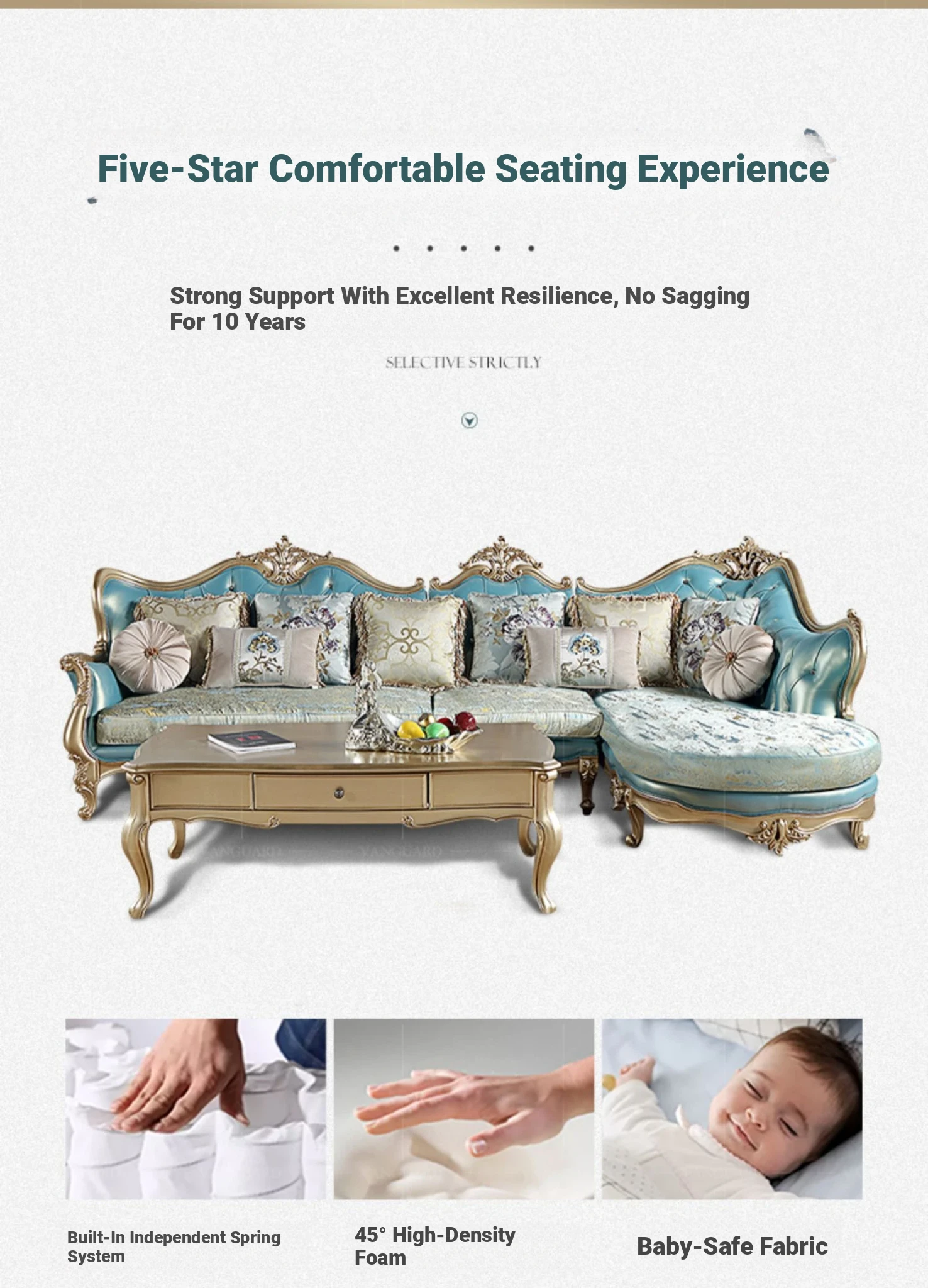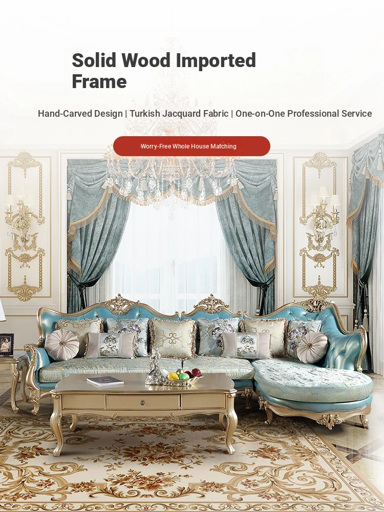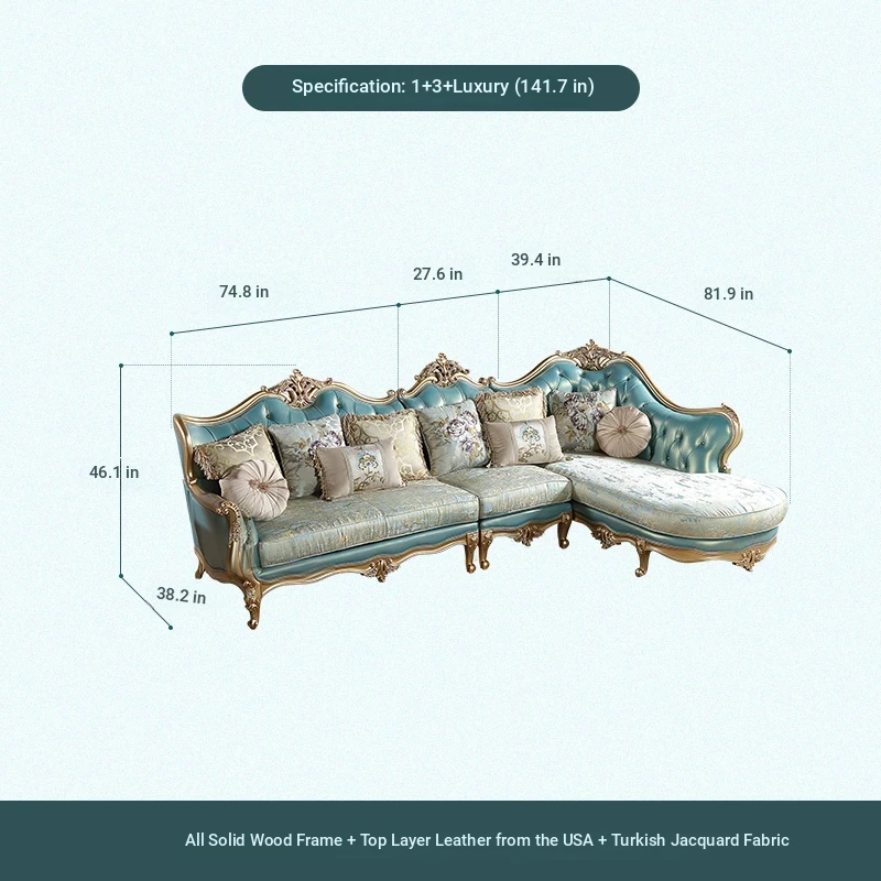 Luxurious Blue European Corner Leather Sofa - Stylish French Inspired Chaise Lounge with Solid Wood Frame for Your Elegant Living Room - Modern Minimalist Design