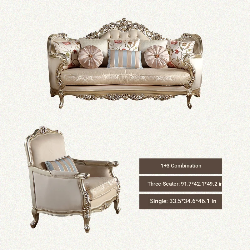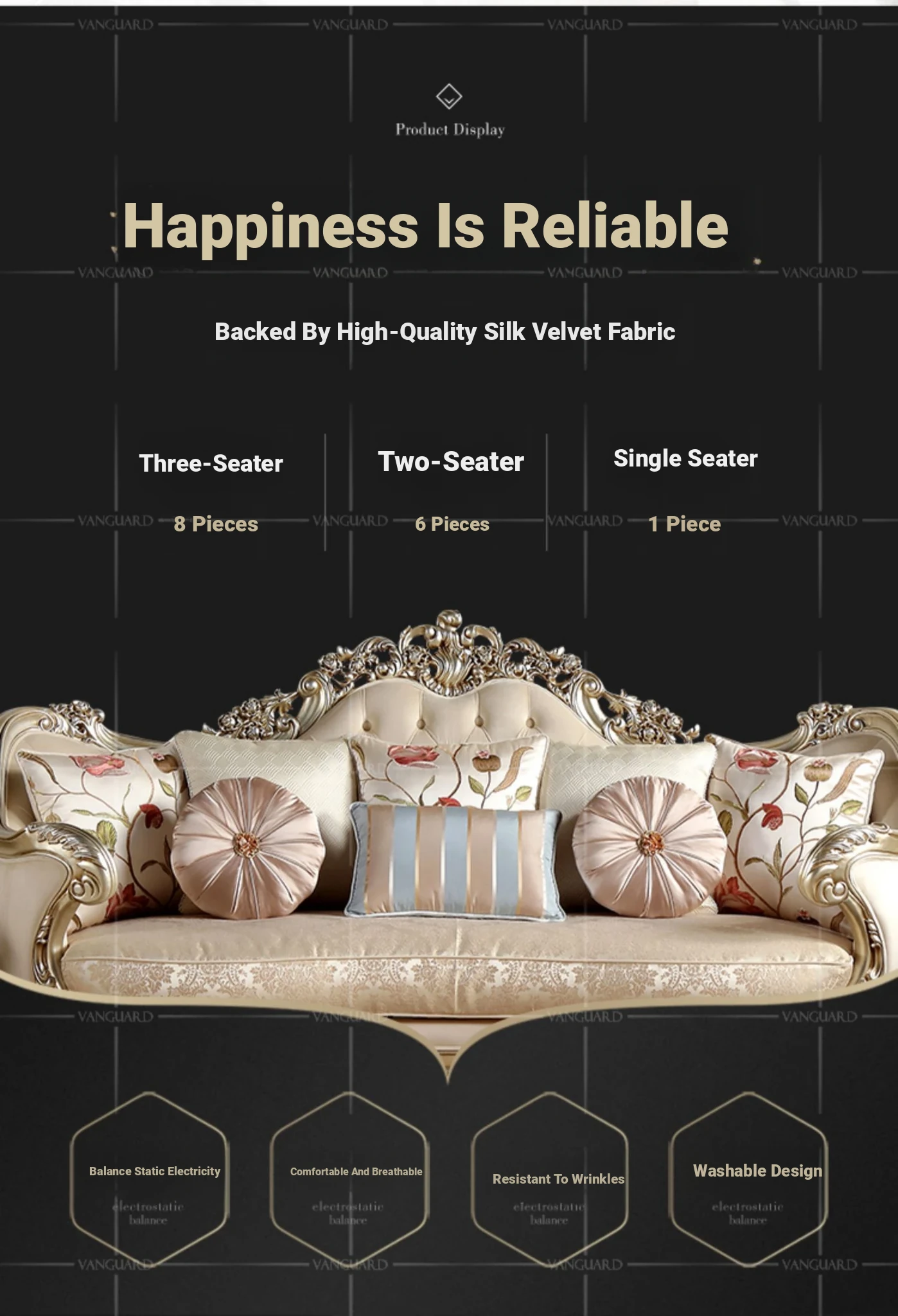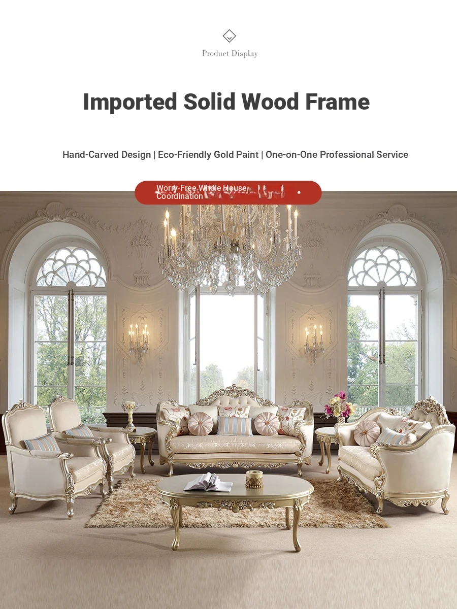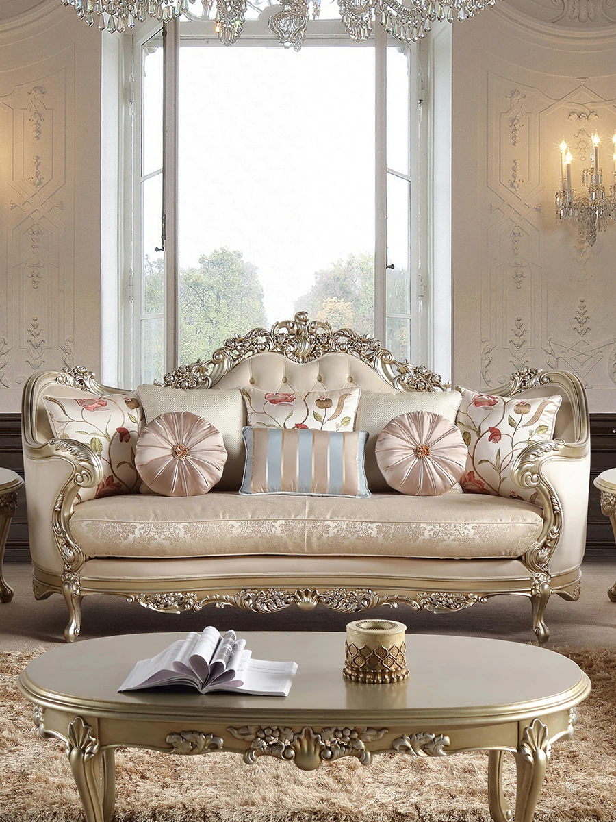 Luxurious European Fabric Sofa Set - Elegant Minimalist Design for Small Living Rooms, Perfect for High-End Lounges and French Palace Style, Crafted from Solid Wood for Ultimate Comfort and Durability.