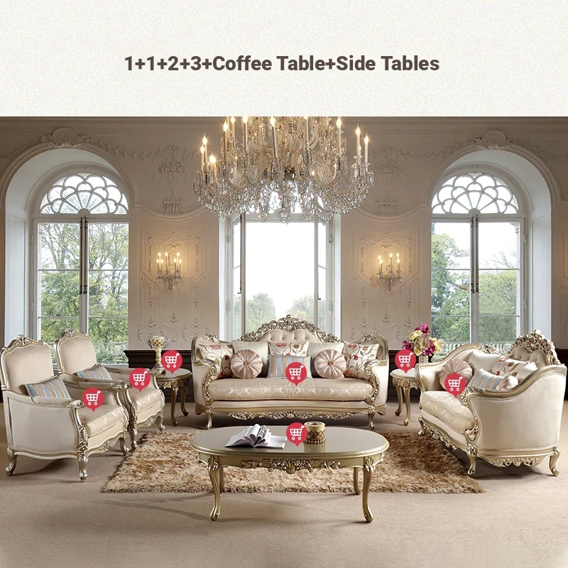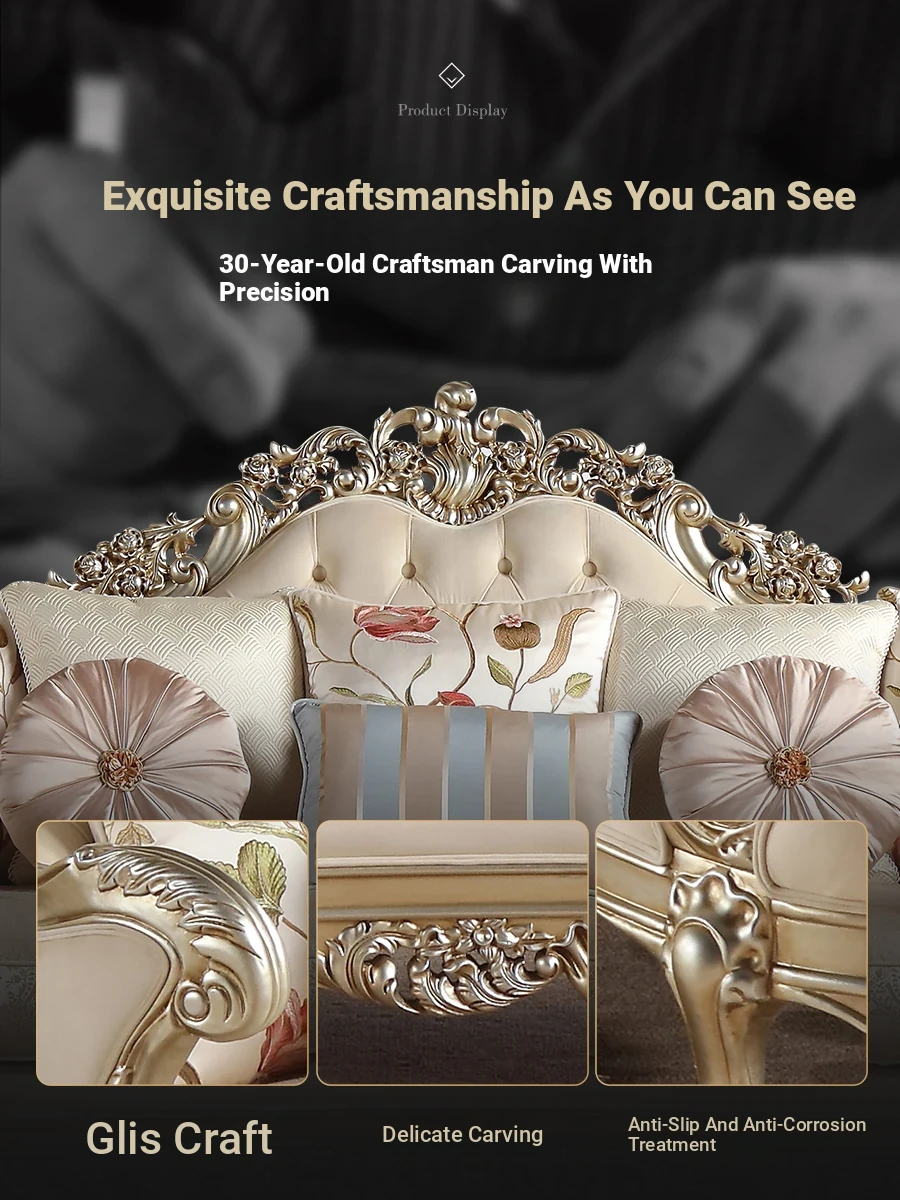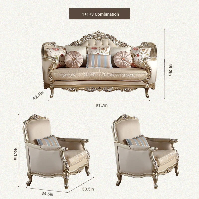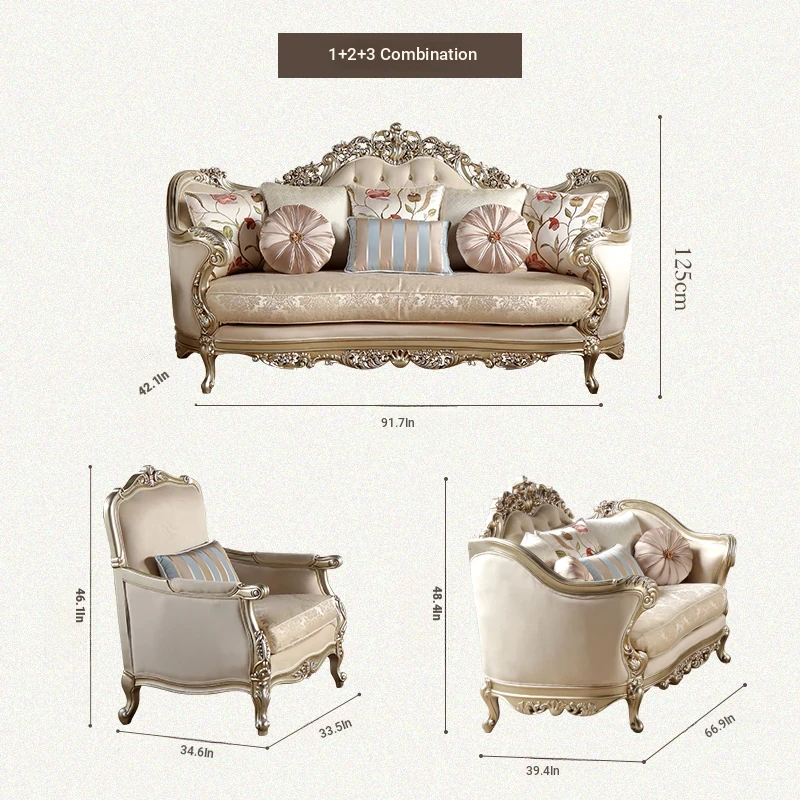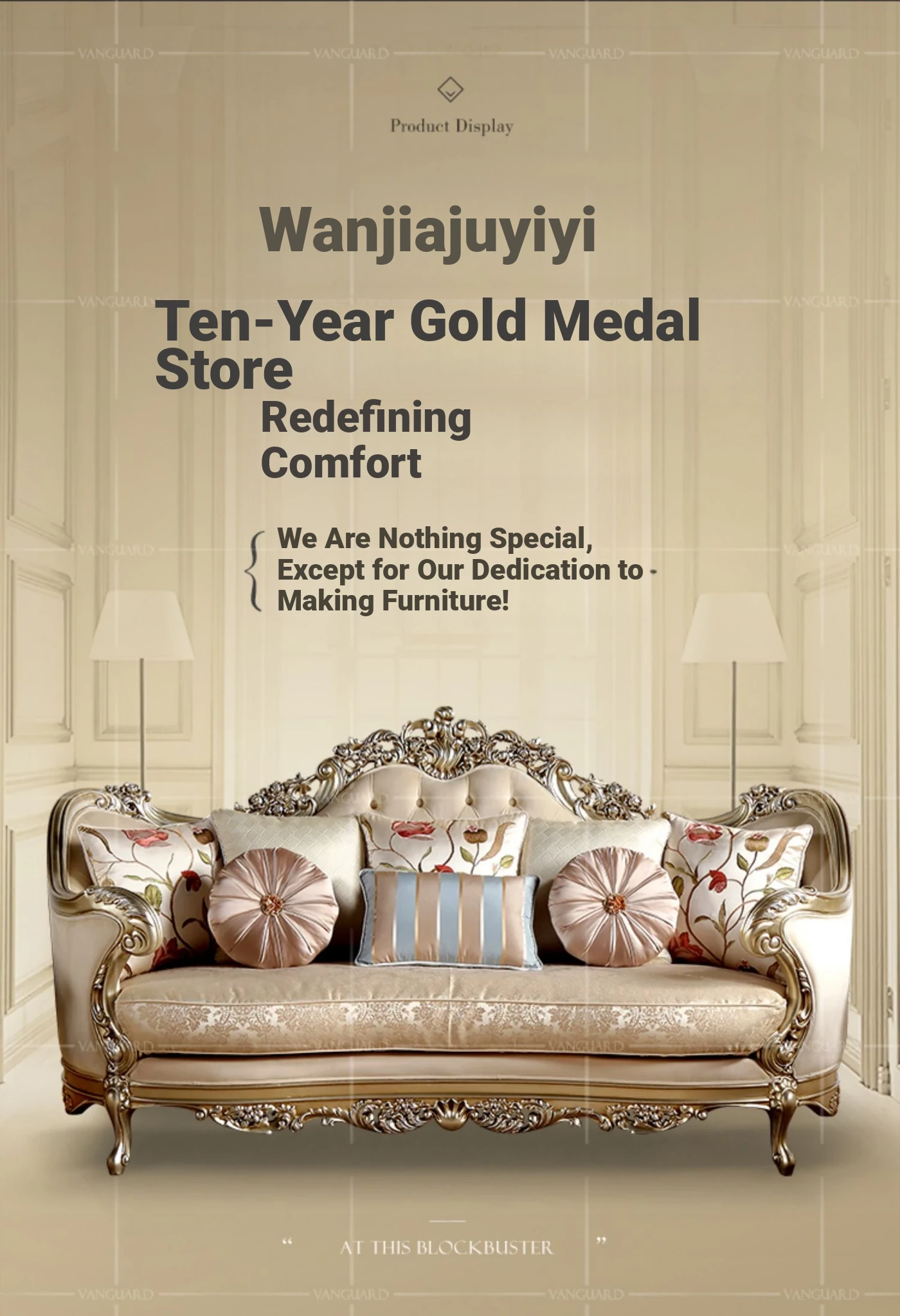 Luxurious European Fabric Sofa Set - Elegant Minimalist Design for Small Living Rooms, Perfect for High-End Lounges and French Palace Style, Crafted from Solid Wood for Ultimate Comfort and Durability.