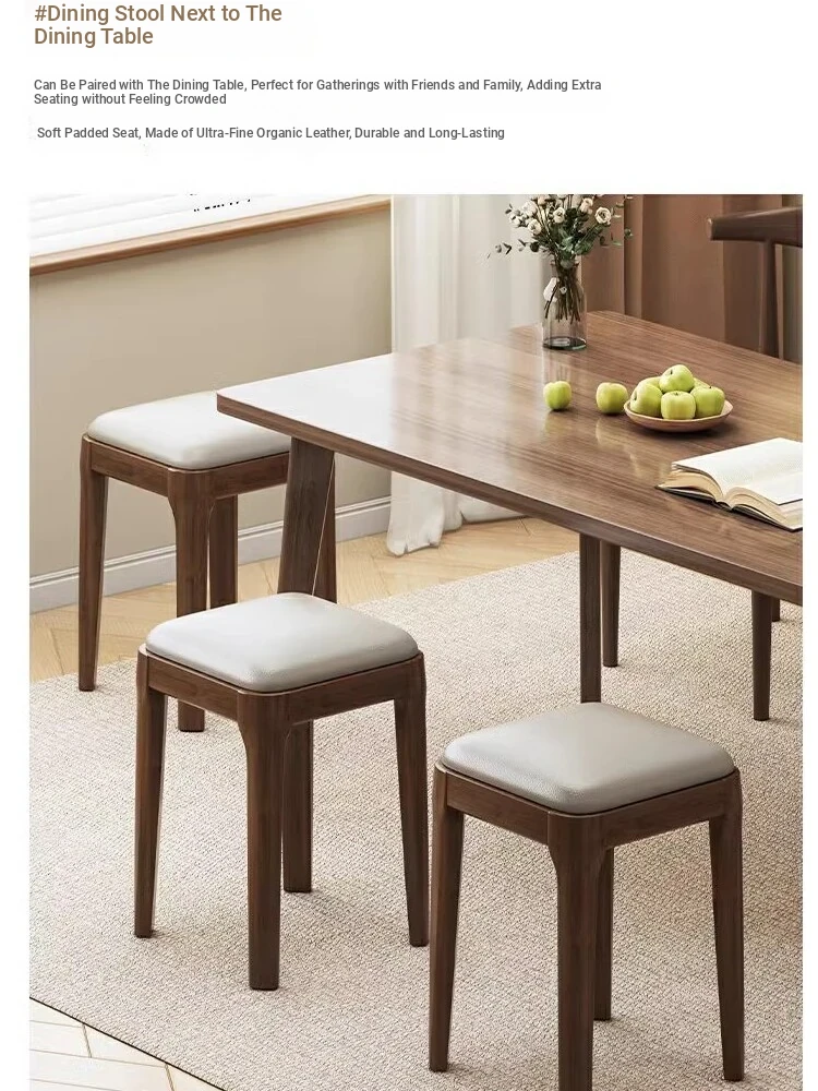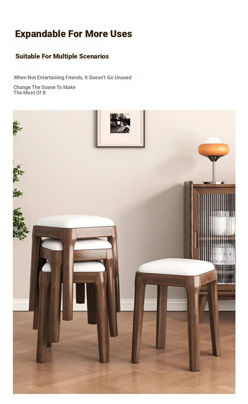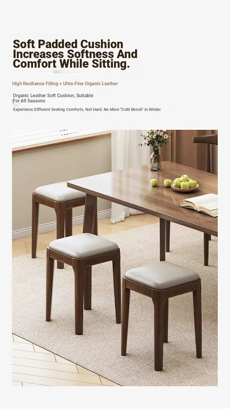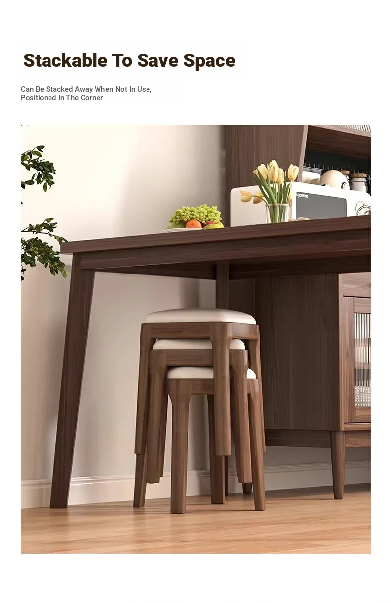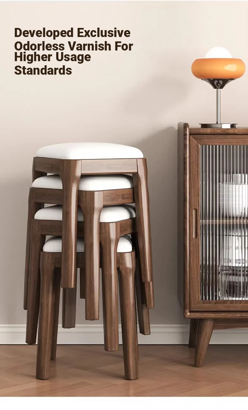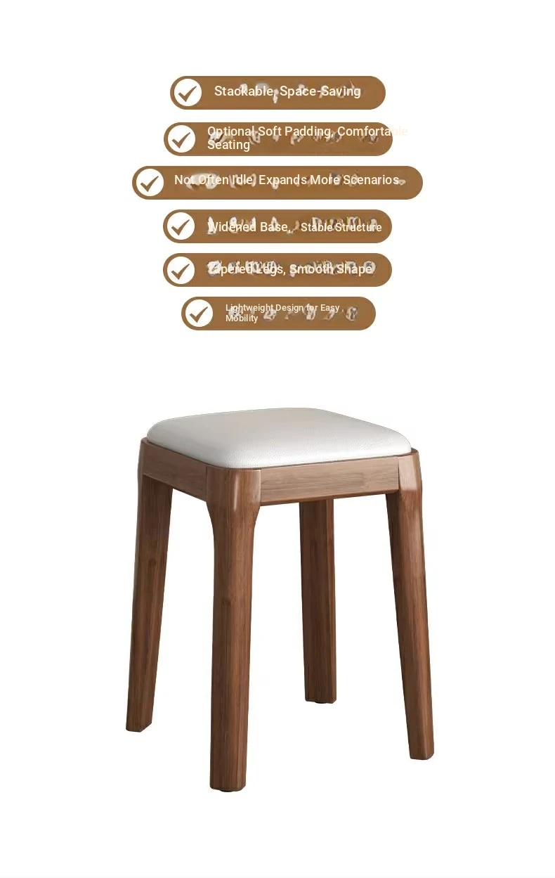 Modern Solid Wood Stools - Stackable, Simple & Stylish for Home Use, Ideal for Living Room & Dining Table, Comfortable Padded Small Round and Low Square Stools