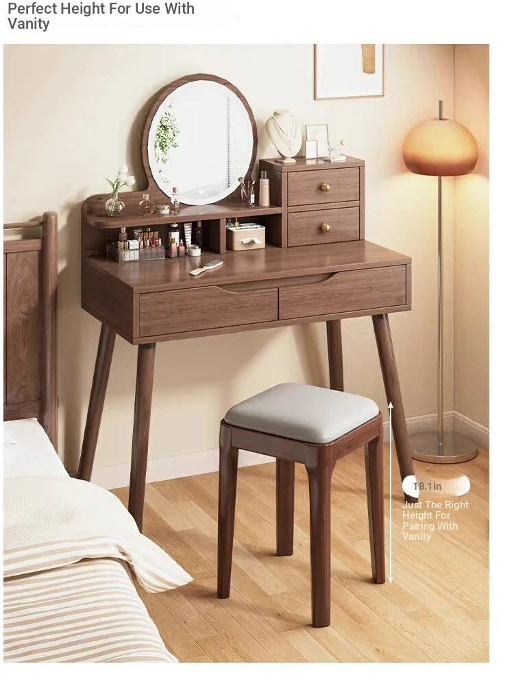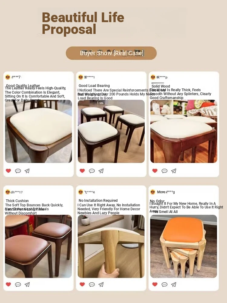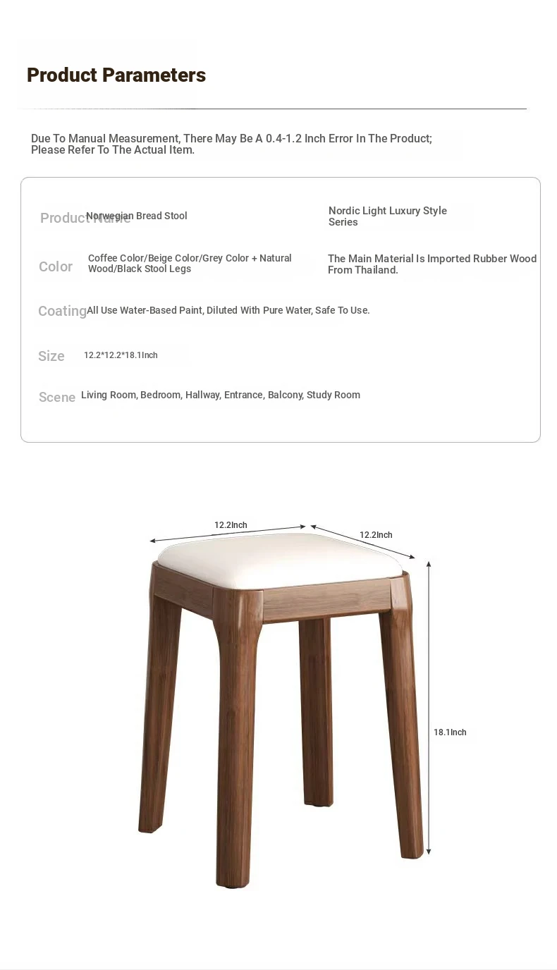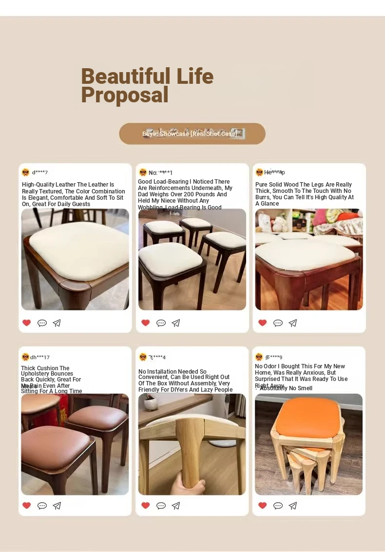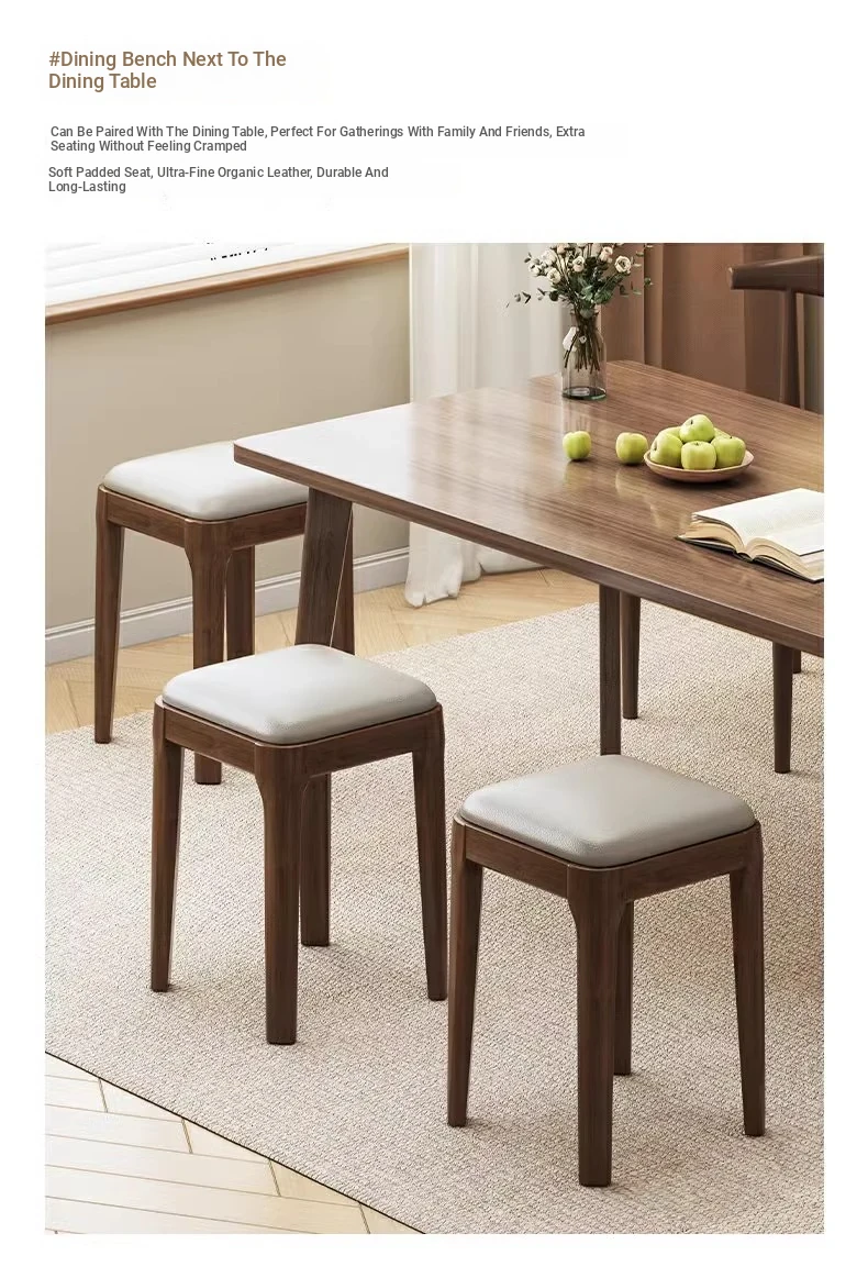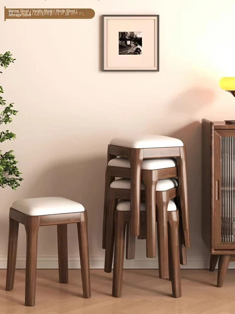 Modern Solid Wood Stools - Stackable, Simple & Stylish for Home Use, Ideal for Living Room & Dining Table, Comfortable Padded Small Round and Low Square Stools