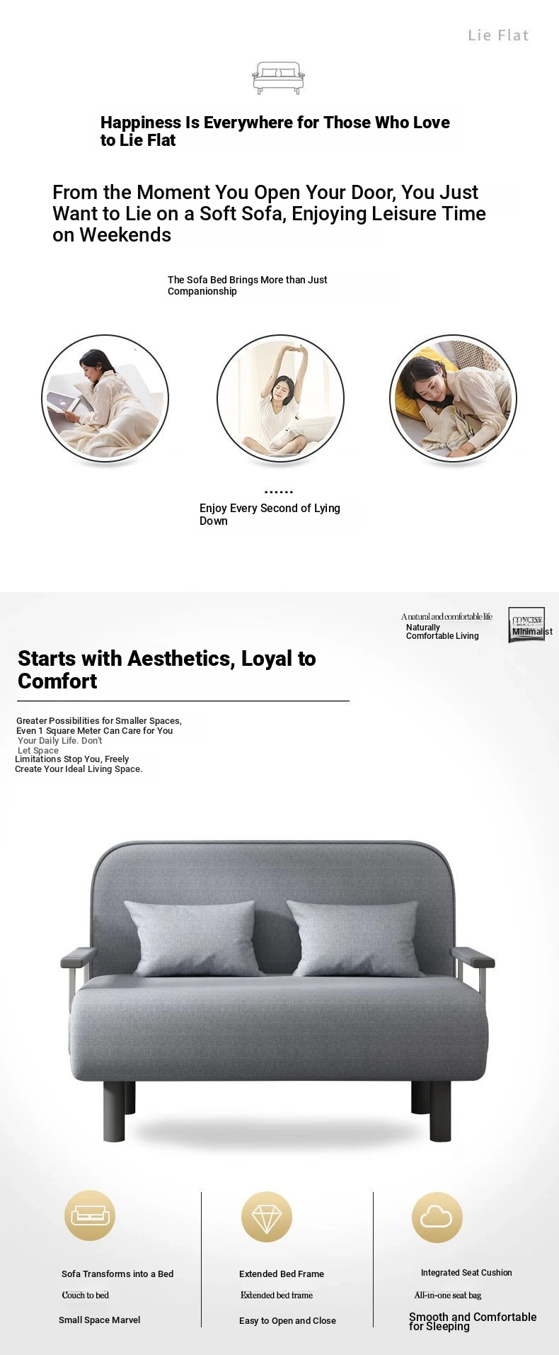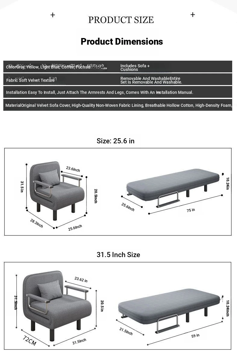 Multi-Functional Foldable Sofa Bed for Small Spaces - Stylish and Space-Saving Design for Living Rooms and Studies, Perfect for Trendy Urban Dwellers