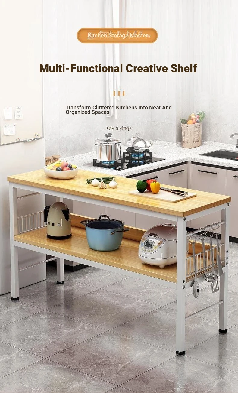 Multi-Functional Kitchen Table and Storage Rack - Compact Floor Stand for Home Use, Ideal for Chopping, Microwave, and Organizing Supplies. Perfect Space-Saving Solution!