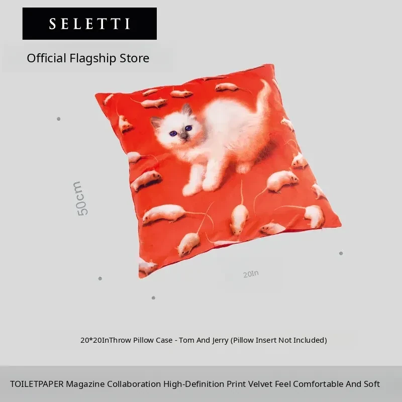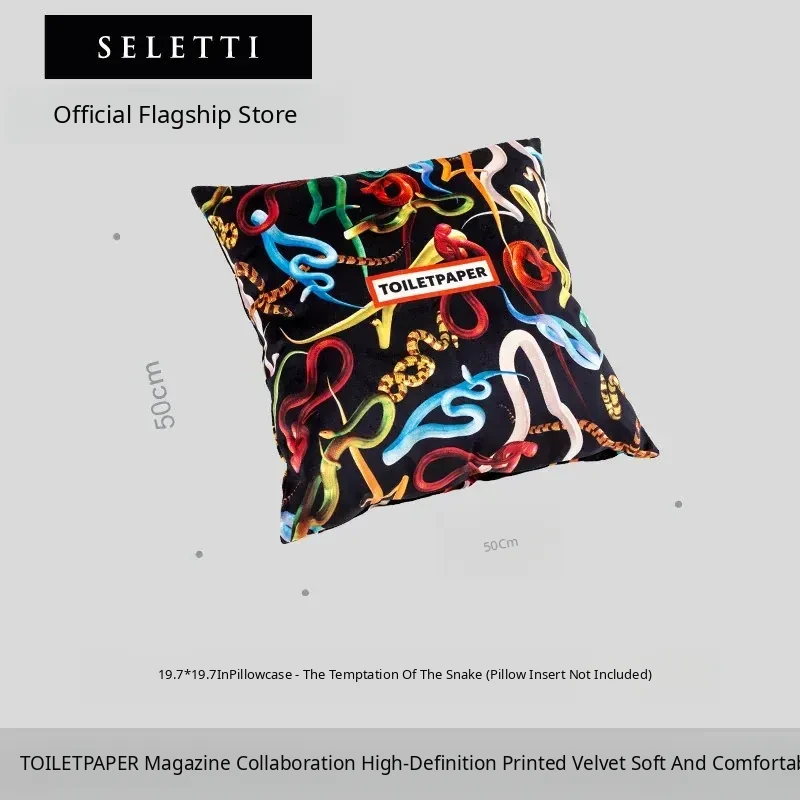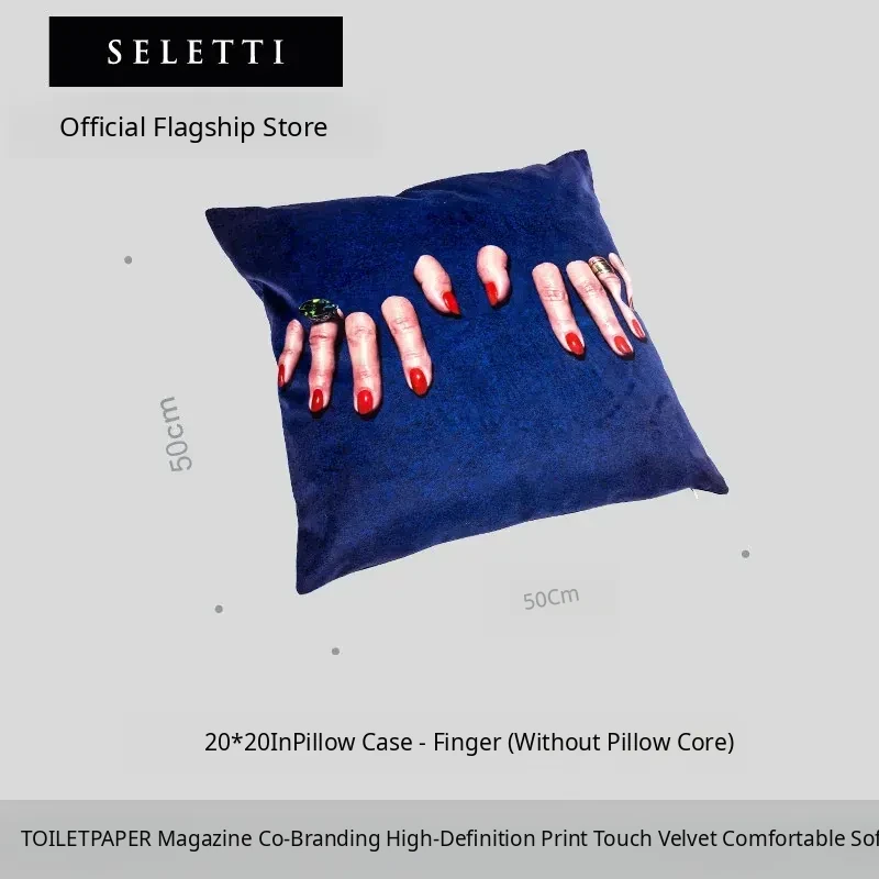Seletti Decorative Velvet Throw Pillow Cover - Stylish Sofa Cushion Case for Artistic Home Décor - Perfect for Living Room and Bedroom (Insert Not Included)