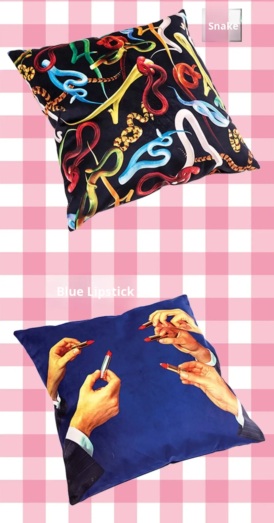 Seletti Lipstick Luxury Pillowcase - Artistic Lip-Shaped Throw Pillow Cover for Creative Home Décor, Unique Accent Cushion for Living Room