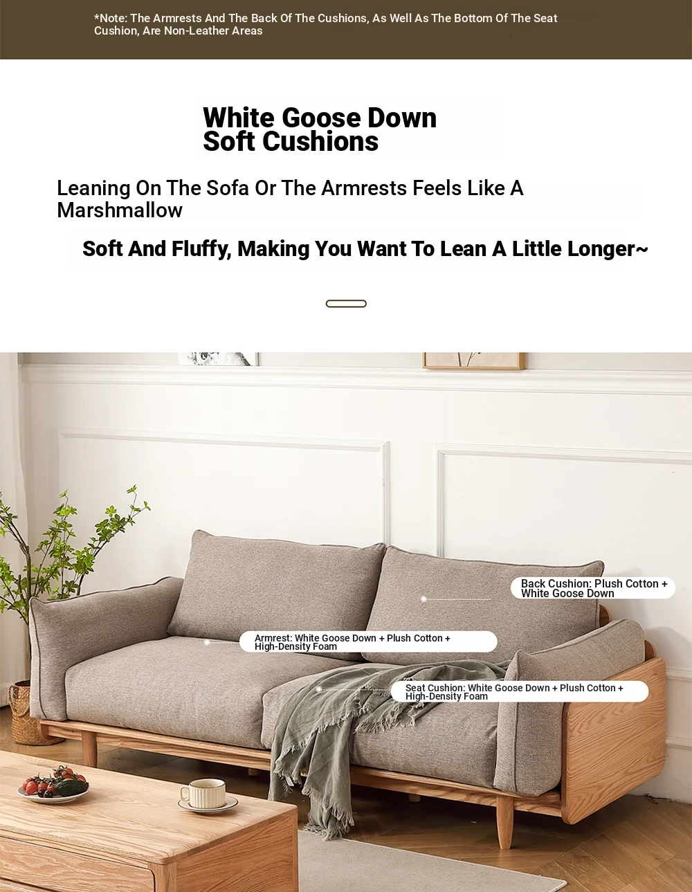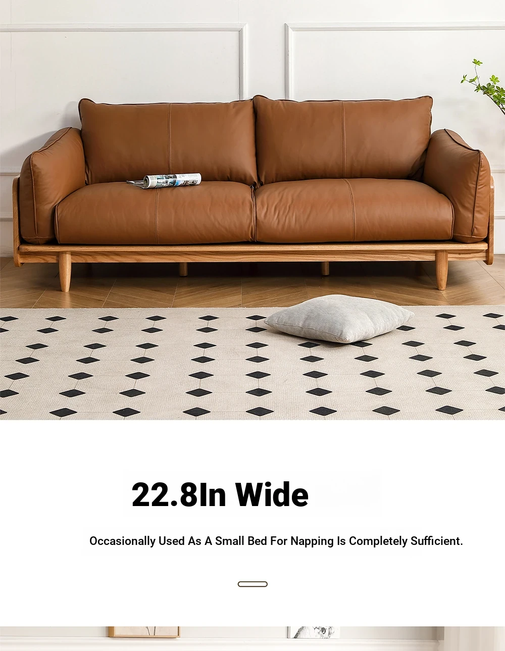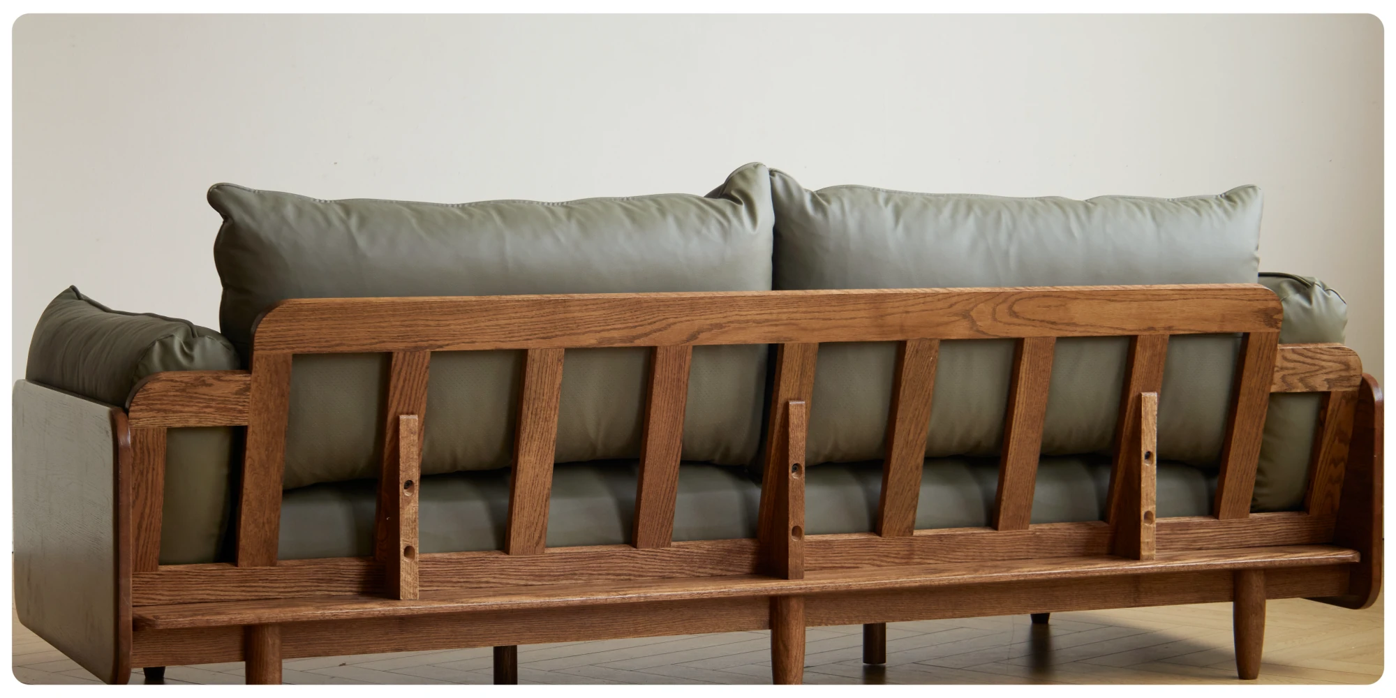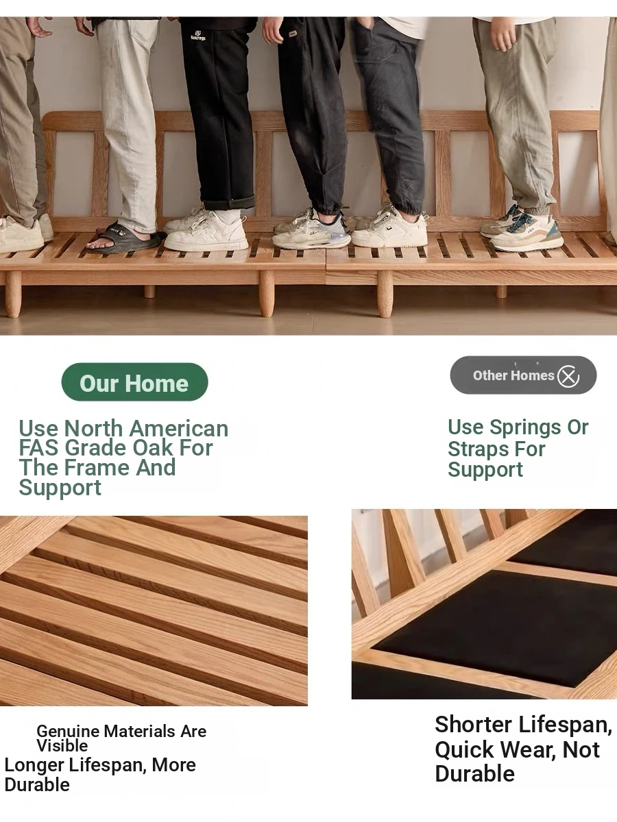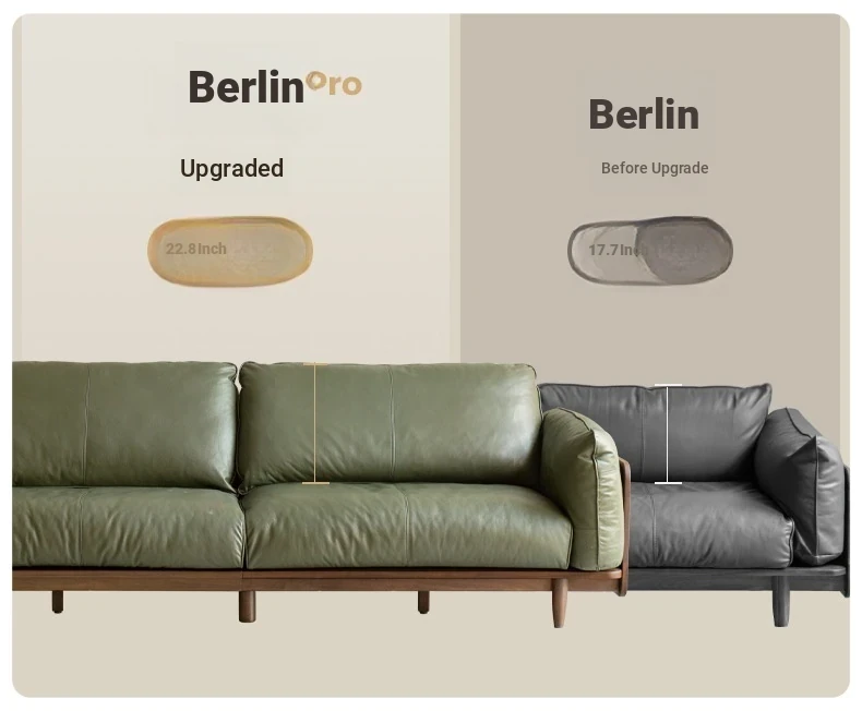 Solid Wood Sofa - Red Oak Real Leather Sofa for Nordic Living Room, Home Use, Original Wood Straight Line Upholstered Sofa with High Backrest - Perfect Blend of Comfort and Style!