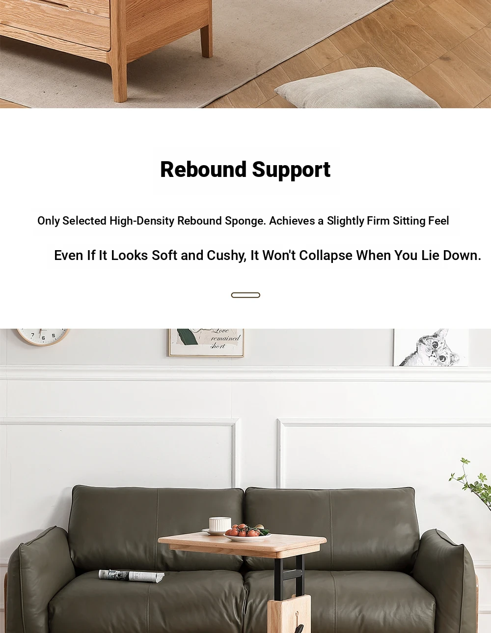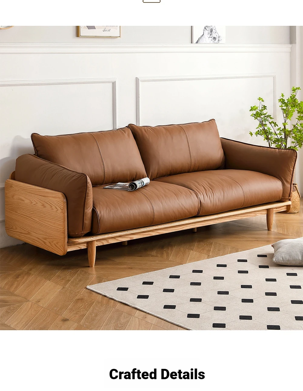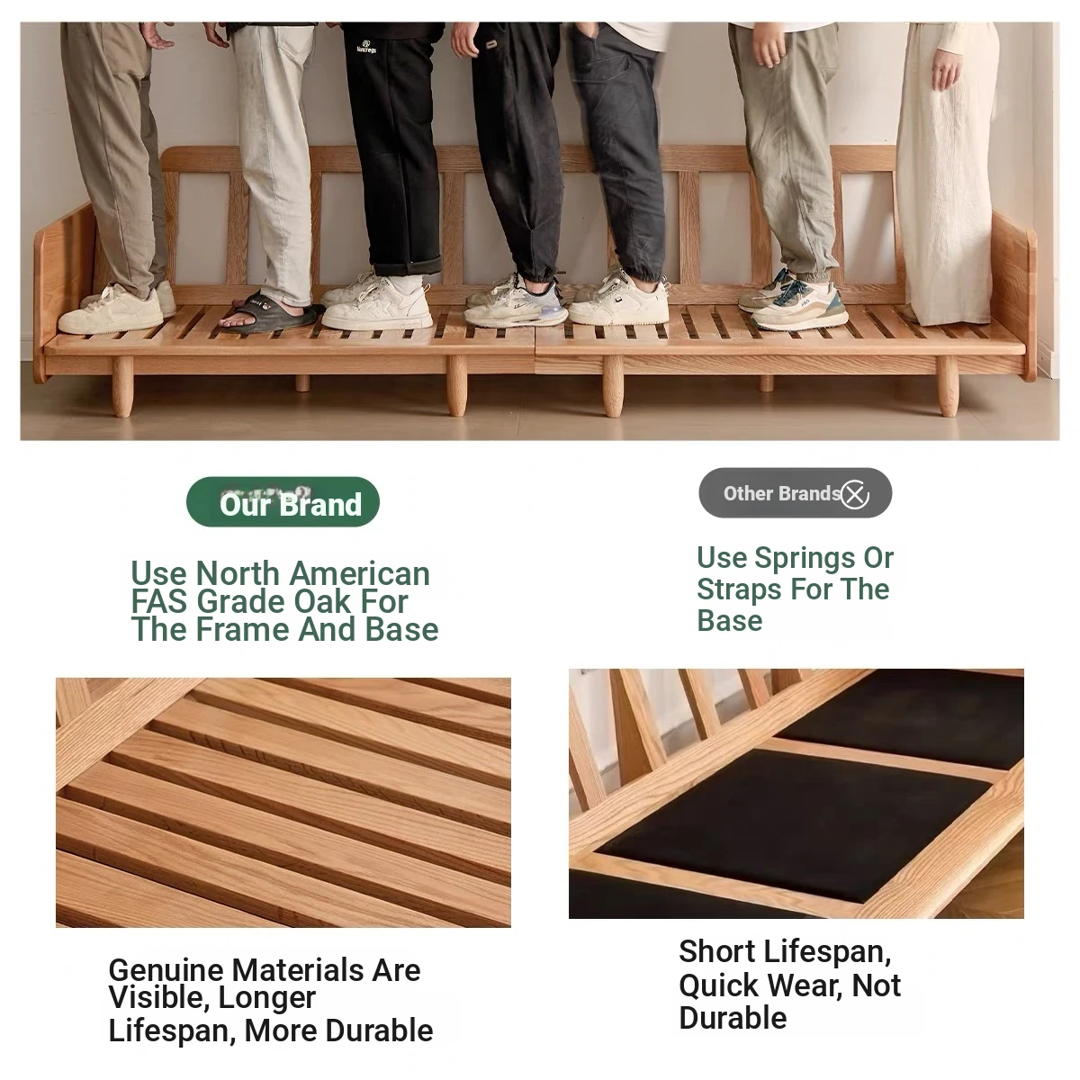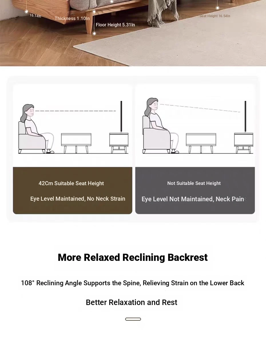 Solid Wood Sofa - Red Oak Real Leather Sofa for Nordic Living Room, Home Use, Original Wood Straight Line Upholstered Sofa with High Backrest - Perfect Blend of Comfort and Style!