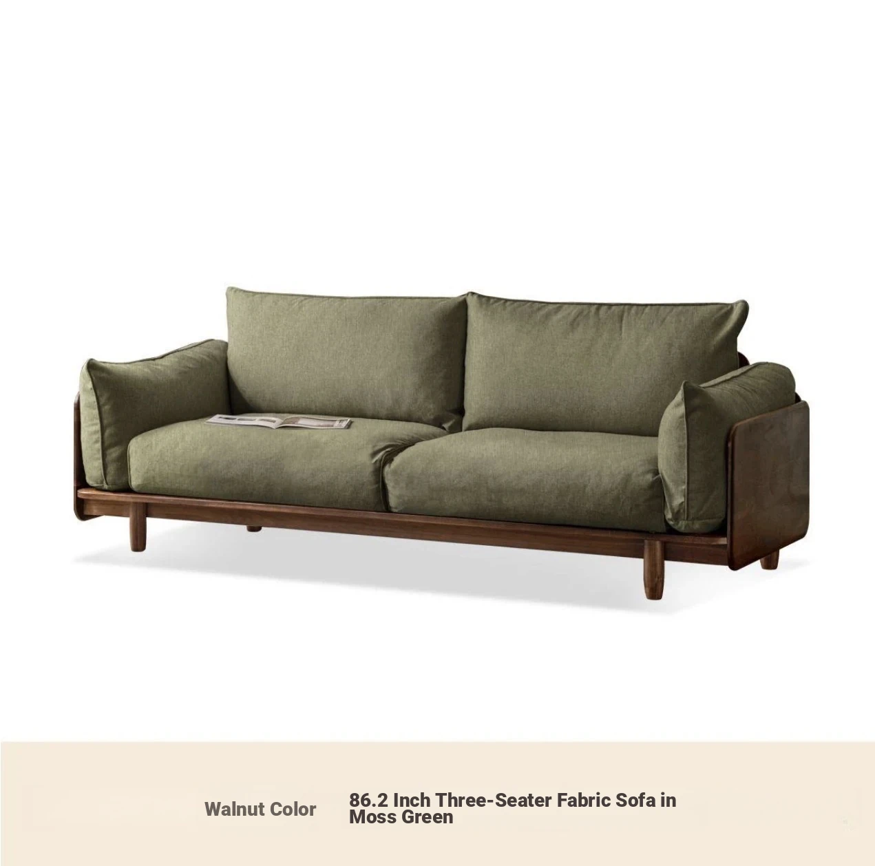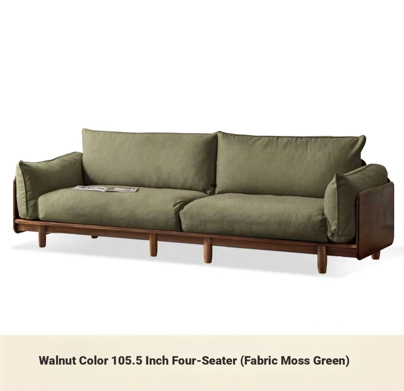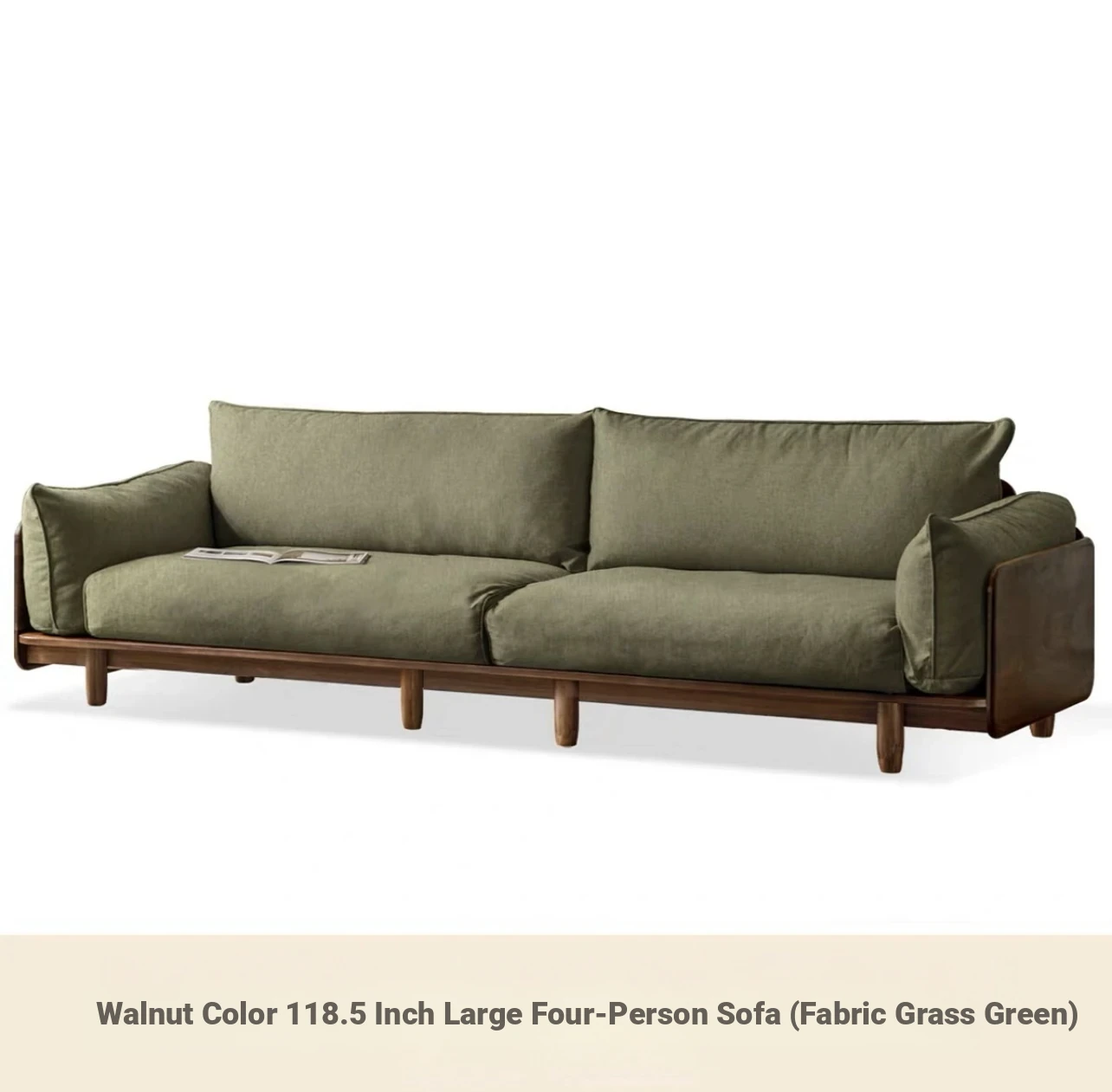 Highlight upgraded Oak (walnut color) 105.51 in four-person sofa (fabric grass moss green)