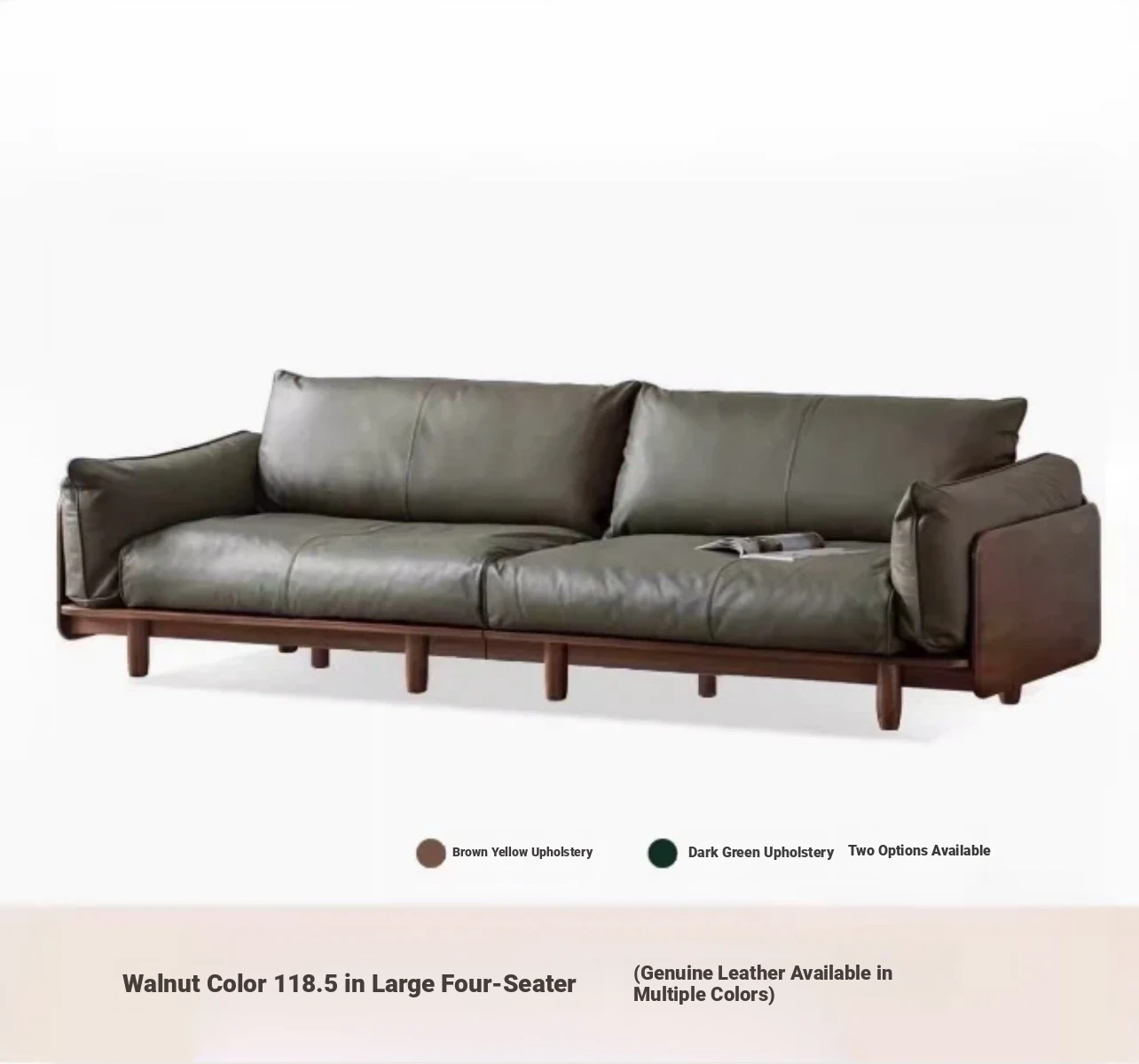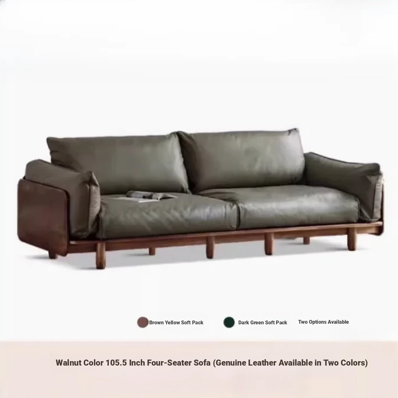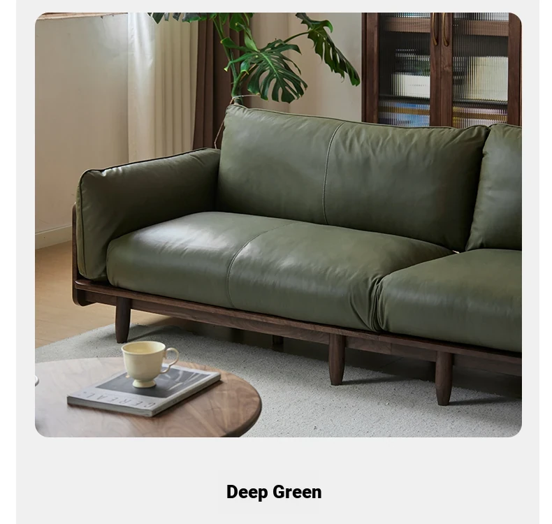 Highlight upgraded Oak (walnut color) 105.51 in four-person sofa (fabric grass moss green)