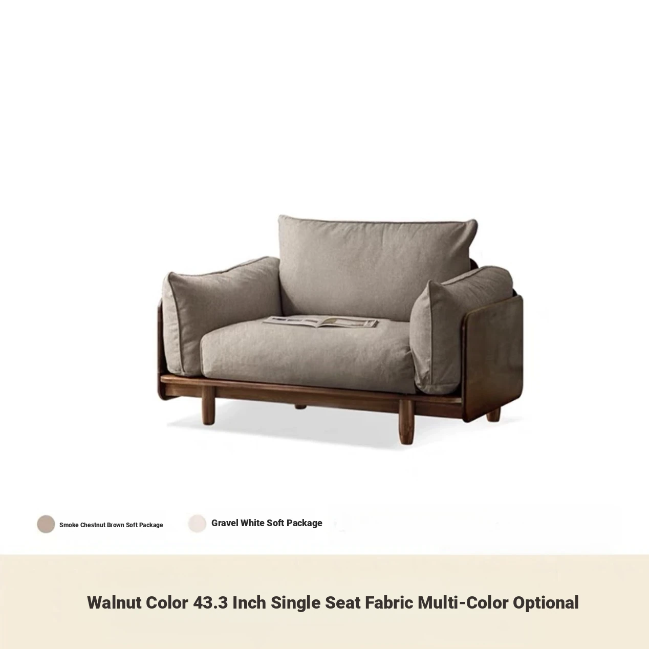 Upgraded Oak (Walnut) 43.31 in Single Seat Sofa (Fabric Multicolor Optional)
