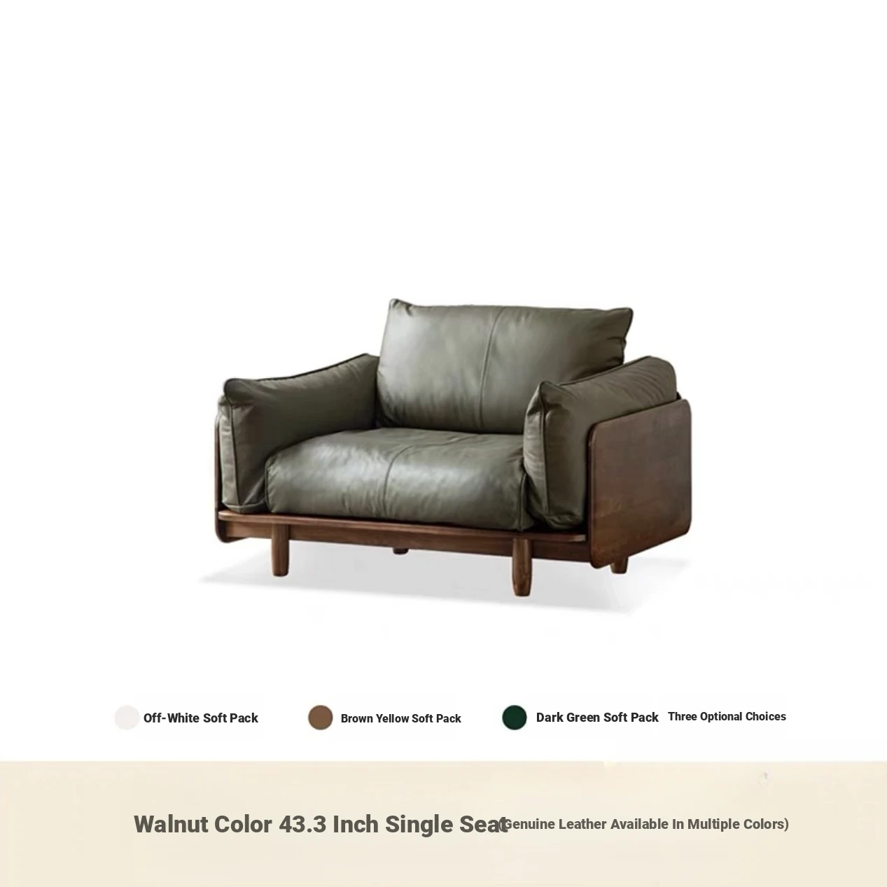 Upgraded Oak (Walnut) 43.31 in Single Seat Sofa (Leather Multicolor Optional)