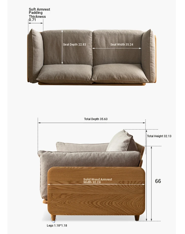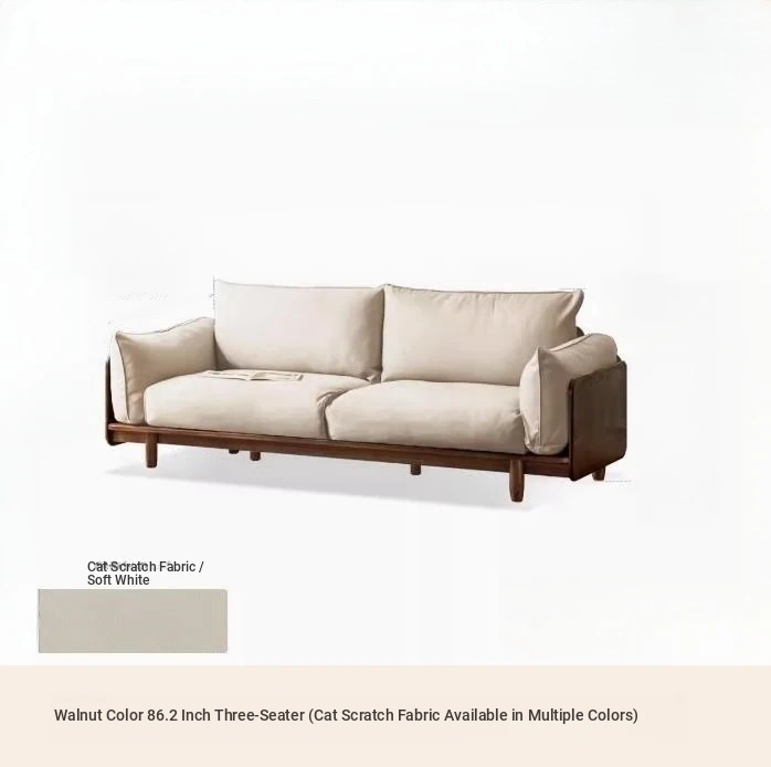 Highlight upgraded Oak (walnut color) 86.22 in three-seat sofa (Cat Claw cloth multi-color optional)