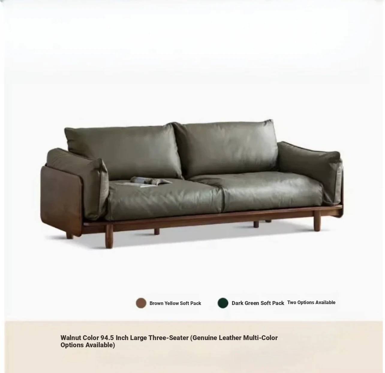 Upgraded Oak (Walnut) 94.49 in Large Three-Seat Sofa (Leather Multicolor Optional)