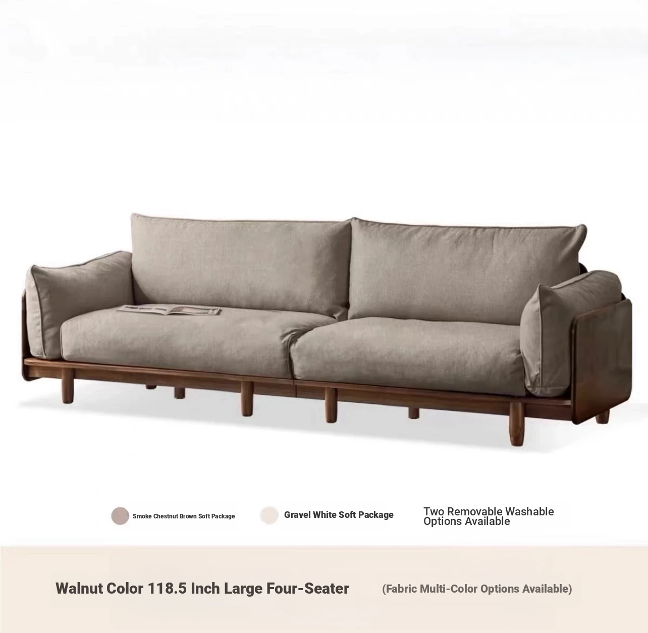 Highlight upgraded Oak (walnut color) 105.51 in four-person sofa (fabric multi-color optional)