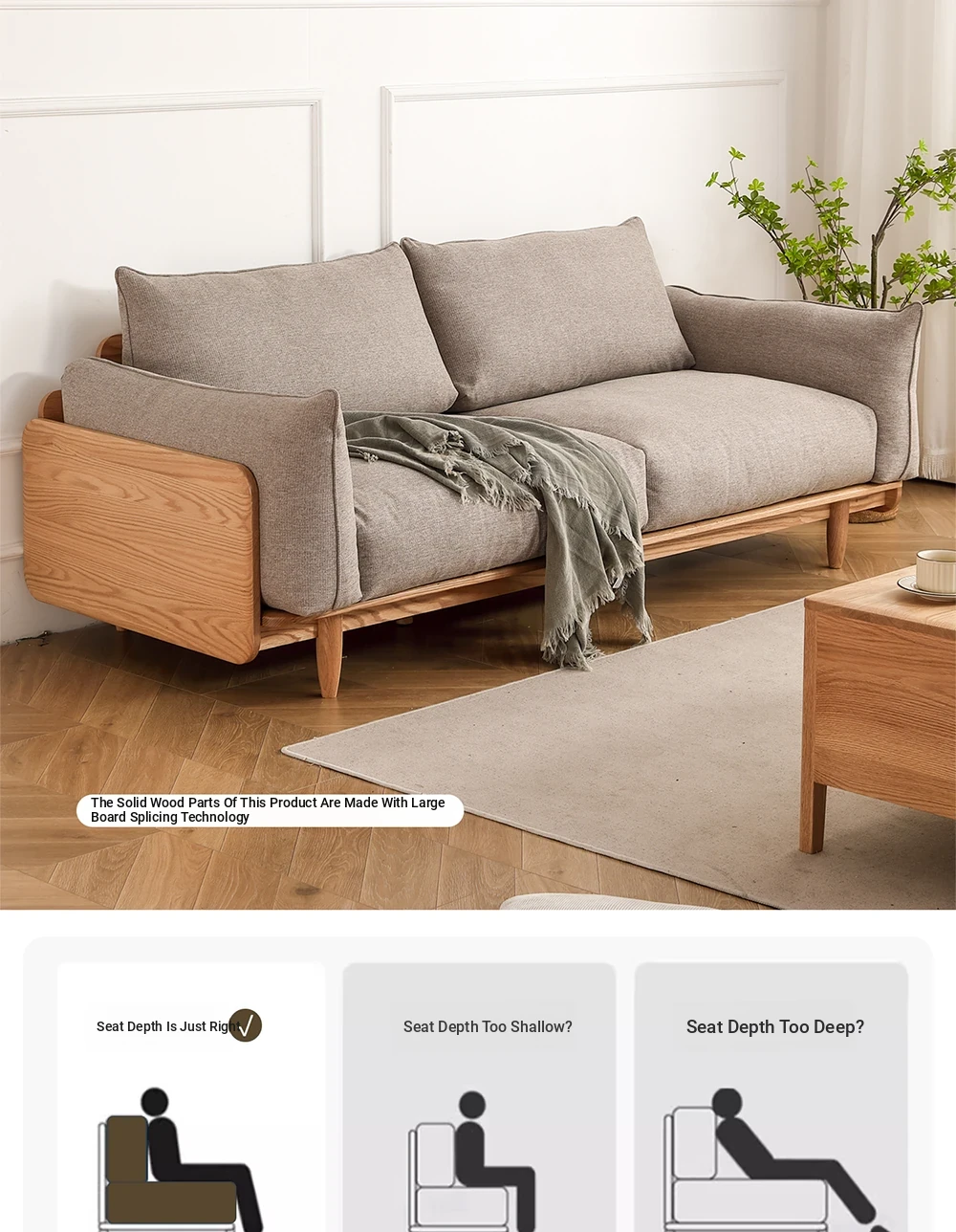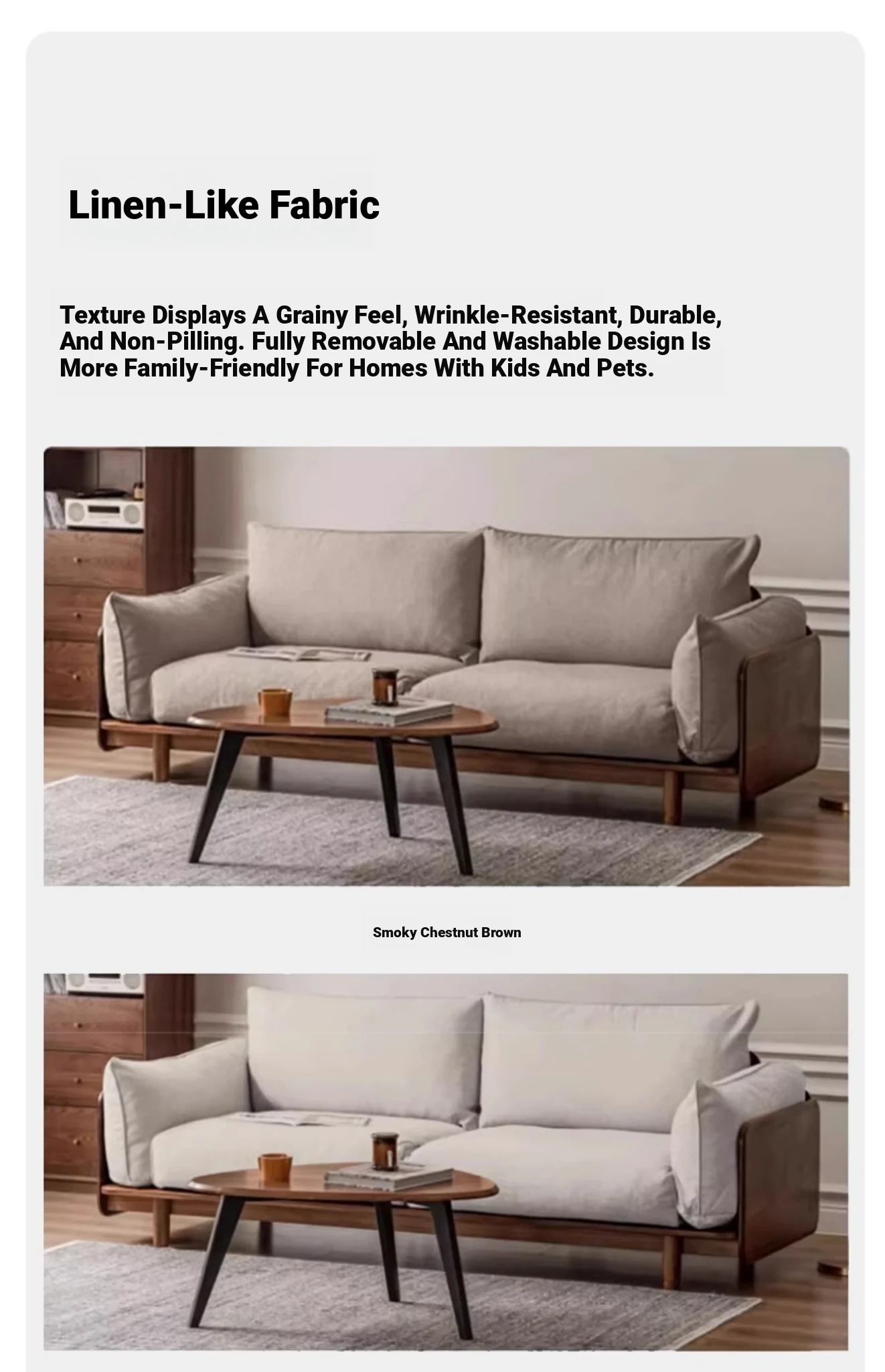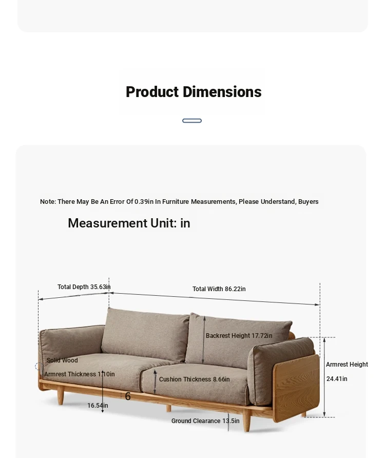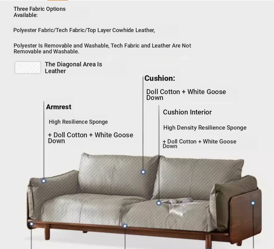 Highlight upgraded Oak (walnut color) 94.49 in large three-person sofa (fabric multi-color optional)