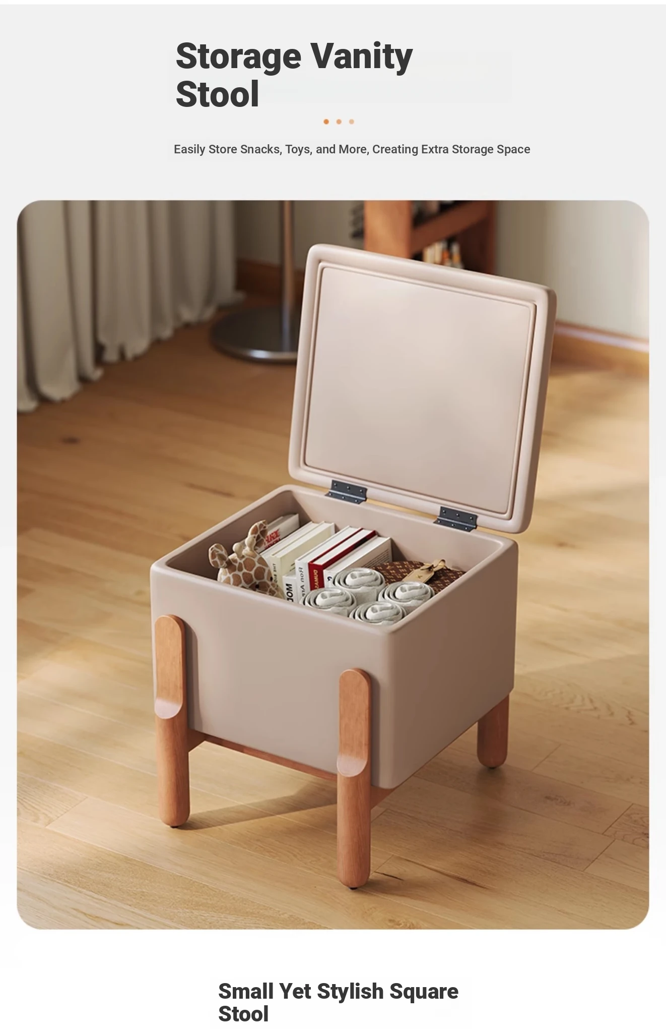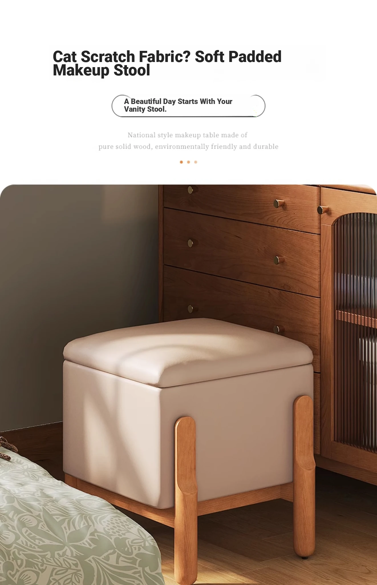 [Chubby/Storage Makeup Stool] Cat scratch cloth on seat/North American cherry wood