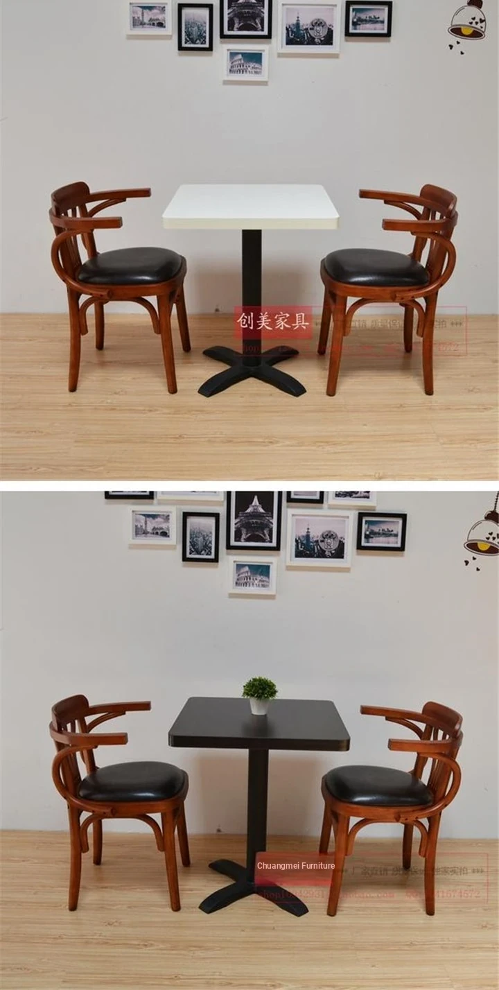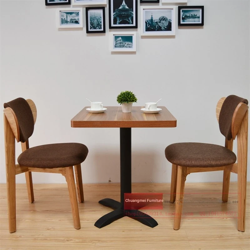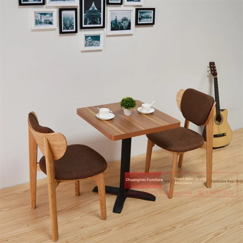 Stylish Iron Square Table for Café and Tea Shops - Perfect for Quick Meals and Casual Meetings with Solid Wood Chairs