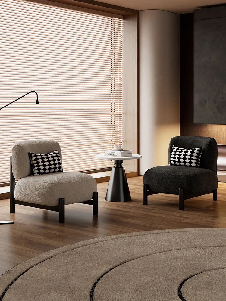 Wabi-Sabi Vintage Style Single Sofa Chair - Creative Lamb Fleece Design, Trendy for Hotels and Guesthouses, Perfect for Living Rooms and Balconies, Ideal for Cozy Conversations and Relaxation.
