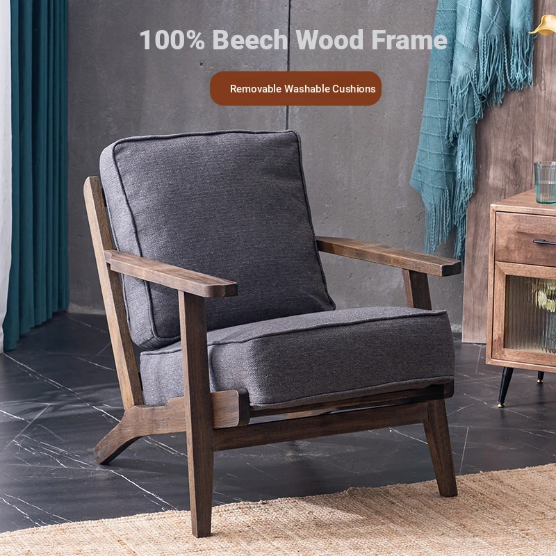 Scandinavian Vintage Solid Wood Armchair - Rustic American Country Single Sofa for Hotels, B&Bs, and Meetings