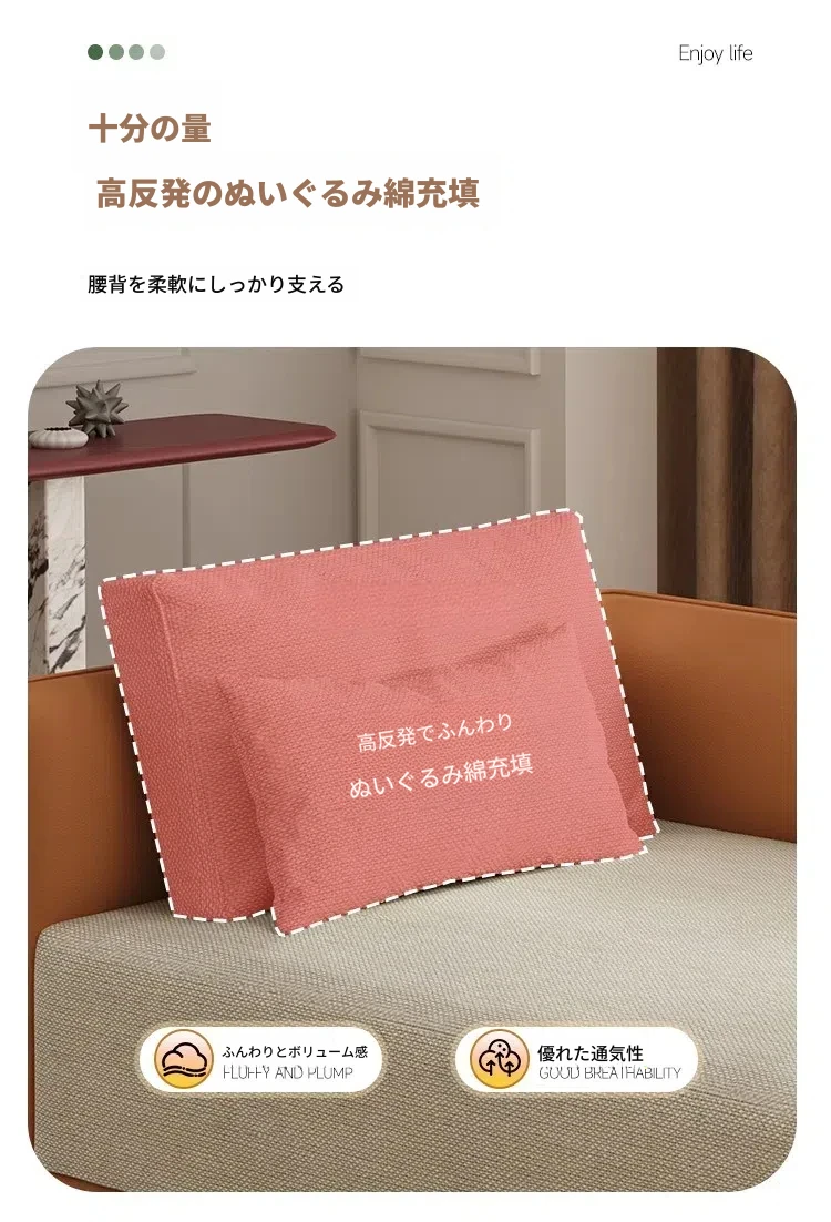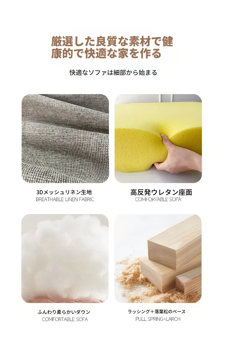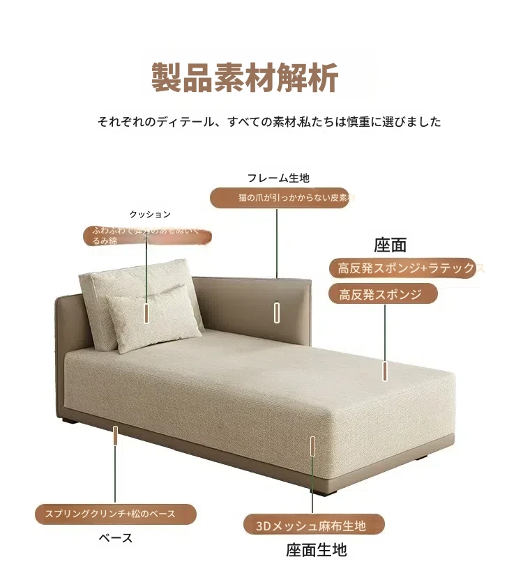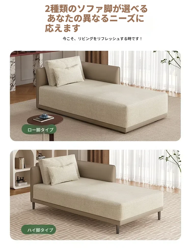 180*70*70cm ブラウンレザー+アイボリーコットンリネン