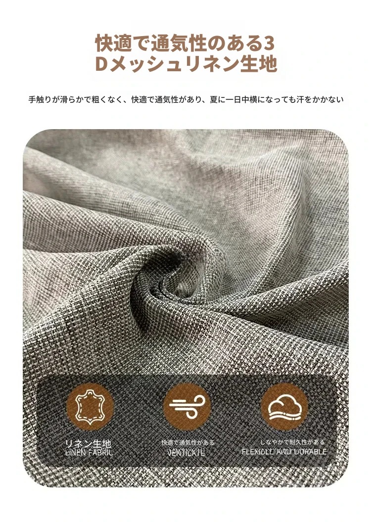 140*70*70cm ブラウンレザー+アイボリーコットンリネン