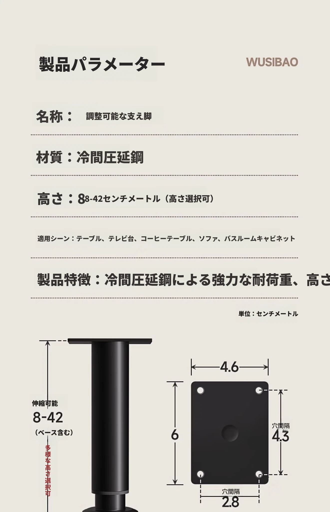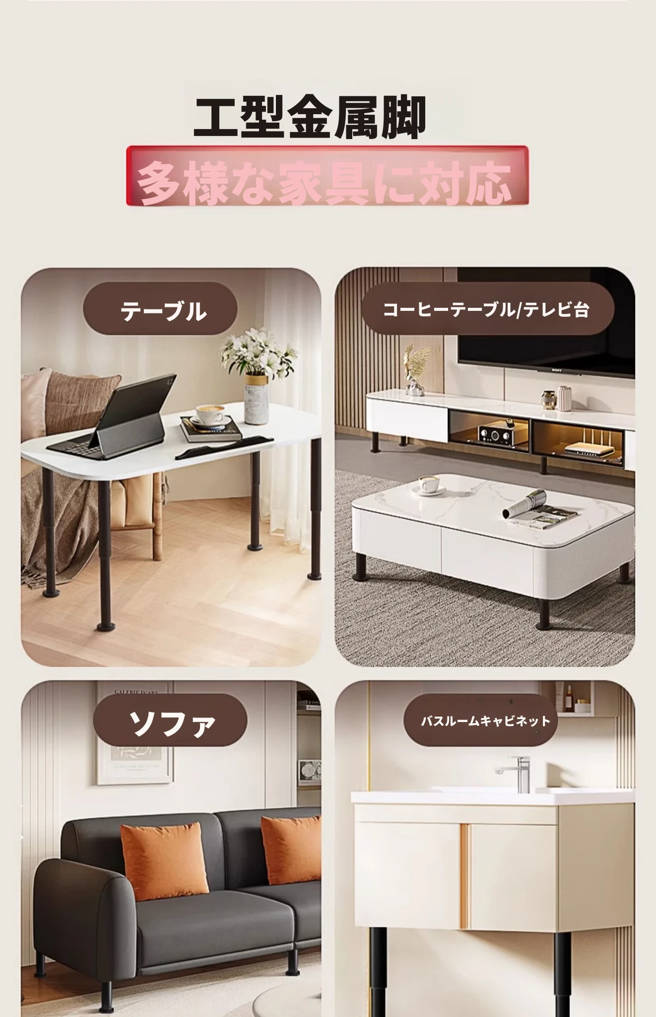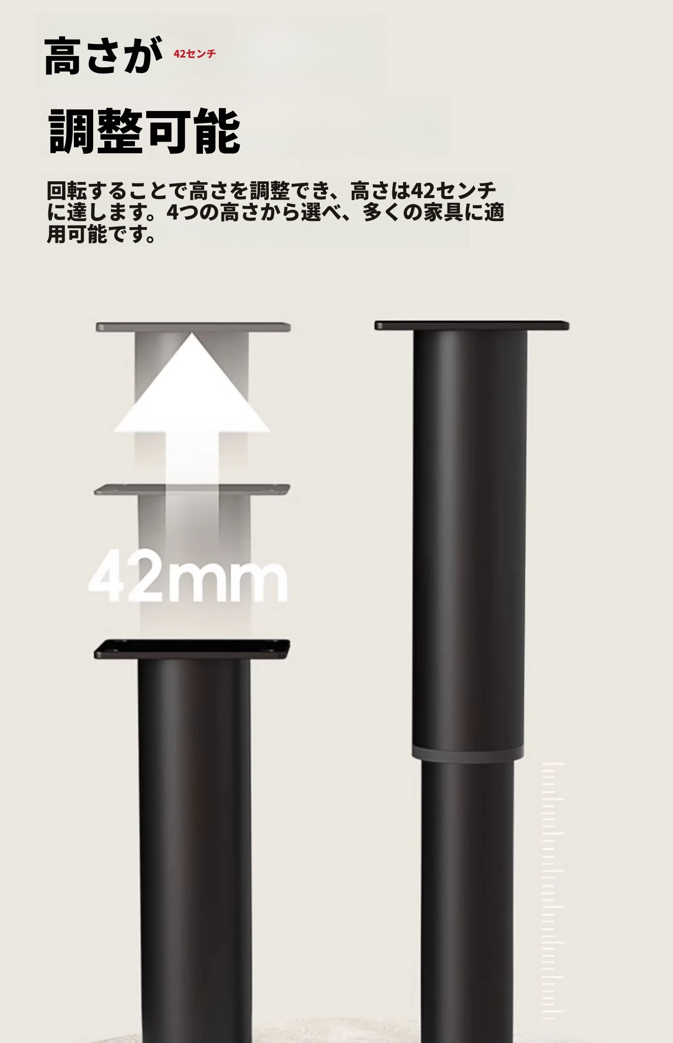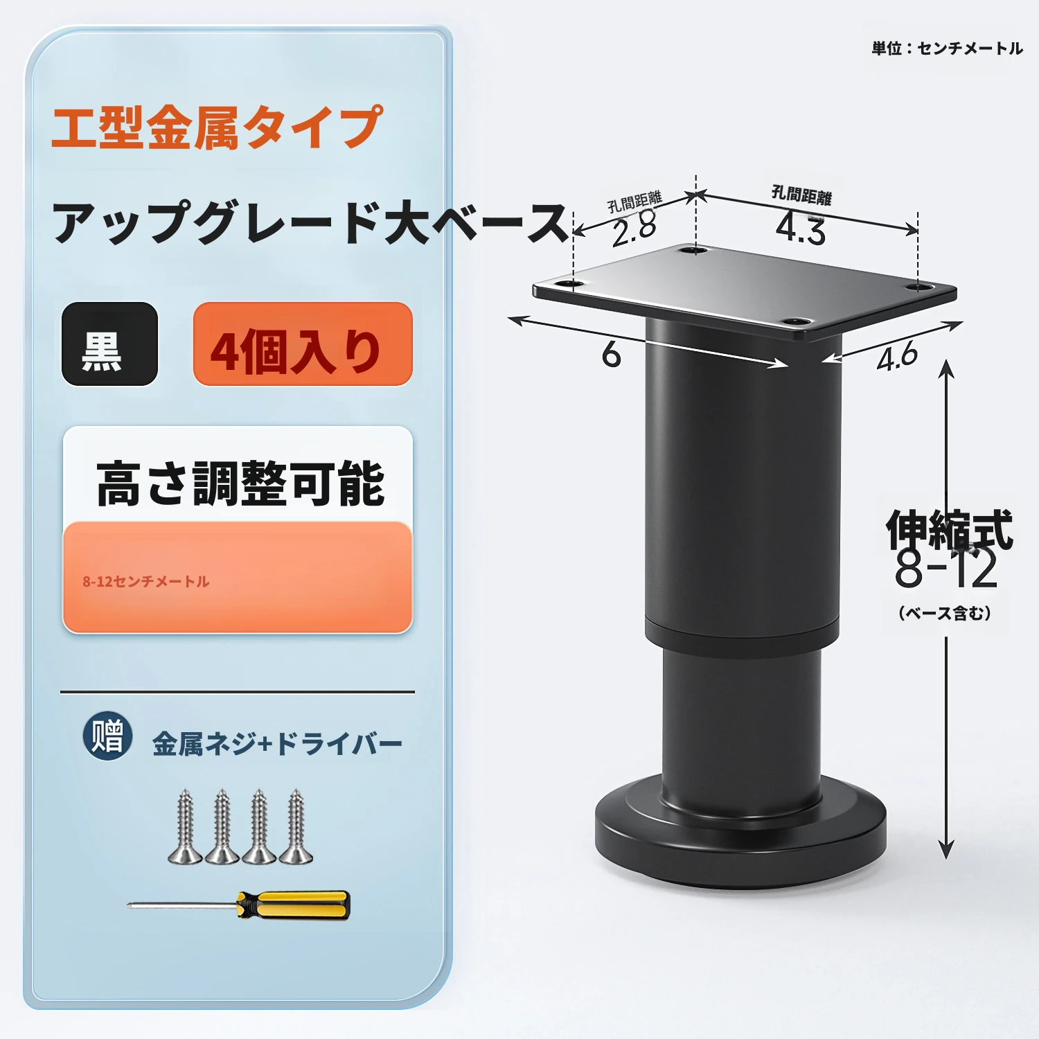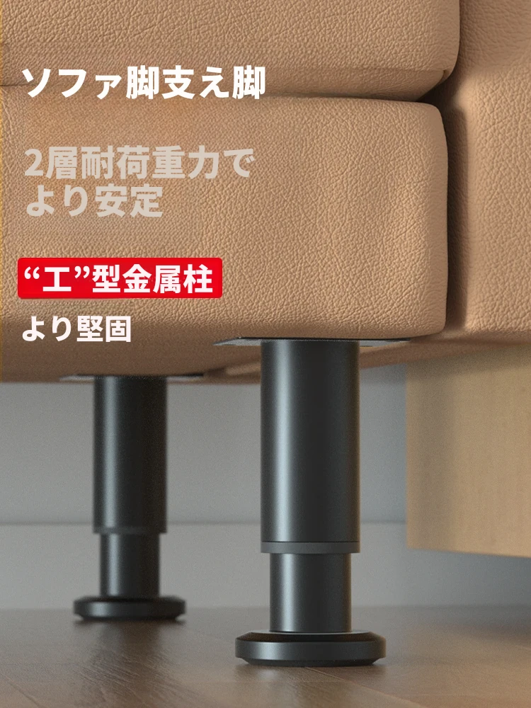 ベッドルーム用ソファ用金属ベース脚支え - 調整可能な小型ソファレッグで、伸縮性と強化機能を兼ね備え、高さ調整も簡単に!快適さと安定性を両立する、あなたのリビングにぴったりのアイテムです!